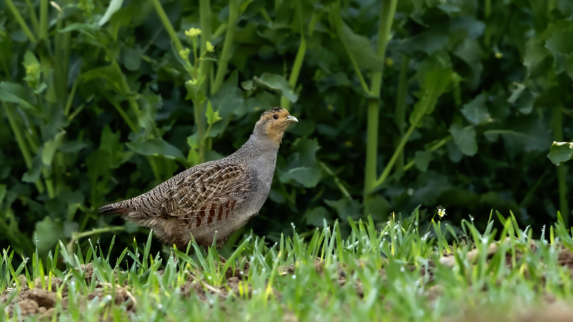 Tak jak niedawno pisałem w informacjach o siniaku - wróciłem na miejsce w którym liczyłem na wykonanie lepszych zdjęć tych gołębi o wschodzie słońca. Oczywiście nie obyło się bez ziarnowej zanęty, ale szczęście tym razem nie dopisało. No, może nie do końca, bo ostatecznie udało się wykonać pierwsze zdjęcia kuropatw. Jest to o tyle dla mnie ważne, że jest to w mojej kolekcji nowy gatunek. Kuropatwy pojawiły się po lewej stronie, niestety w znacznej odległości. 600-tka z konwerterem 1.4X i tak była niewystarczająca dla zrobienia dobrych zdjęć. Ale jak to bywa w moich galeriach, od czegoś trzeba zacząć, a bywało znacznie gorzej z niektórymi gatunkami. Rybołów czy cierniówka czekały na zmiany jakościowe kilka lat. Dwa wcześniejsze, przypadkowe spotkania z kuropatwami nie zakończyły się nawet jednym dokumentacyjnym zdjęciem. Na szczęście, około pół godziny po zniknięciu kuropatw w rzepaku, wyszły z niego prawie na wprost mnie. Powstaje kilka znacznie lepszych zdjęć. Od dłuższego czasu szukałem informacji, podpowiedzi, gdzie można zrobić zdjęcia tych przepięknych przedstawicieli grzebiących w naszym kraju. „Nie jest to łatwe i najlepiej próbować zimą na polach” - słyszałem. A tu, proszę, taka niespodzianka. Mimo że jest jeszcze wiele do zrobienia w kwestii jakości zdjęć kuropatwy, to galeria kuropatwy trafia do nowości.