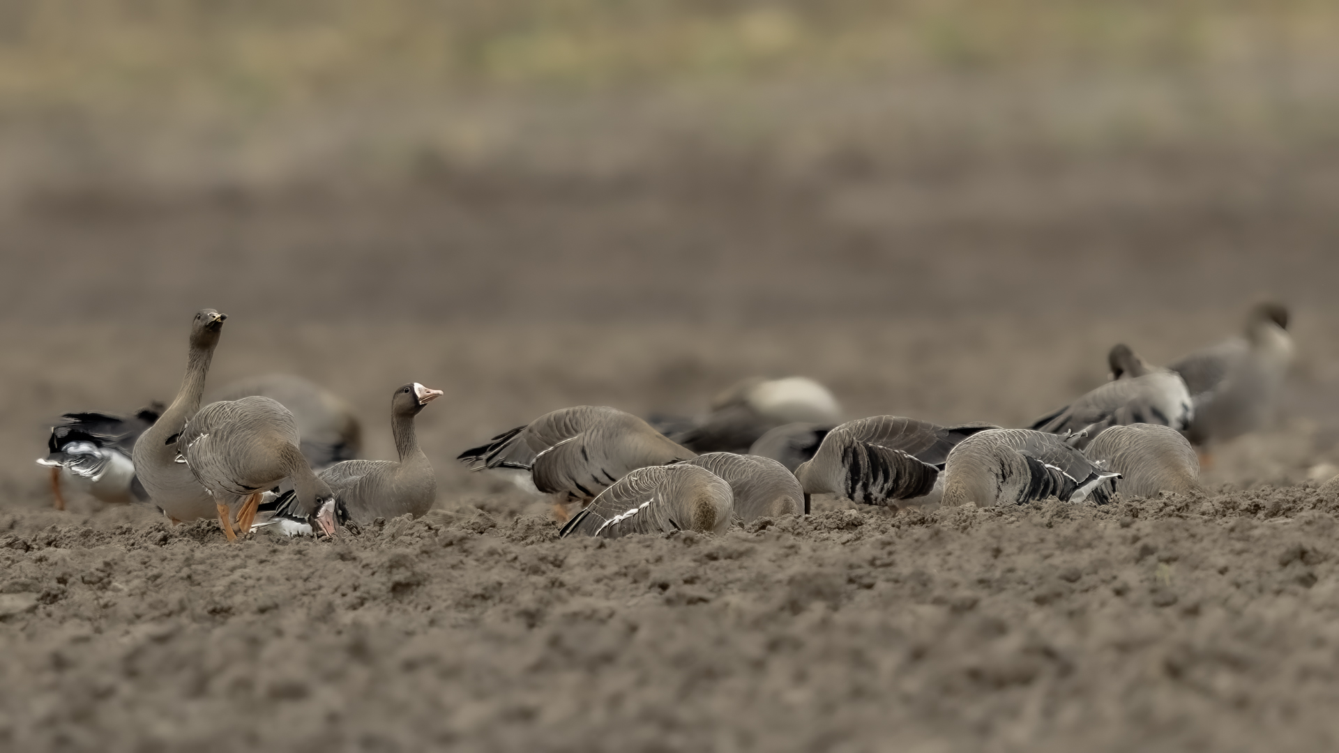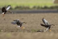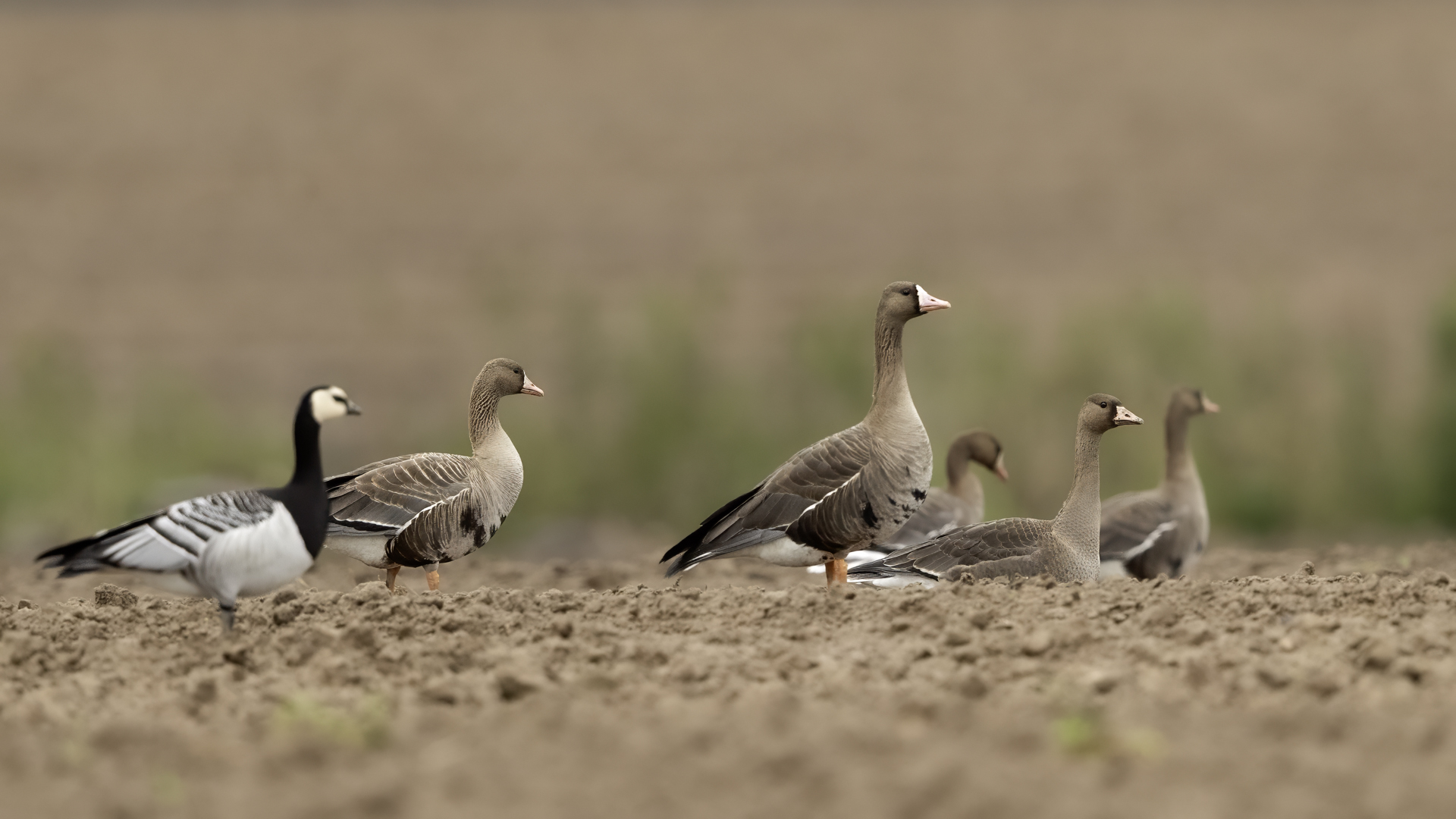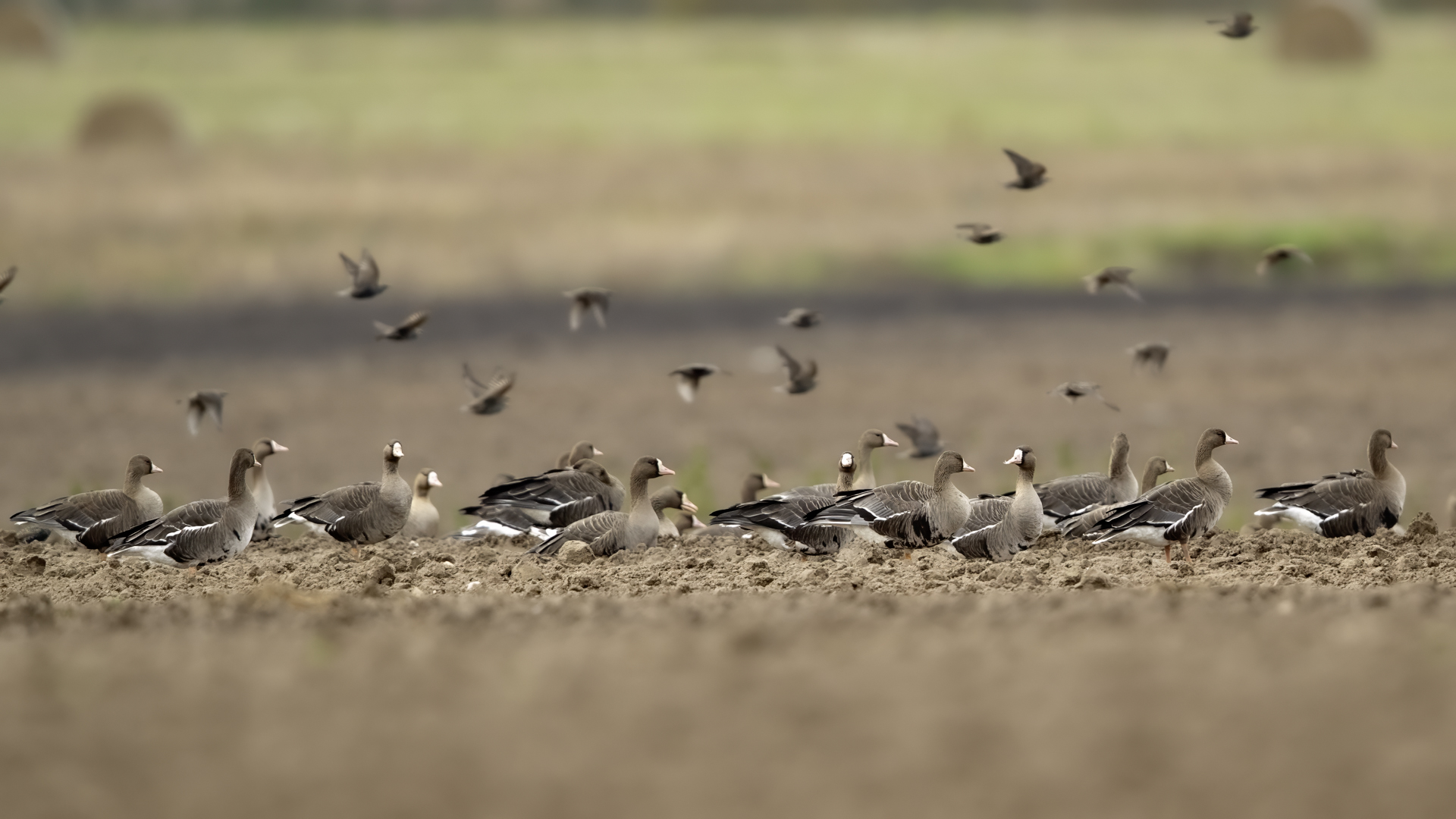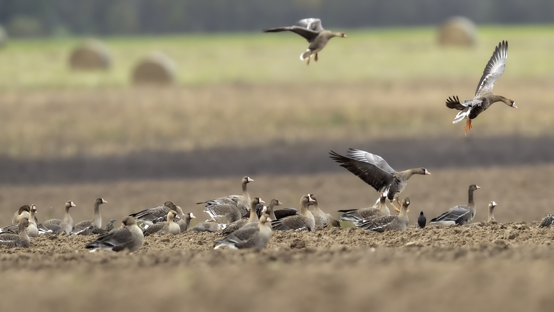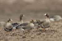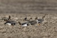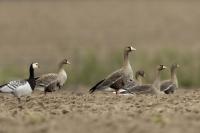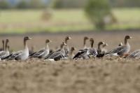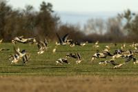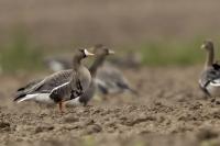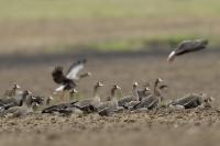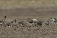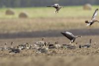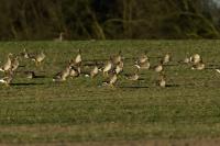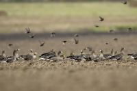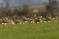 They are not yet very good quality pictures, but they bring a lot of variation in the current modest gallery. And again this was the case. I was seeing a big herd of geese at the road. I stopped the car and slowly began to taking photo. Among the preing birds were : barnacle Goose, bean Goose, greater White-fronted Goose, greylag Goose and common Starling. The distance was a bit too big, but they are the most interesting my pictures of greater White-fronted Goose, I made so far.
