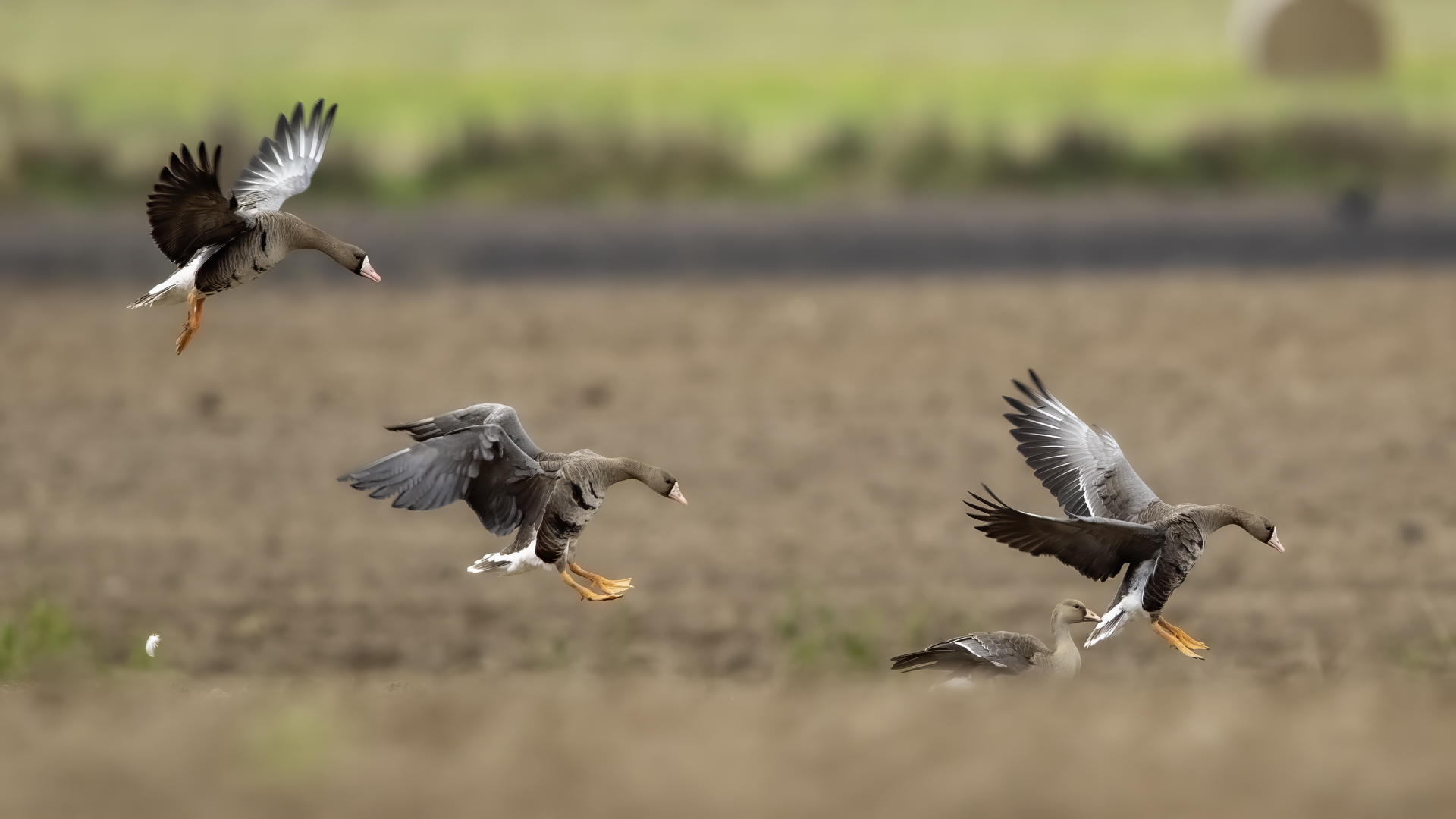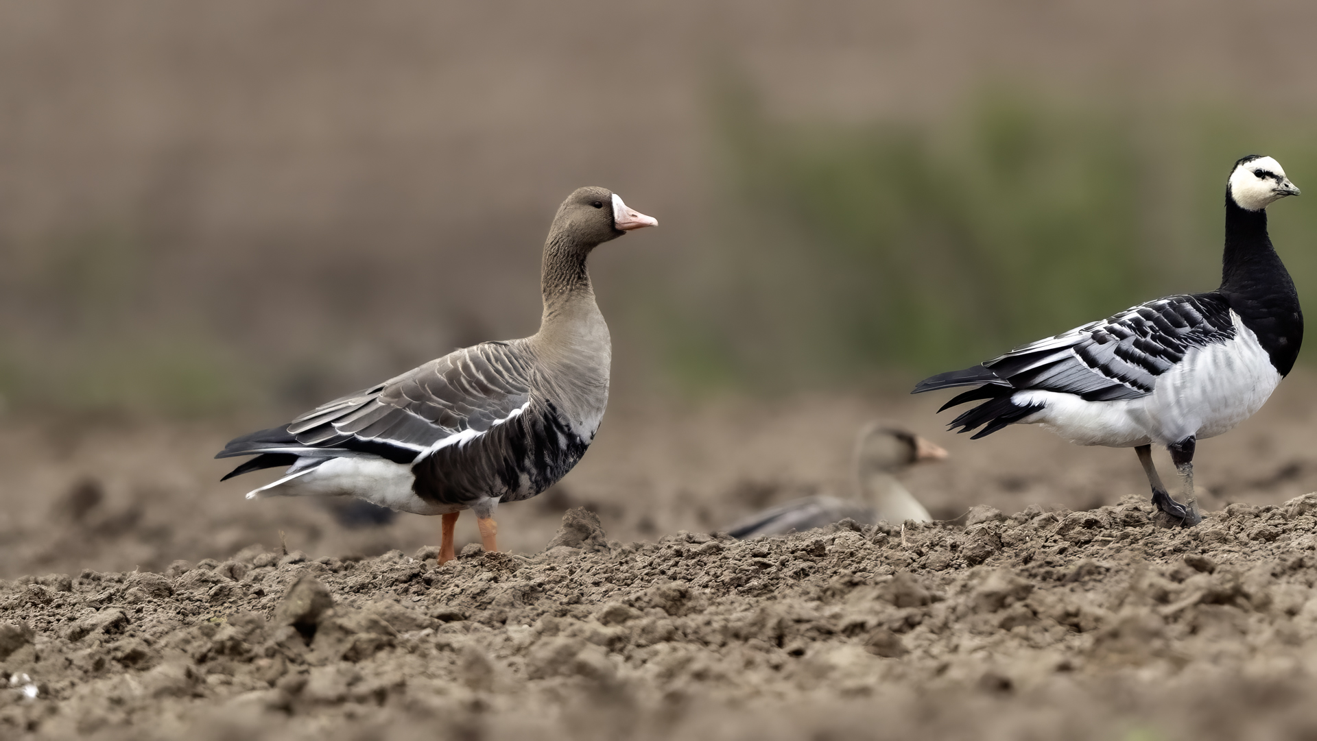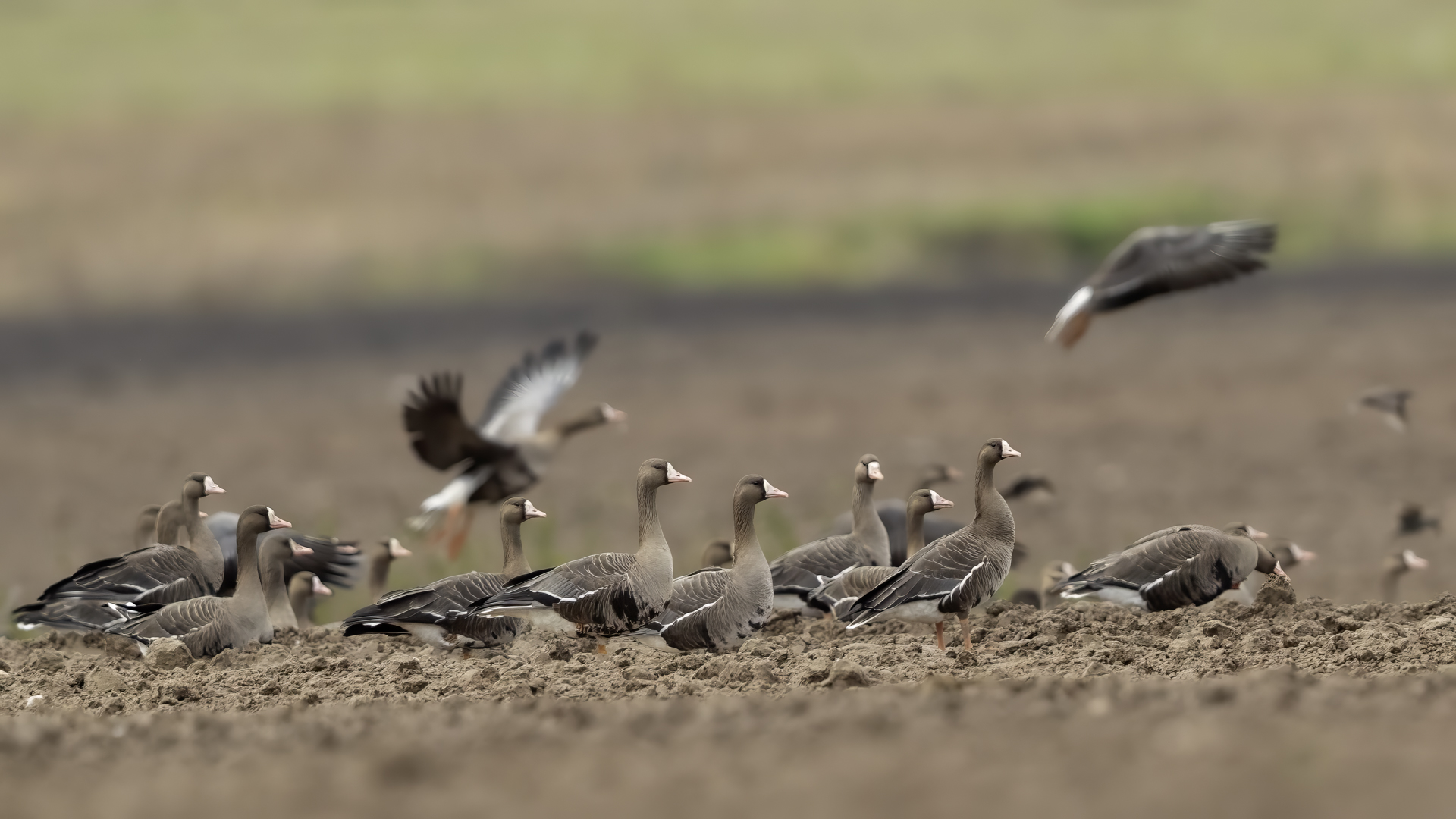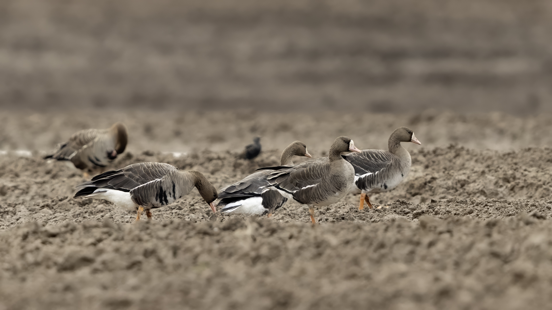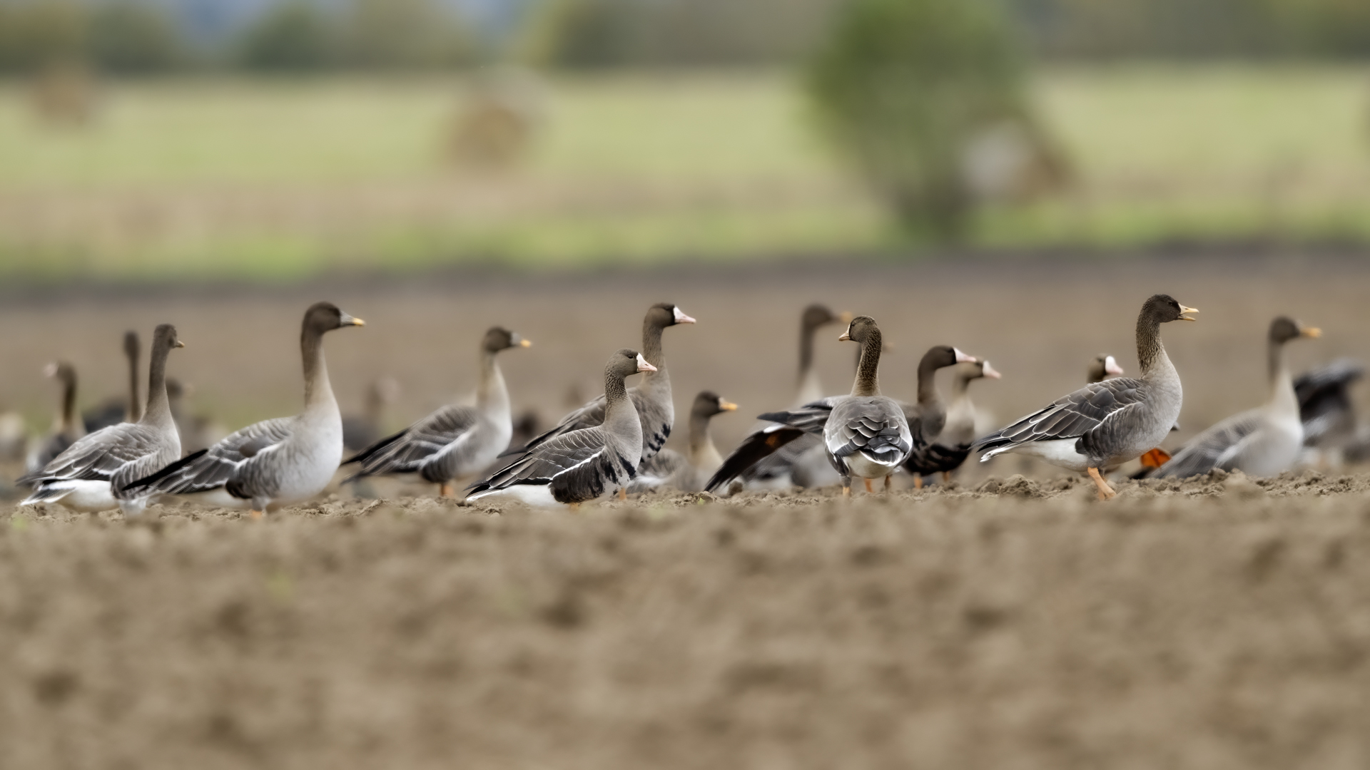 They are not yet very good quality pictures, but they bring a lot of variation in the current modest gallery. And again this was the case. I was seeing a big herd of geese at the road. I stopped the car and slowly began to taking photo. Among the preing birds were : barnacle Goose, bean Goose, greater White-fronted Goose, greylag Goose and common Starling. The distance was a bit too big, but they are the most interesting my pictures of greater White-fronted Goose, I made so far.