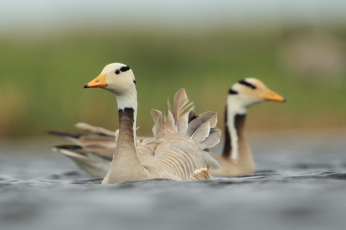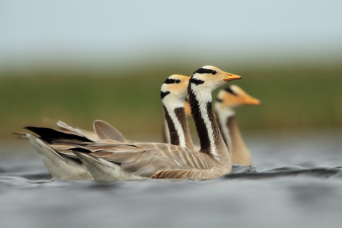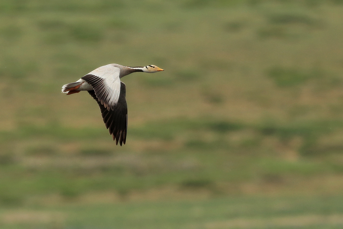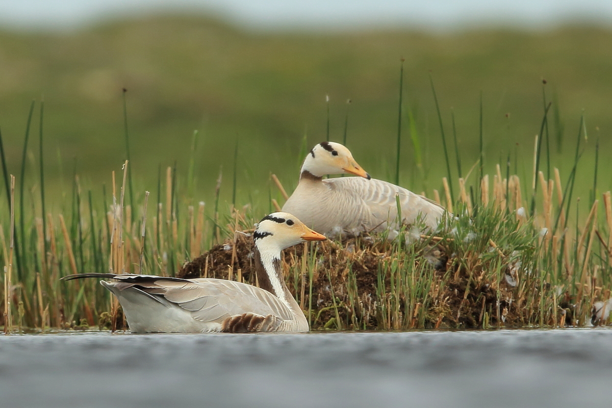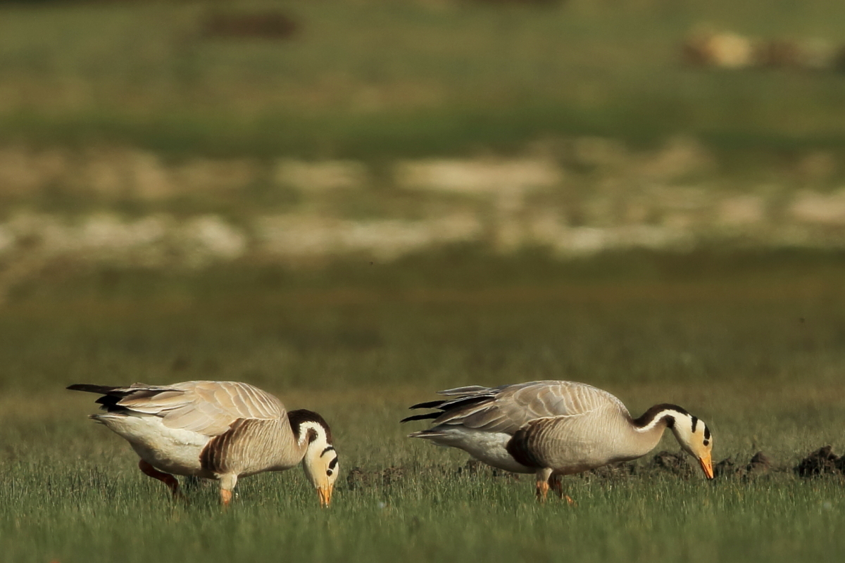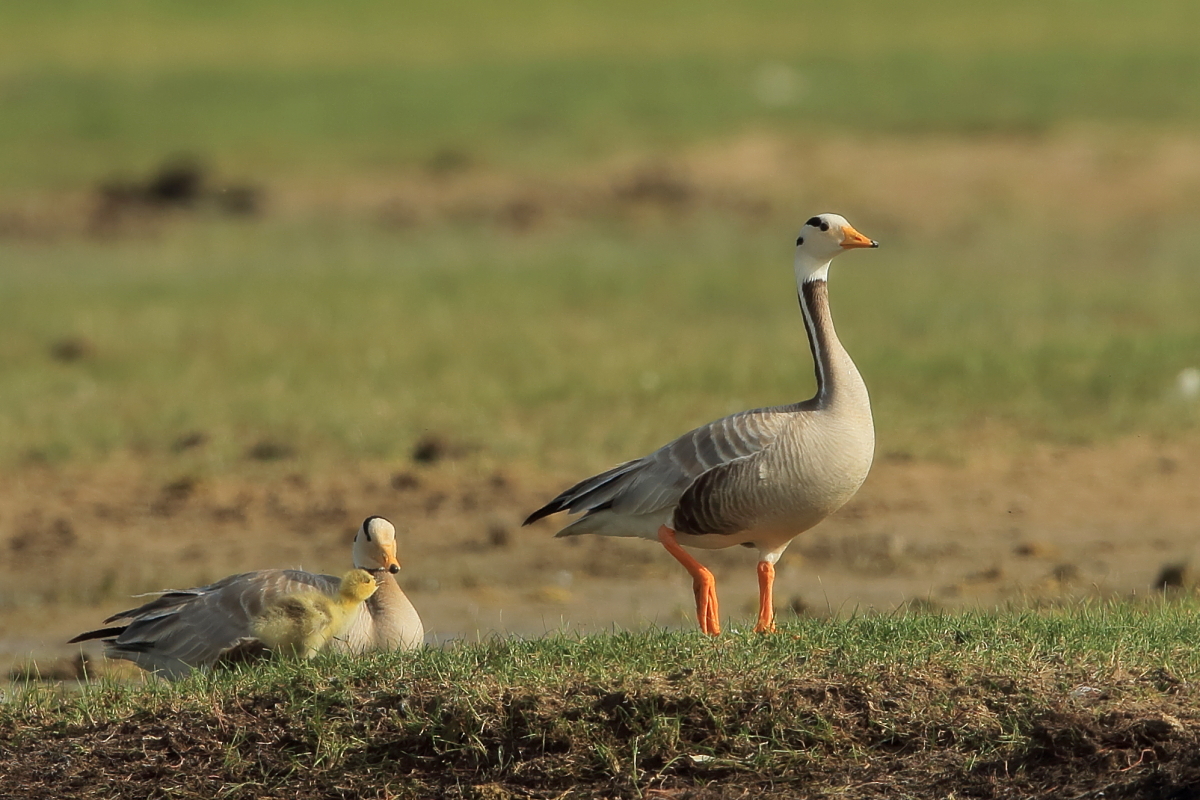 We saw bar-headed geese on several occasions during our trip. We could observe them near water, often in the company of ruddy shelducks and Mongolian herring gulls. We never saw single specimens, but always small flocks numbering several or a dozen or so specimens. The best pictures were taken on a little pond, with camouflage, although I just wanted to photograph red-crested pochards. I did not succeed with red-crested pochards, but pictures of bar-headed geese and Mongolian herring gulls were taken. On the right side, for a moment, horned grebes appeared, but they were at a significant distance. In the middle of the pond there was a small islet, where all the above mentioned species and the grey heron had their nests. Unfortunately I neglected the recording of the geese’s sound and it is of poor quality. The soundtrack has been cleaned from the voices of white-winged terns, which were much closer than the geese and produced sounds much more often.