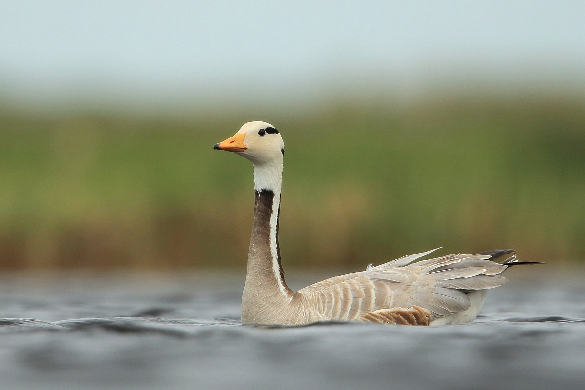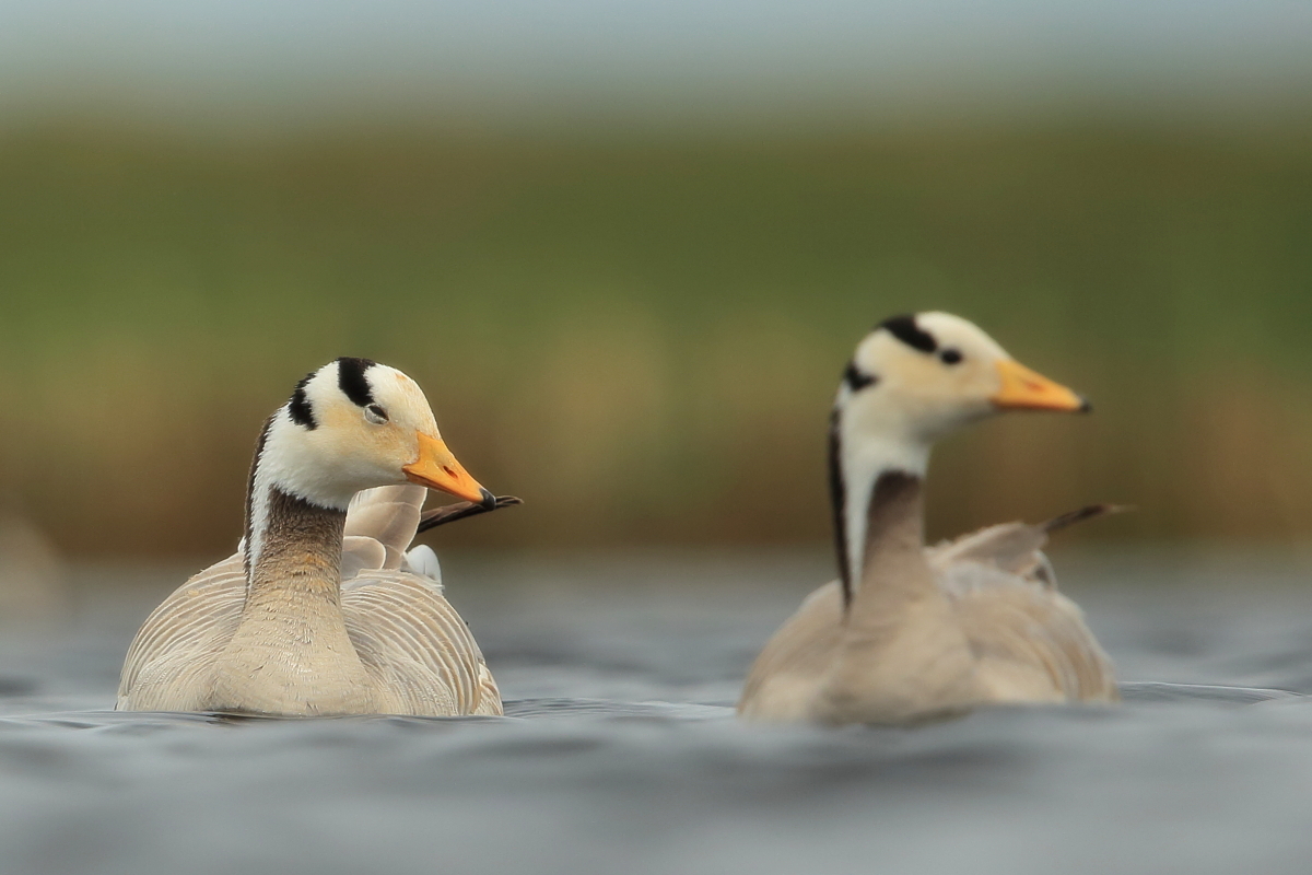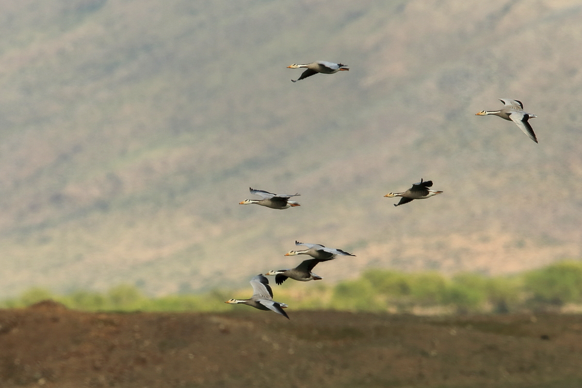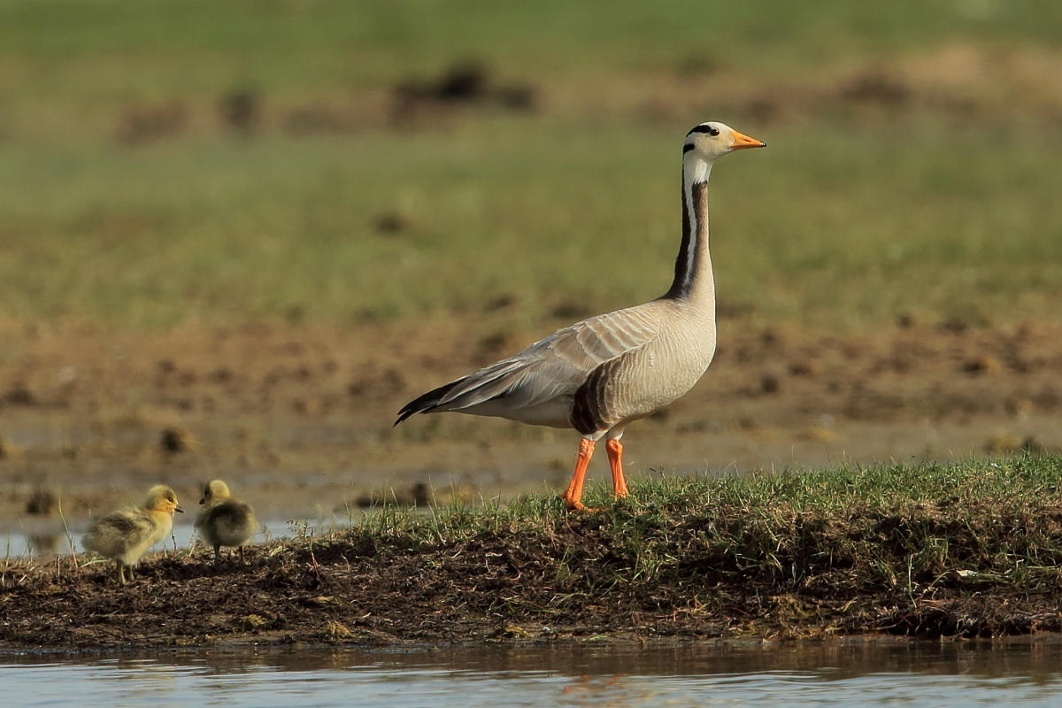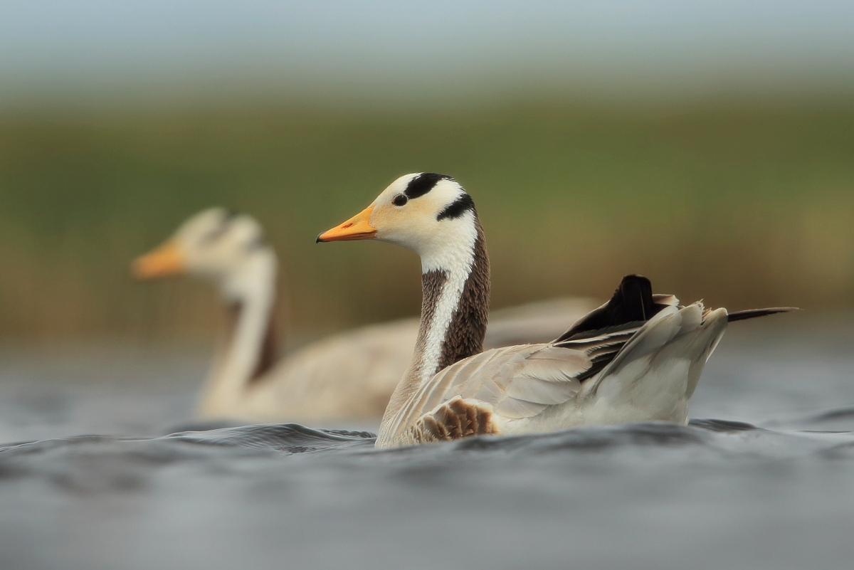 We saw bar-headed geese on several occasions during our trip. We could observe them near water, often in the company of ruddy shelducks and Mongolian herring gulls. We never saw single specimens, but always small flocks numbering several or a dozen or so specimens. The best pictures were taken on a little pond, with camouflage, although I just wanted to photograph red-crested pochards. I did not succeed with red-crested pochards, but pictures of bar-headed geese and Mongolian herring gulls were taken. On the right side, for a moment, horned grebes appeared, but they were at a significant distance. In the middle of the pond there was a small islet, where all the above mentioned species and the grey heron had their nests. Unfortunately I neglected the recording of the geese’s sound and it is of poor quality. The soundtrack has been cleaned from the voices of white-winged terns, which were much closer than the geese and produced sounds much more often.