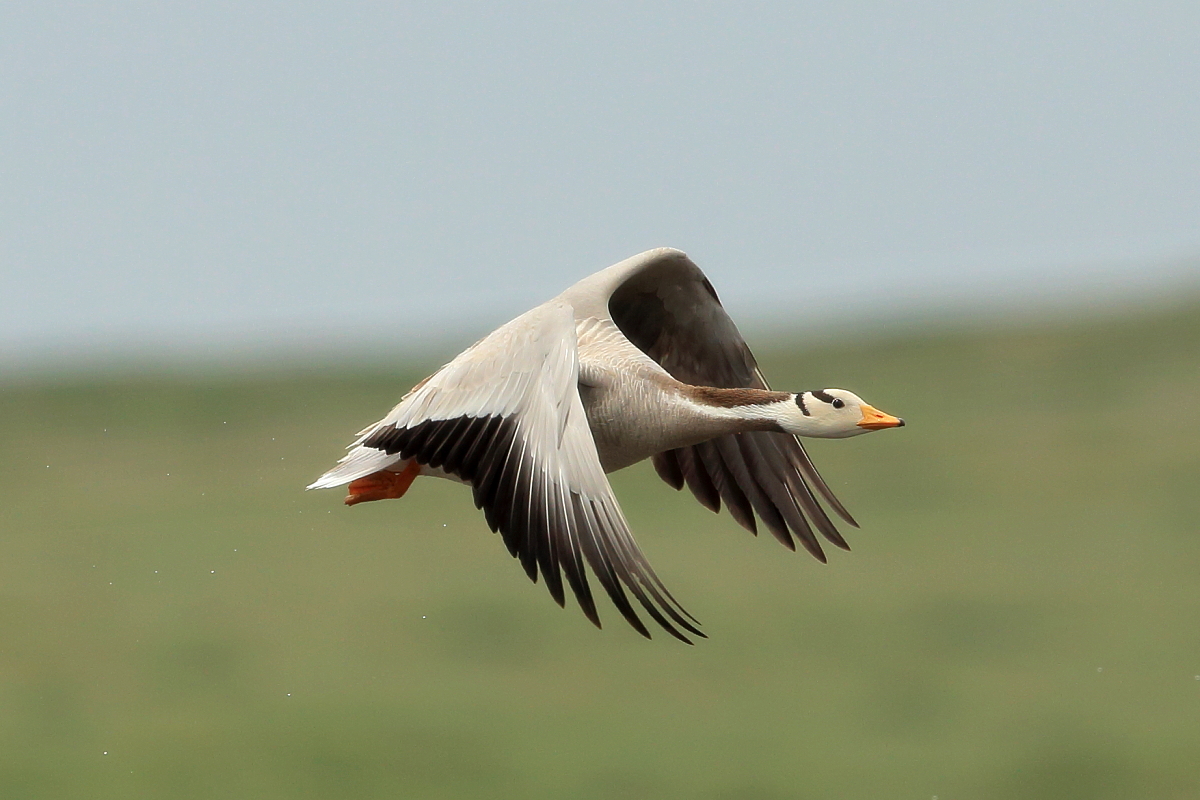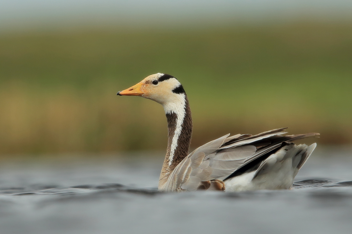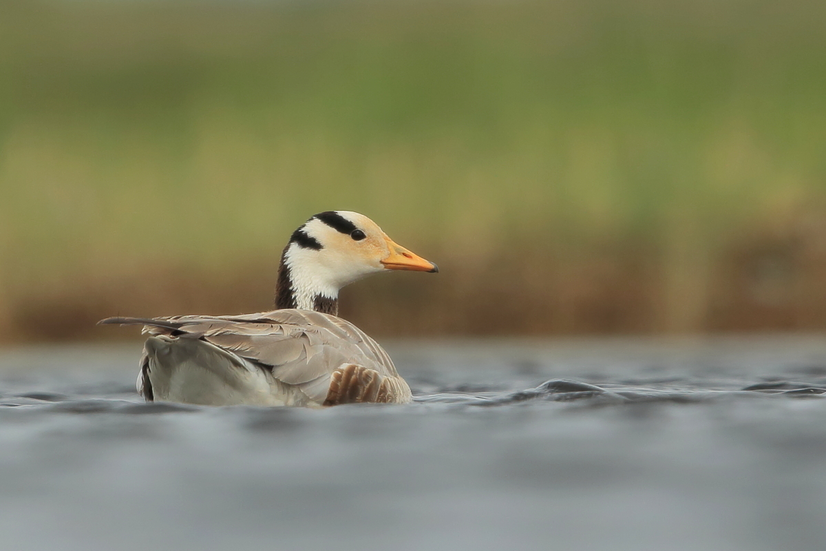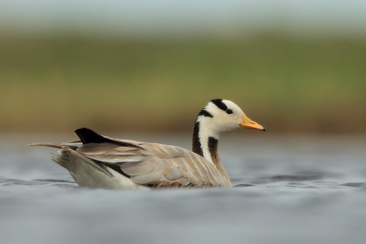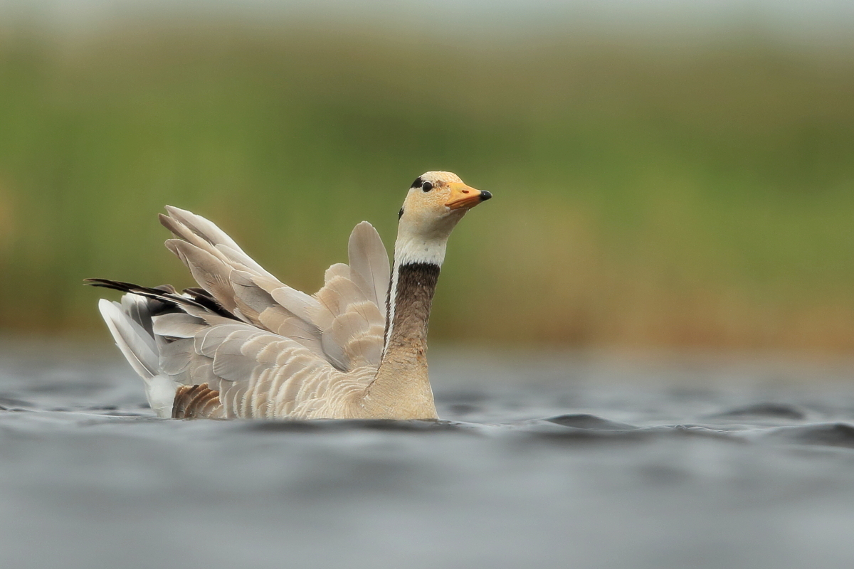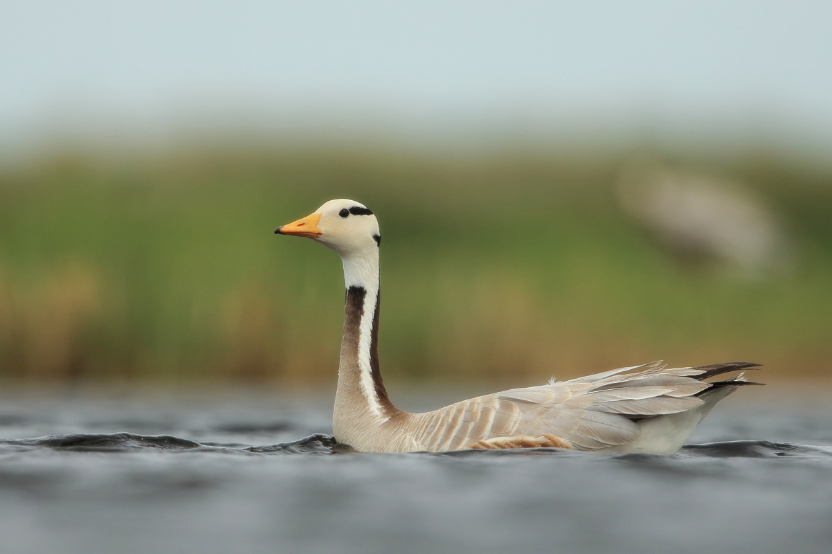 We saw bar-headed geese on several occasions during our trip. We could observe them near water, often in the company of ruddy shelducks and Mongolian herring gulls. We never saw single specimens, but always small flocks numbering several or a dozen or so specimens. The best pictures were taken on a little pond, with camouflage, although I just wanted to photograph red-crested pochards. I did not succeed with red-crested pochards, but pictures of bar-headed geese and Mongolian herring gulls were taken. On the right side, for a moment, horned grebes appeared, but they were at a significant distance. In the middle of the pond there was a small islet, where all the above mentioned species and the grey heron had their nests. Unfortunately I neglected the recording of the geese’s sound and it is of poor quality. The soundtrack has been cleaned from the voices of white-winged terns, which were much closer than the geese and produced sounds much more often.