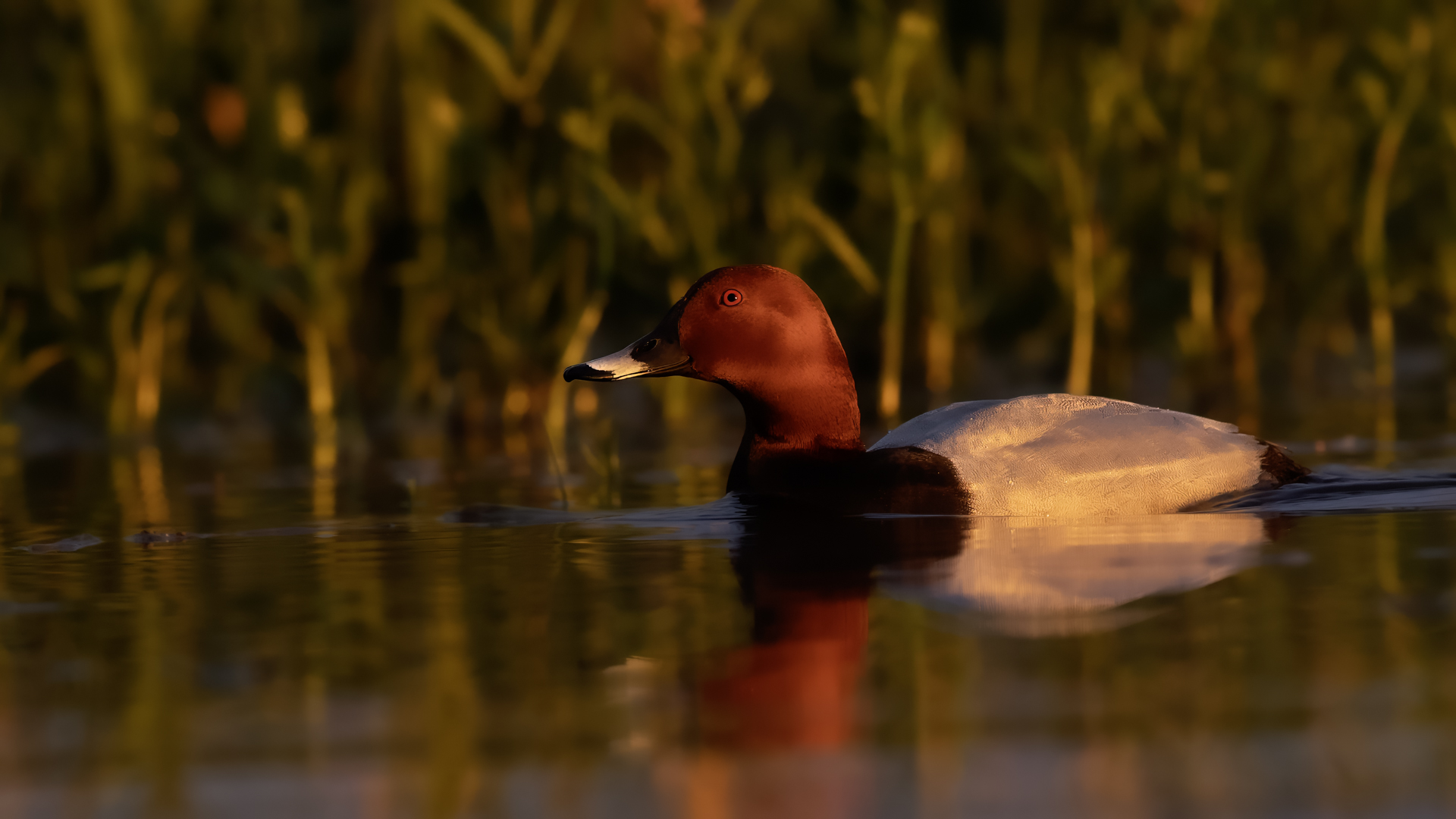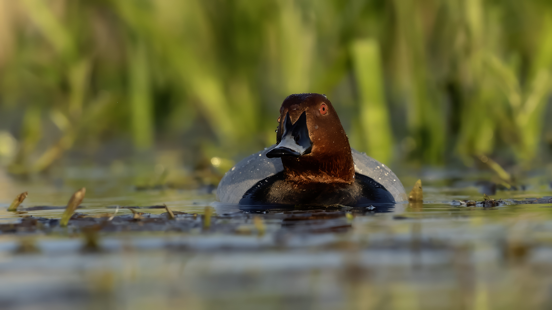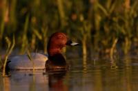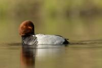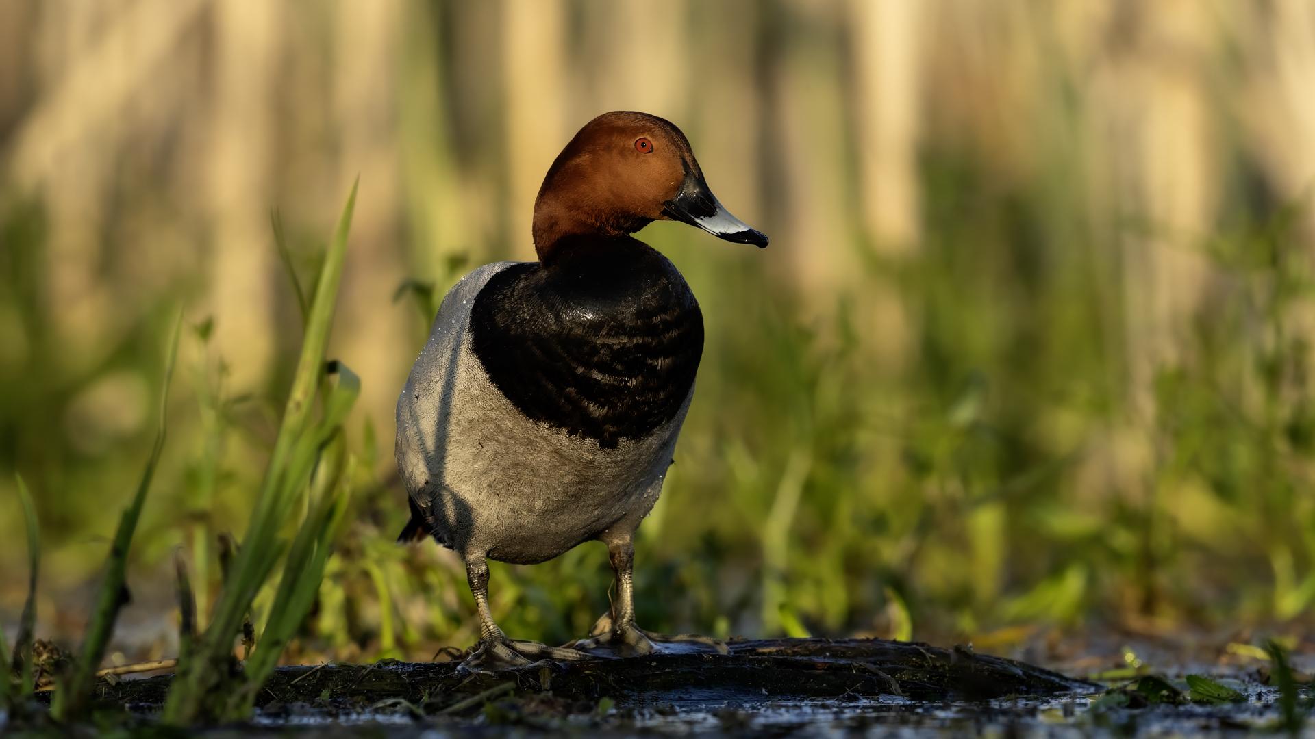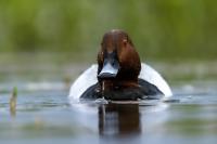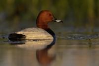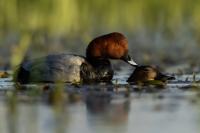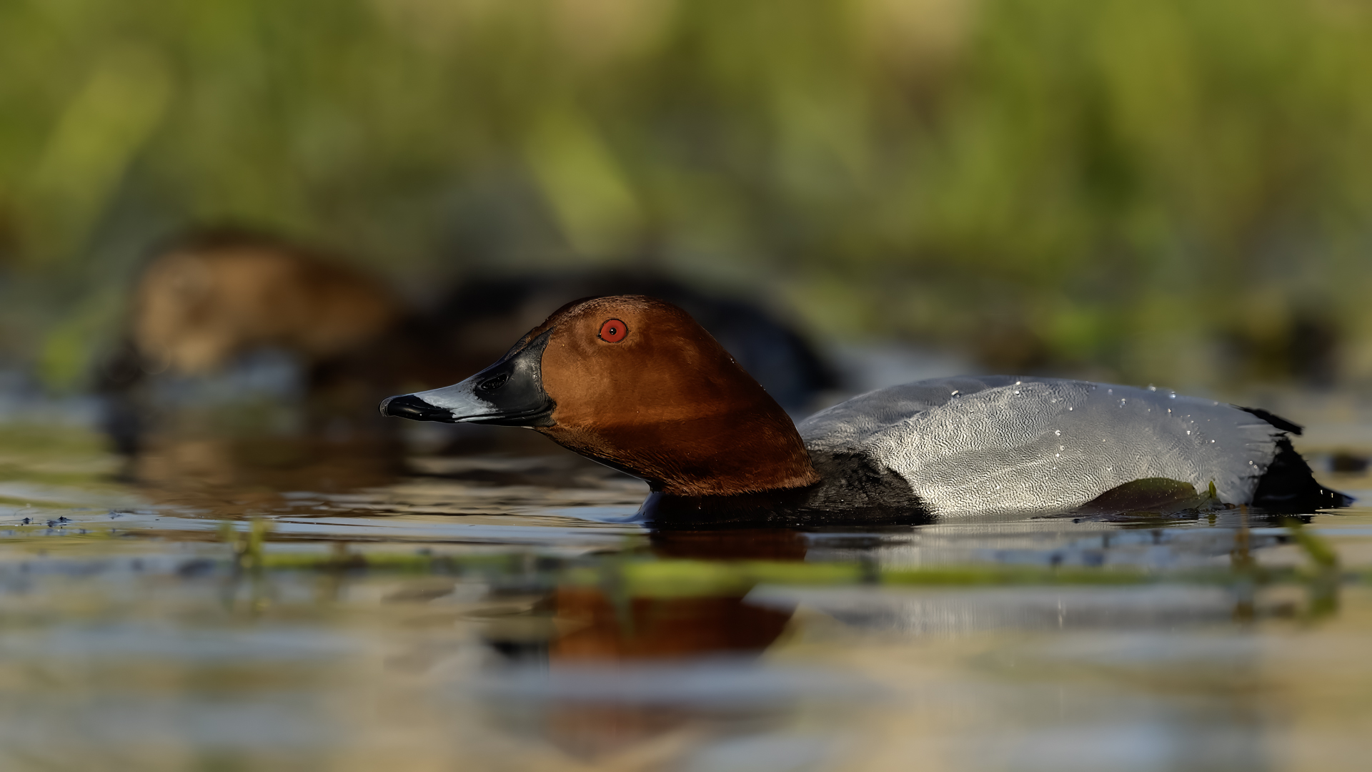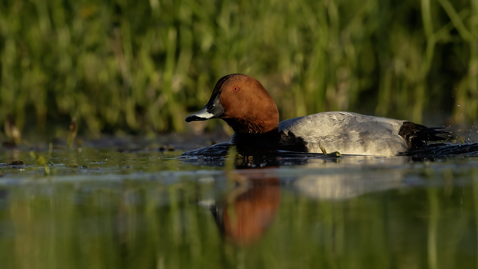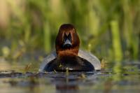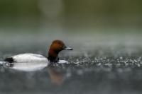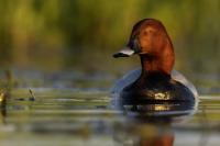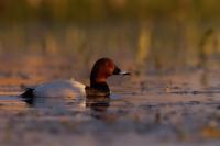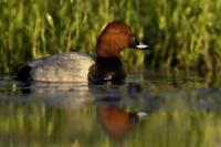 A medium-sized duck, with a weight of about one kilogram and a wingspan of approximately 70 cm. I had the pleasure to photograph common pochards while taking pictures of tufted ducks, in breeding ponds. When you watch the common pochard an amazing view seems to be its blood-red eye against the brown neck. Pochards, though quite skittish, are much more commonly found than tufted ducks. There will probably be a lot of occasions to complete the gallery presented to you.