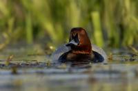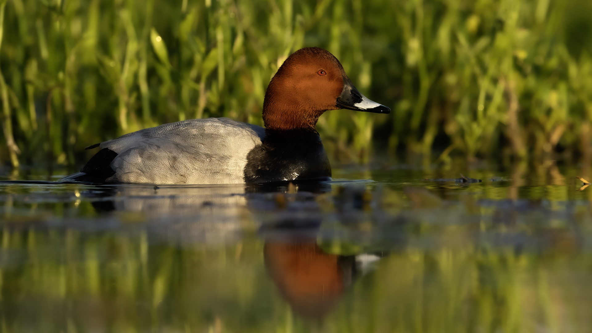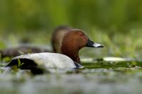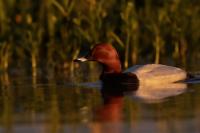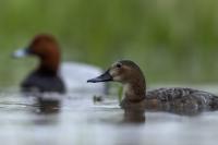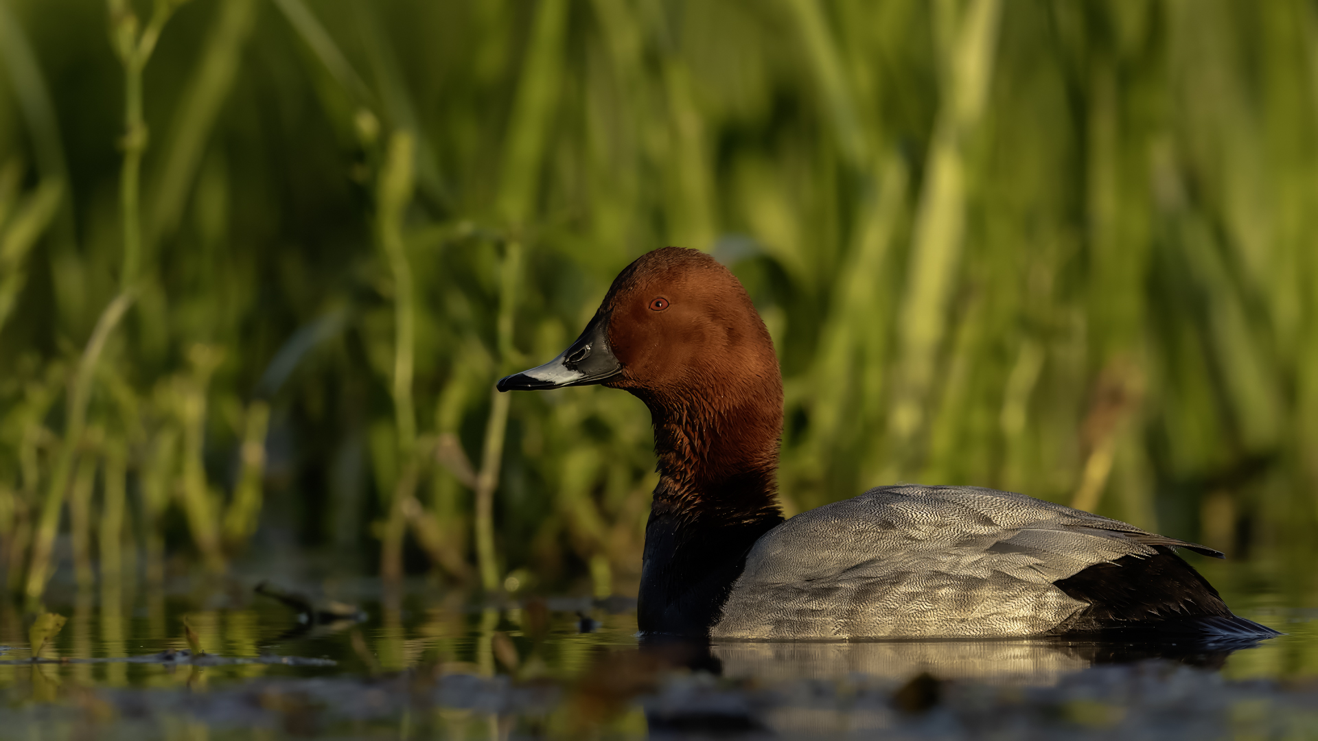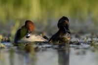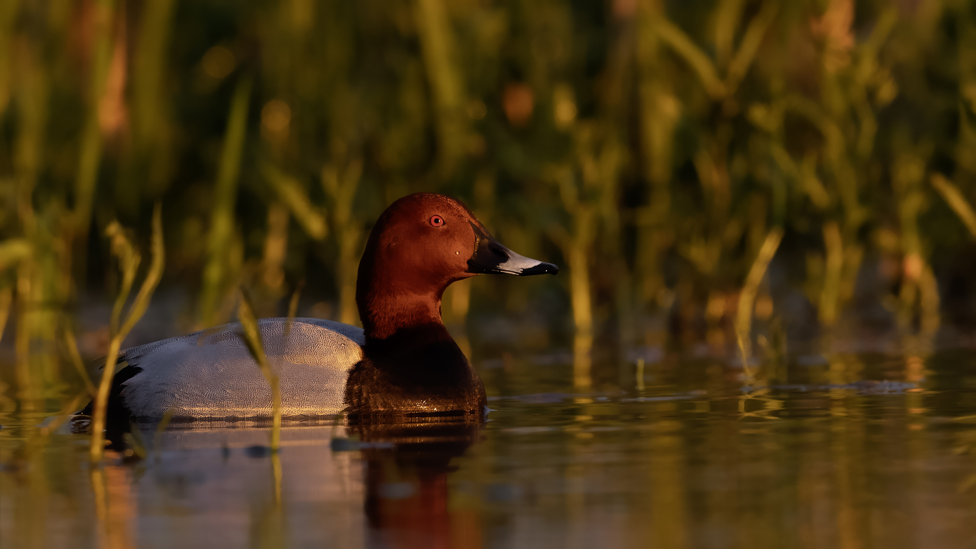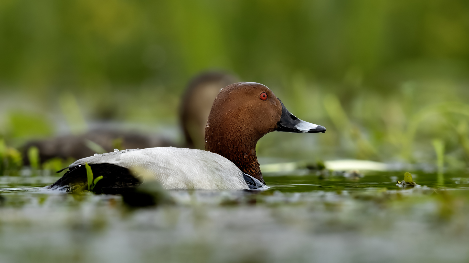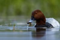 A medium-sized duck, with a weight of about one kilogram and a wingspan of approximately 70 cm. I had the pleasure to photograph common pochards while taking pictures of tufted ducks, in breeding ponds. When you watch the common pochard an amazing view seems to be its blood-red eye against the brown neck. Pochards, though quite skittish, are much more commonly found than tufted ducks. There will probably be a lot of occasions to complete the gallery presented to you.