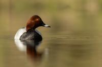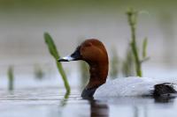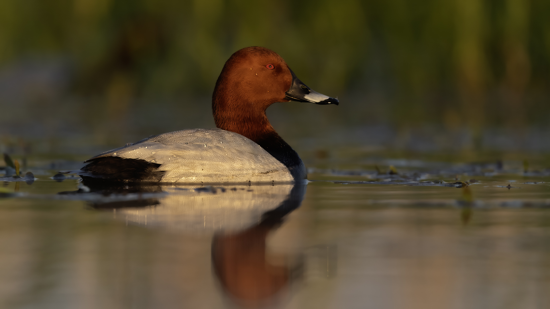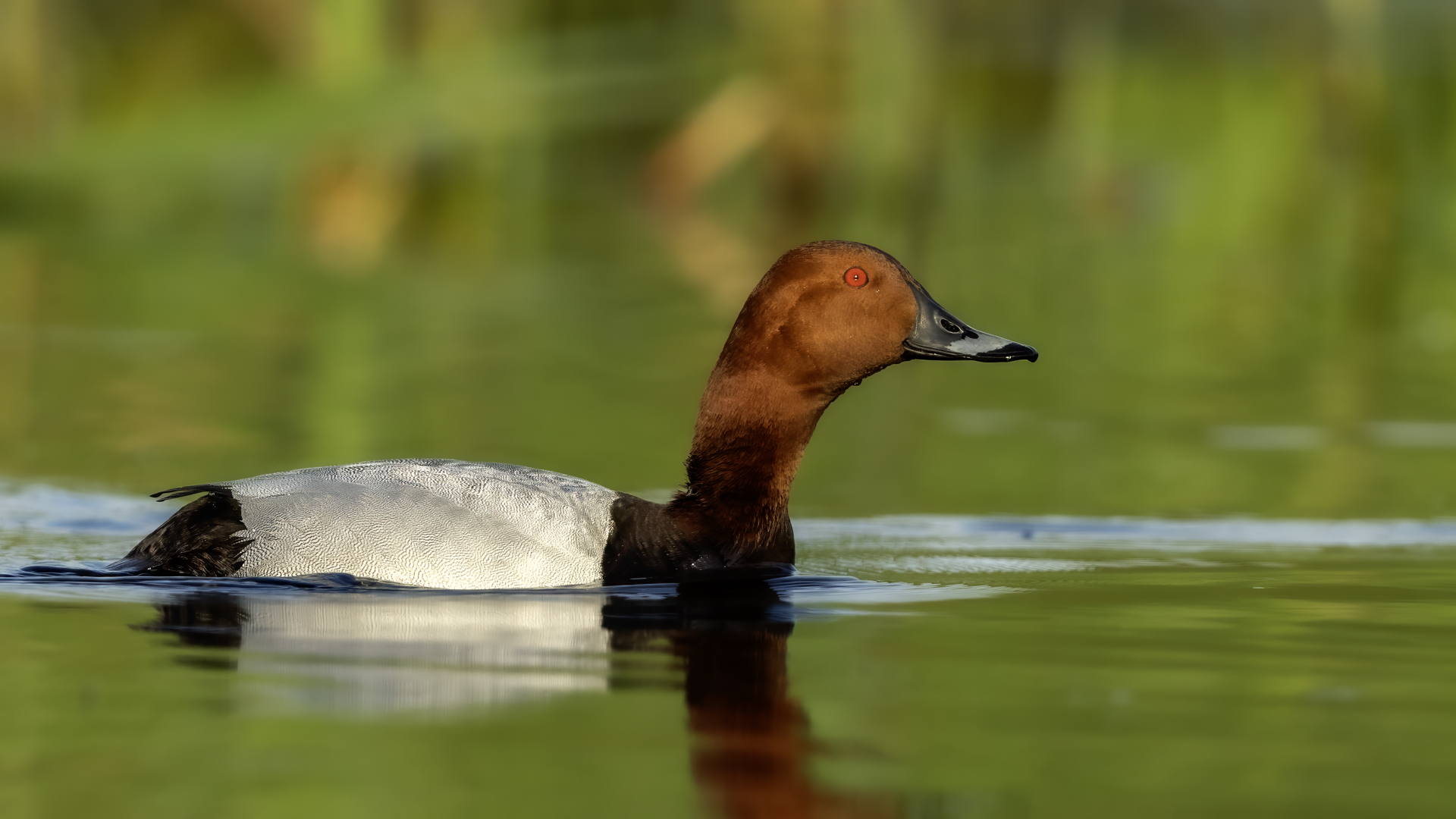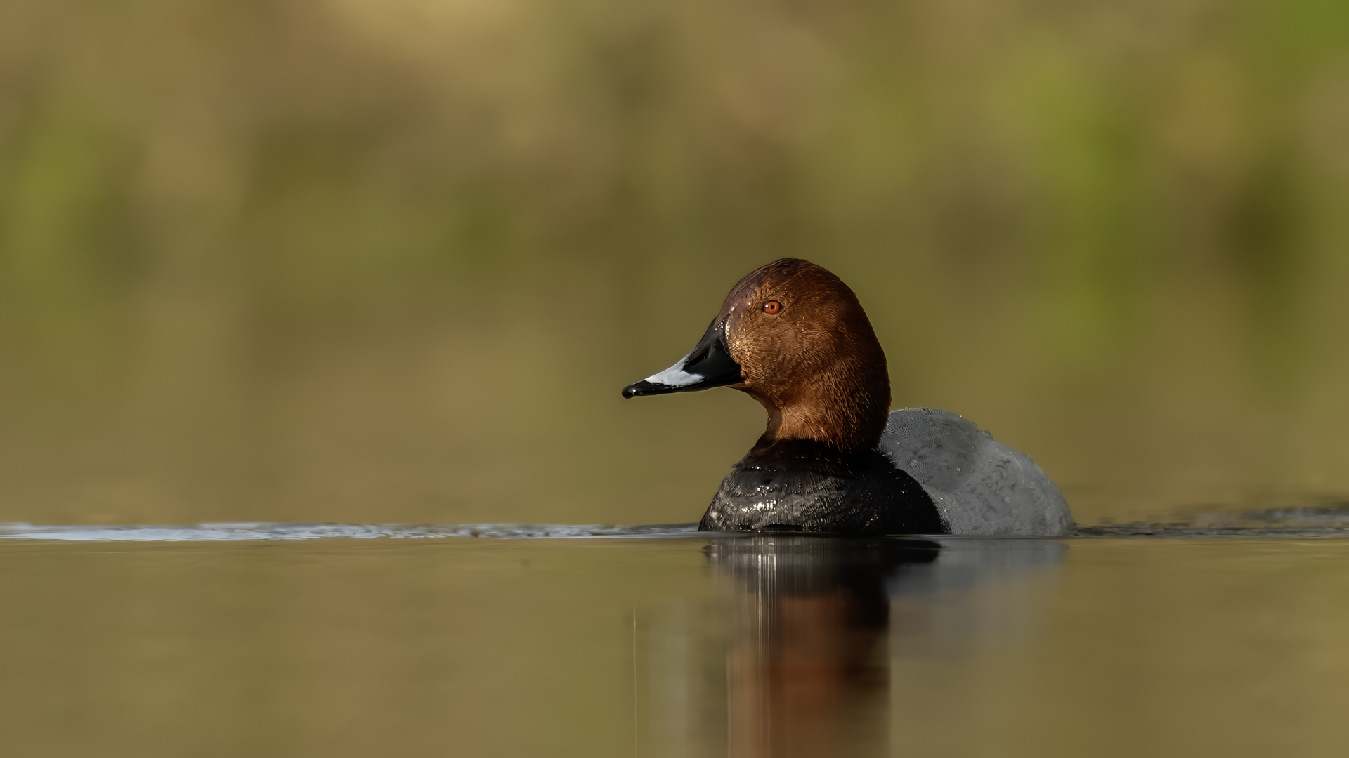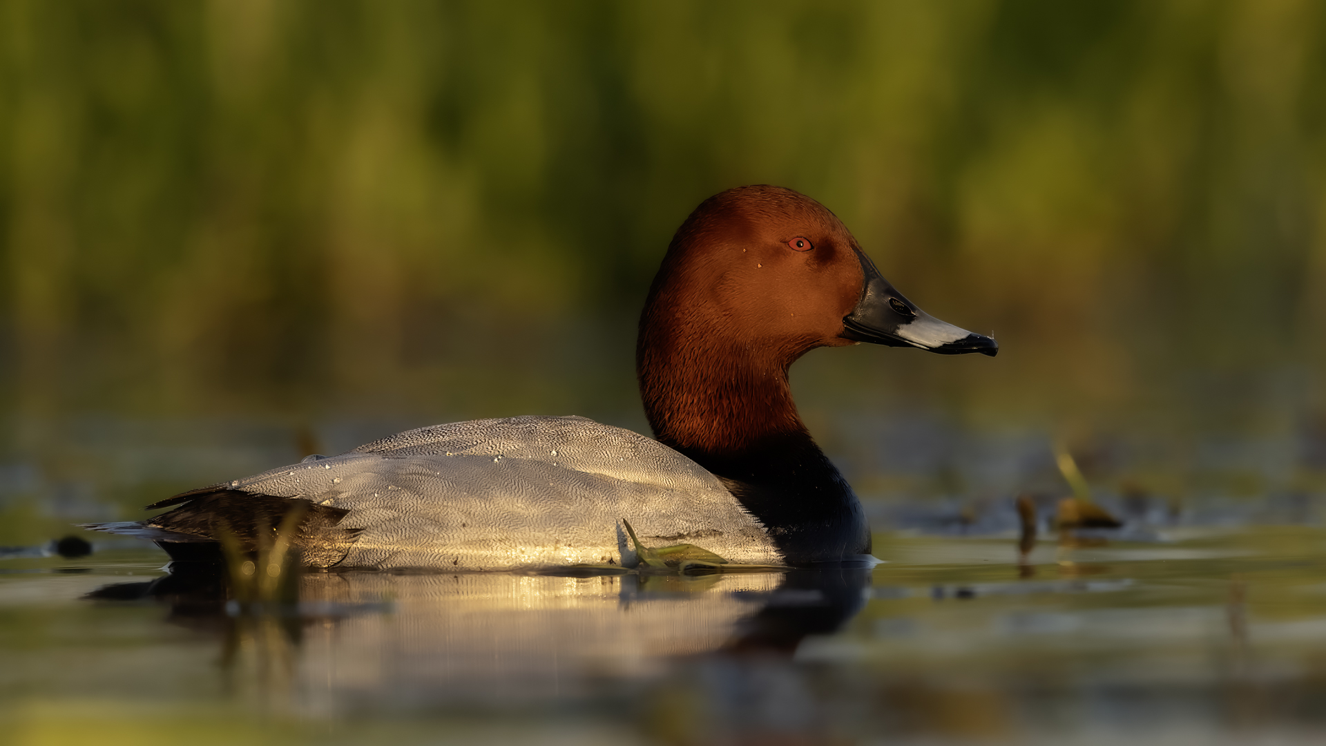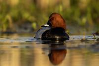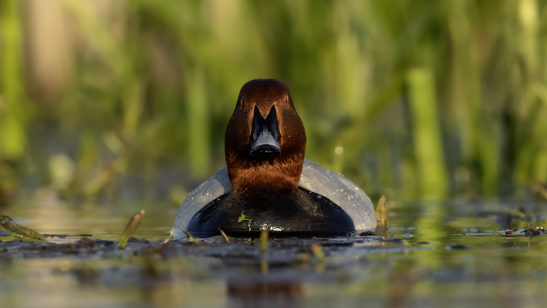 A medium-sized duck, with a weight of about one kilogram and a wingspan of approximately 70 cm. I had the pleasure to photograph common pochards while taking pictures of tufted ducks, in breeding ponds. When you watch the common pochard an amazing view seems to be its blood-red eye against the brown neck. Pochards, though quite skittish, are much more commonly found than tufted ducks. There will probably be a lot of occasions to complete the gallery presented to you.