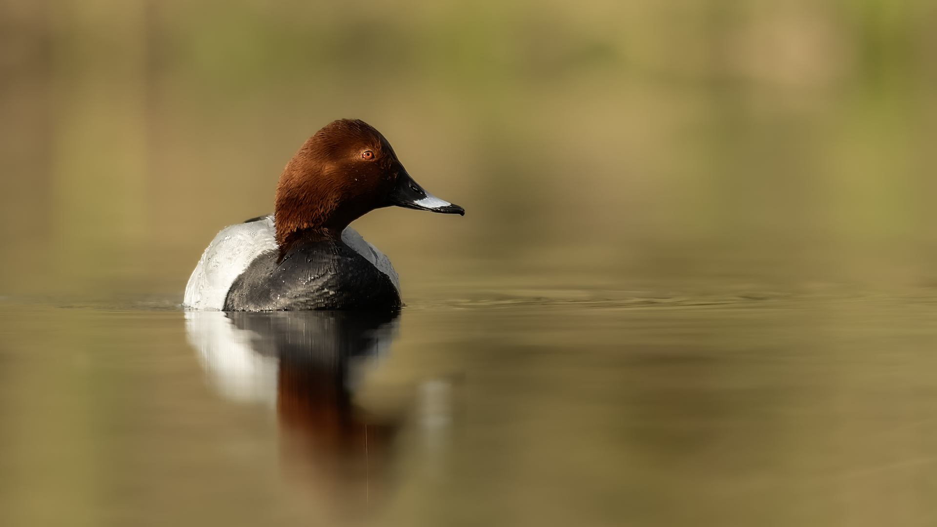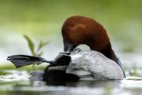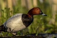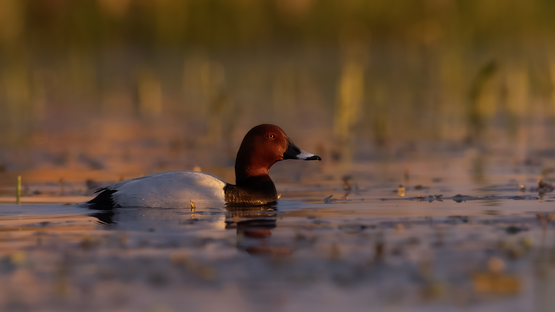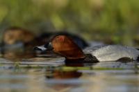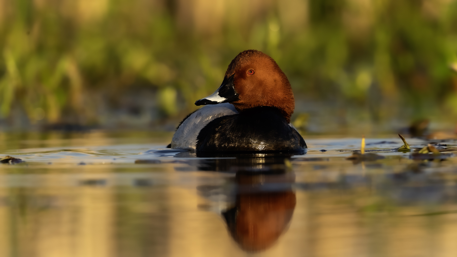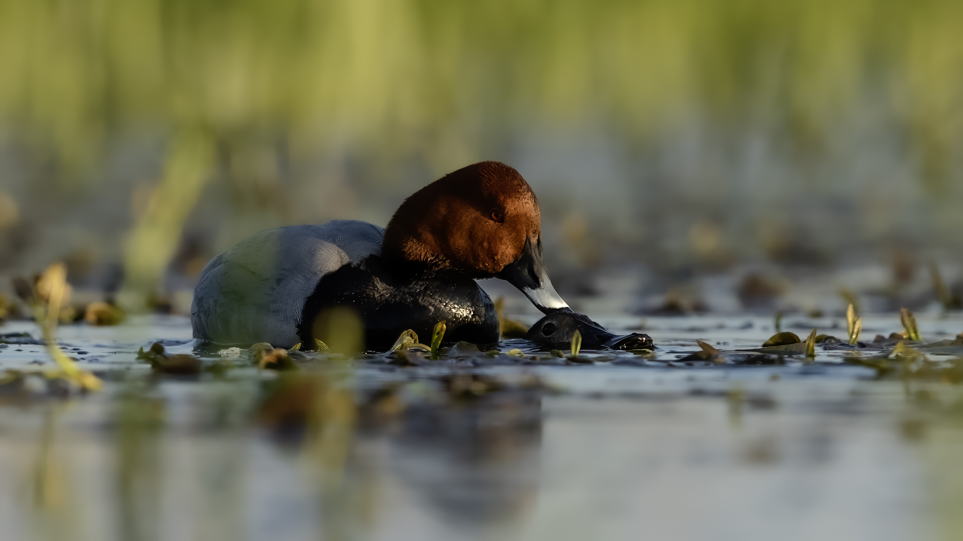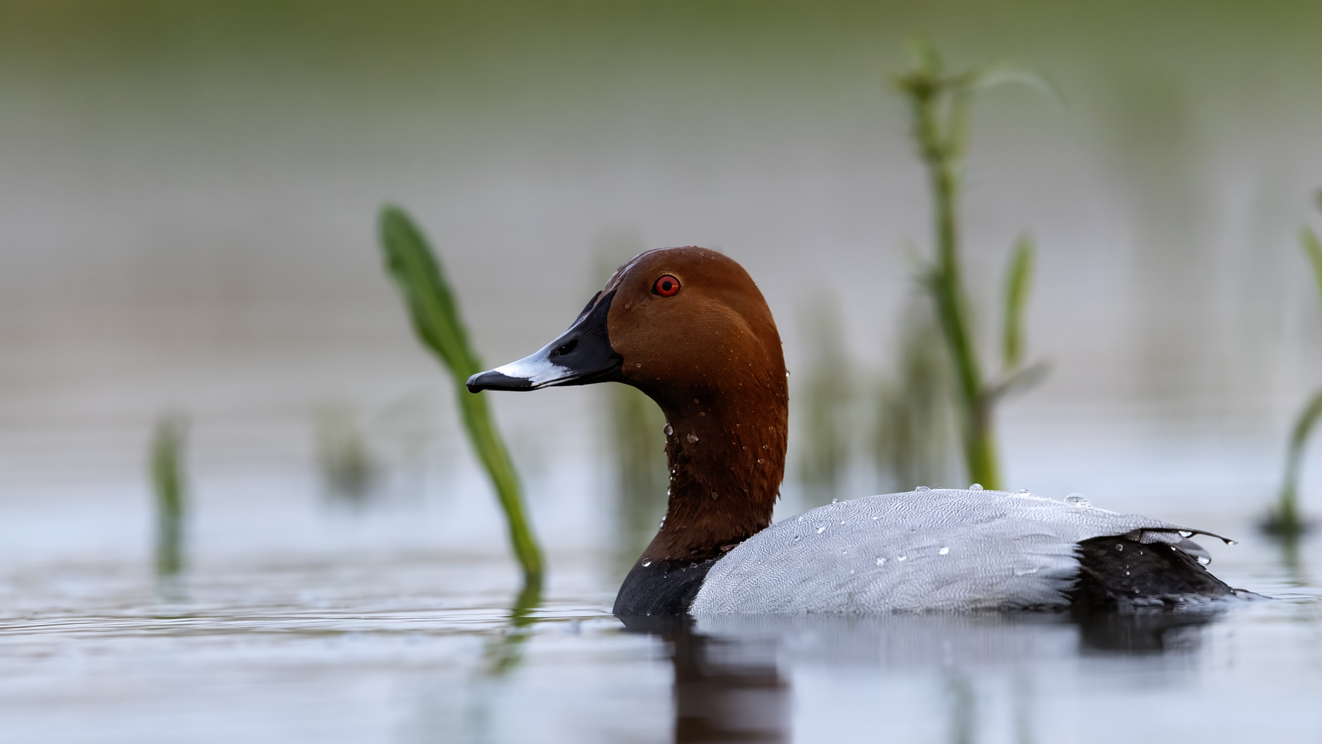 A medium-sized duck, with a weight of about one kilogram and a wingspan of approximately 70 cm. I had the pleasure to photograph common pochards while taking pictures of tufted ducks, in breeding ponds. When you watch the common pochard an amazing view seems to be its blood-red eye against the brown neck. Pochards, though quite skittish, are much more commonly found than tufted ducks. There will probably be a lot of occasions to complete the gallery presented to you.