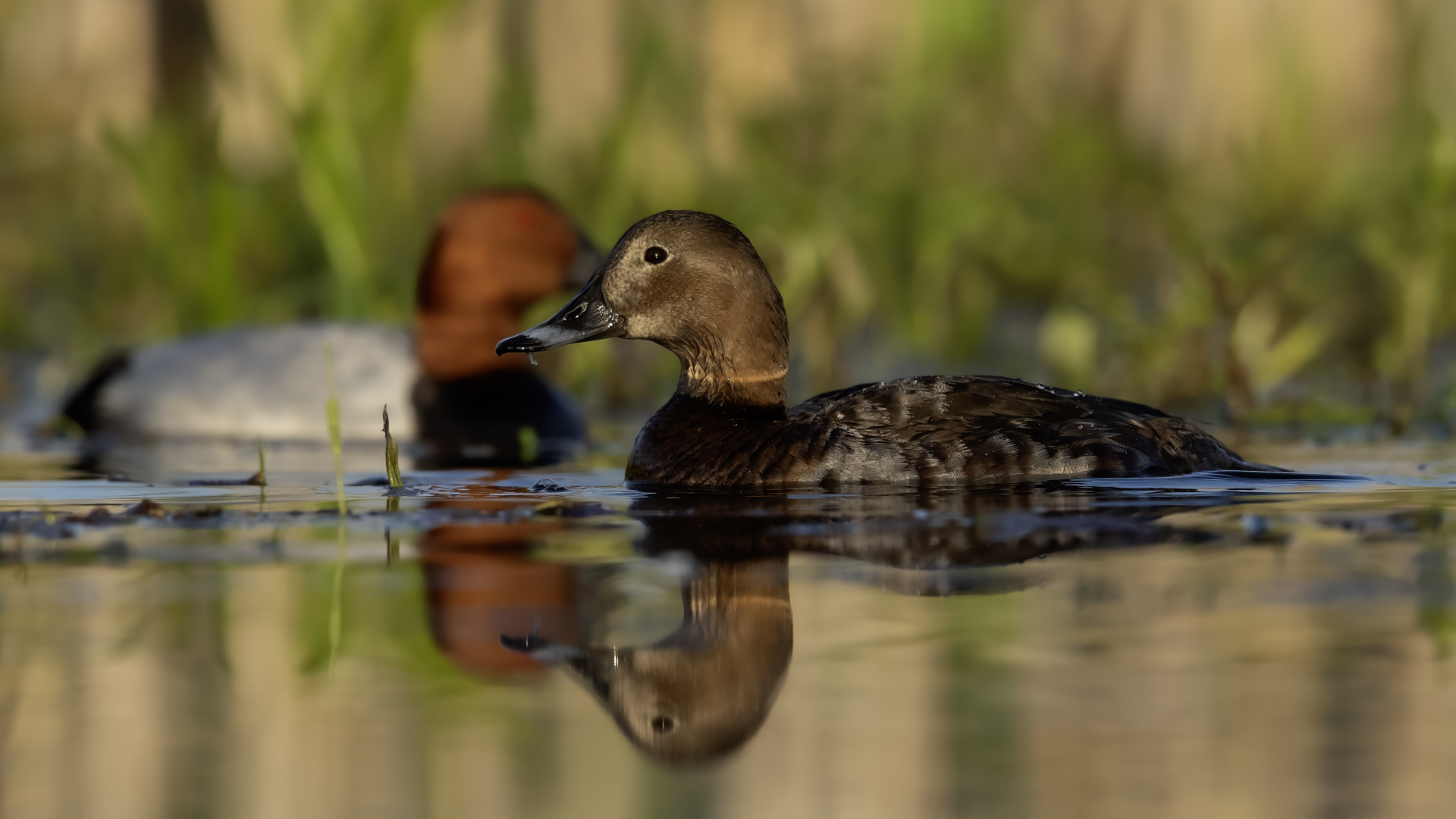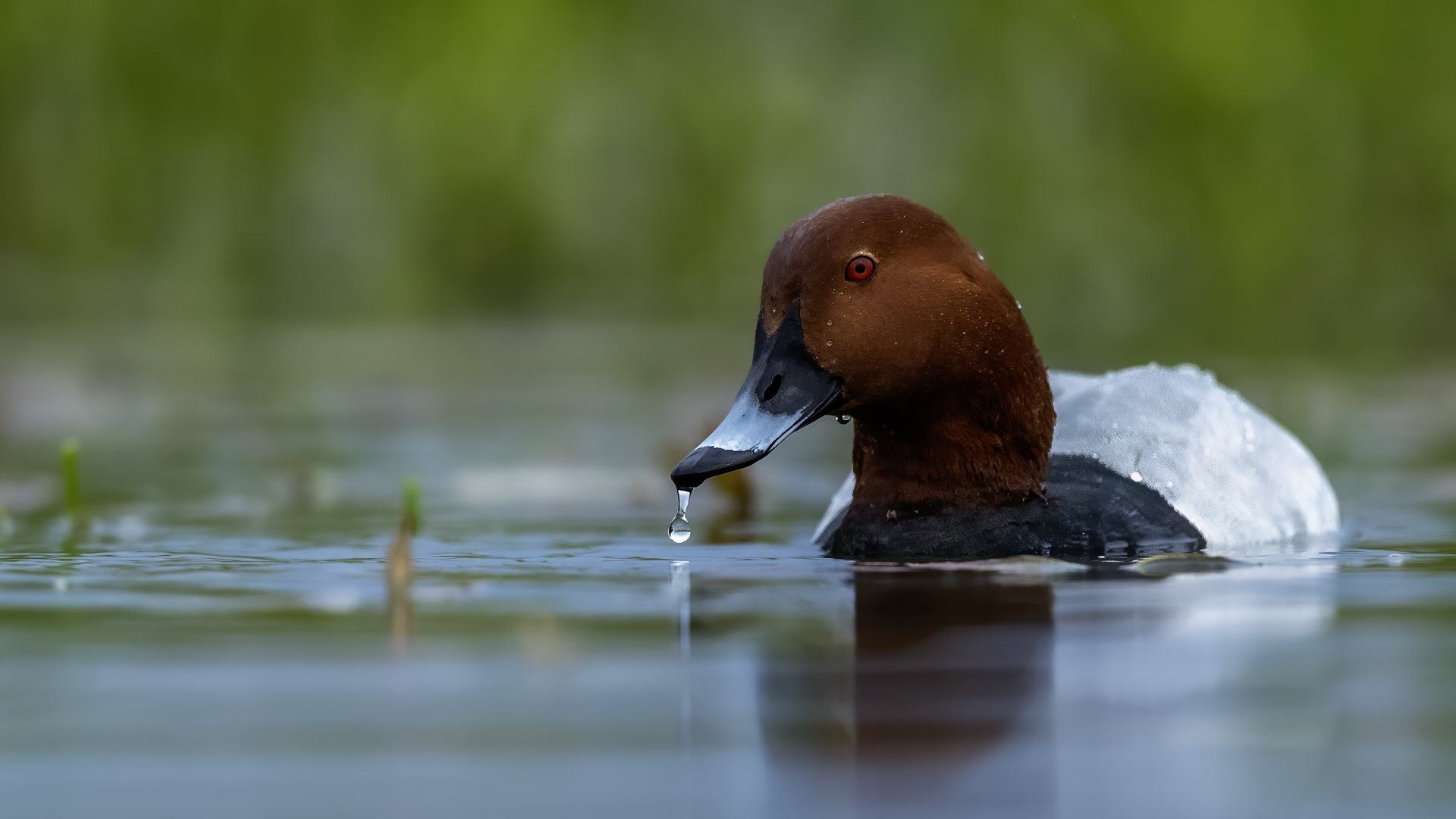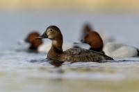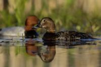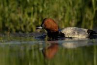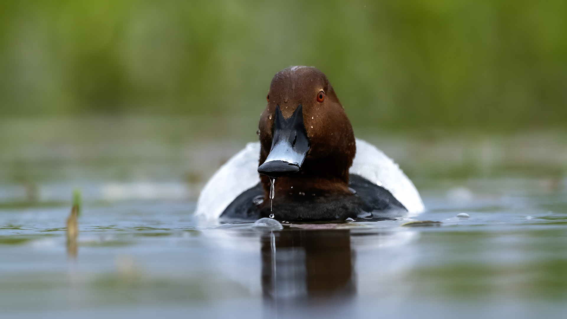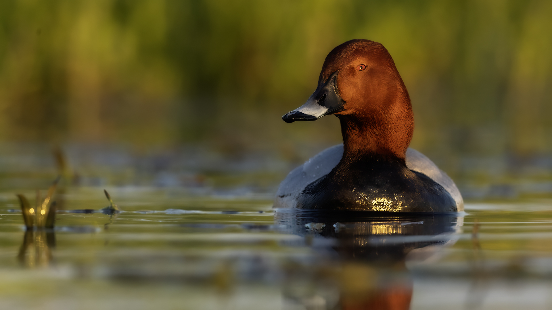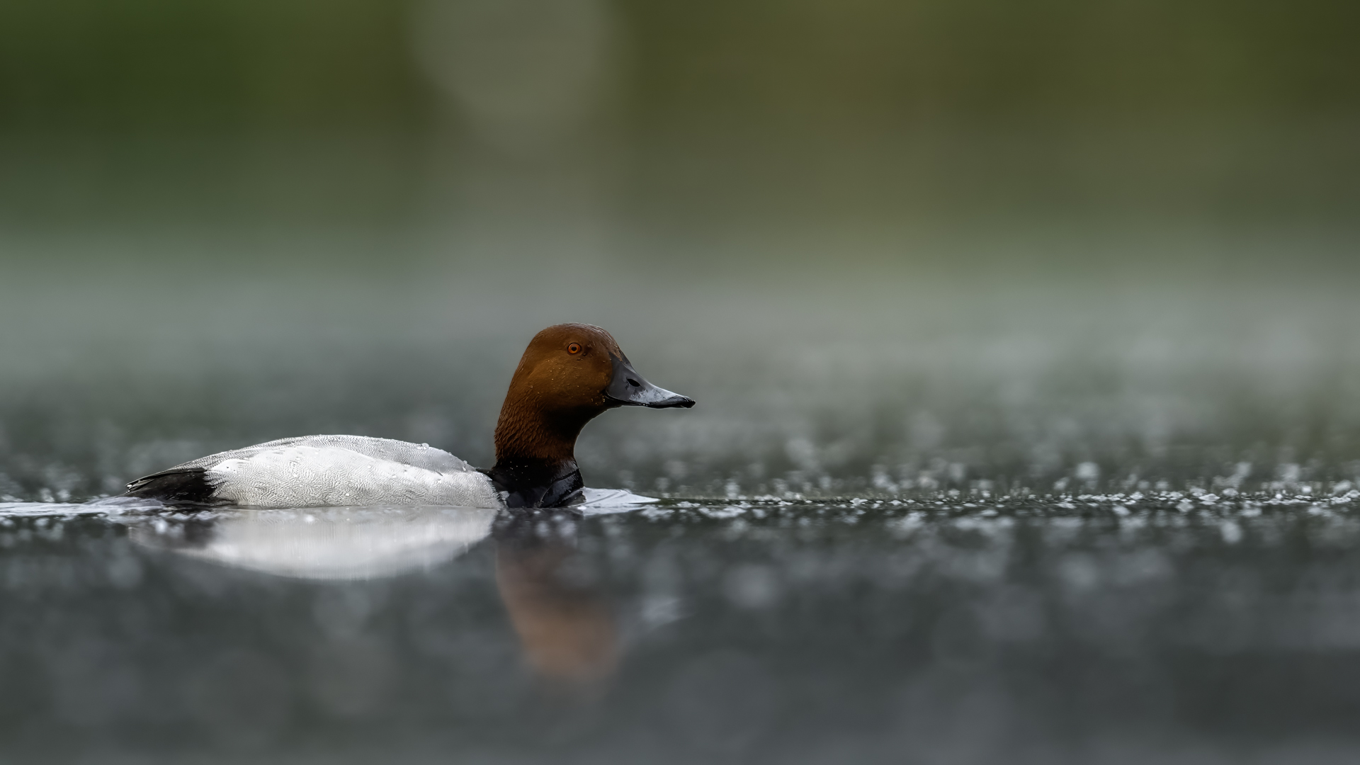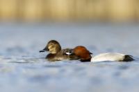 A medium-sized duck, with a weight of about one kilogram and a wingspan of approximately 70 cm. I had the pleasure to photograph common pochards while taking pictures of tufted ducks, in breeding ponds. When you watch the common pochard an amazing view seems to be its blood-red eye against the brown neck. Pochards, though quite skittish, are much more commonly found than tufted ducks. There will probably be a lot of occasions to complete the gallery presented to you.