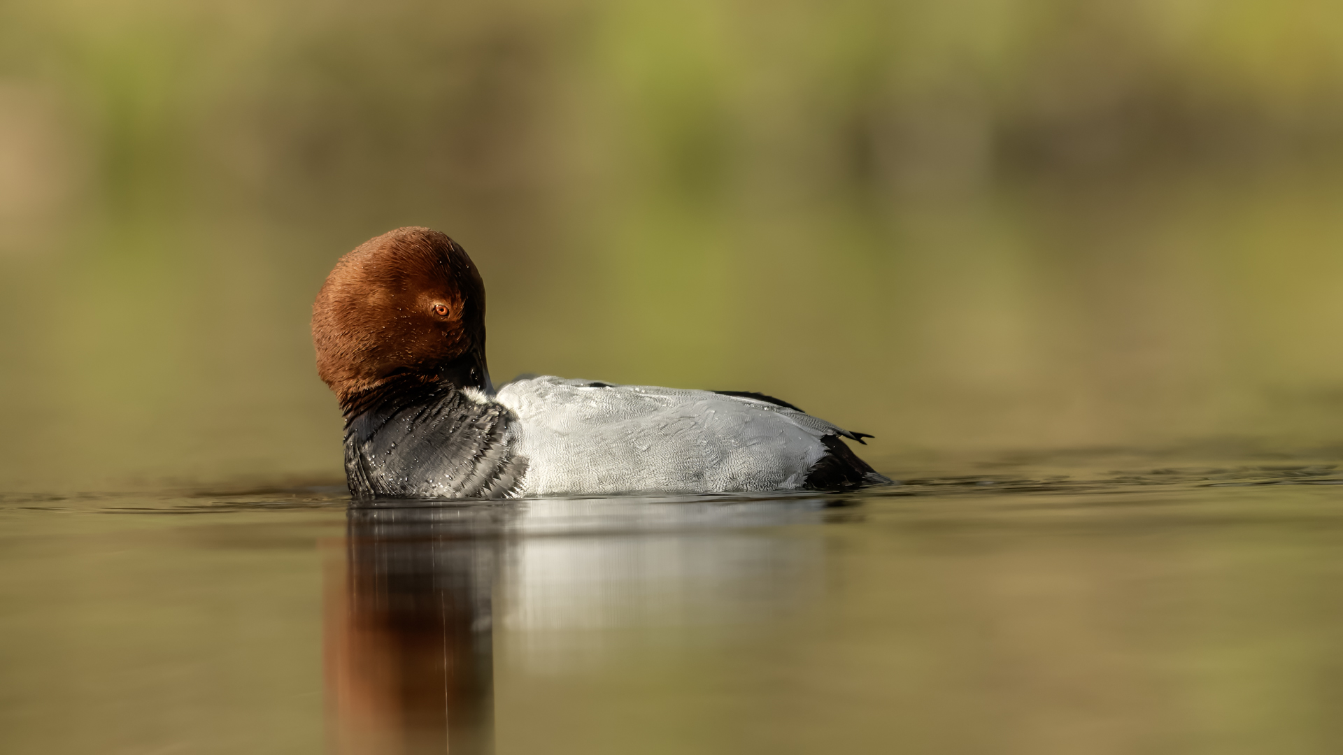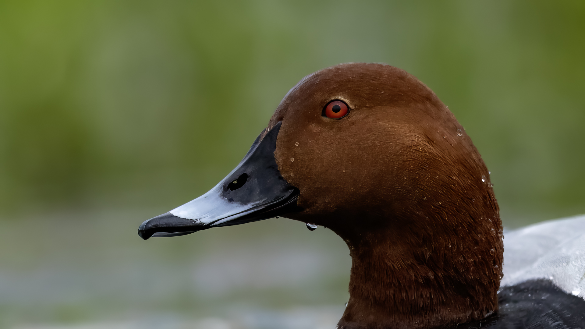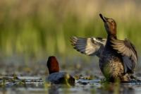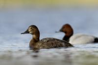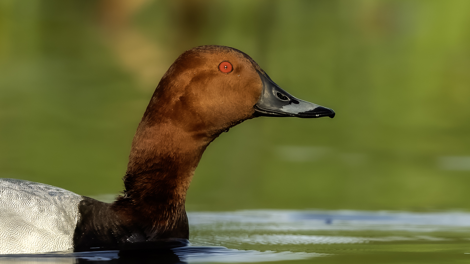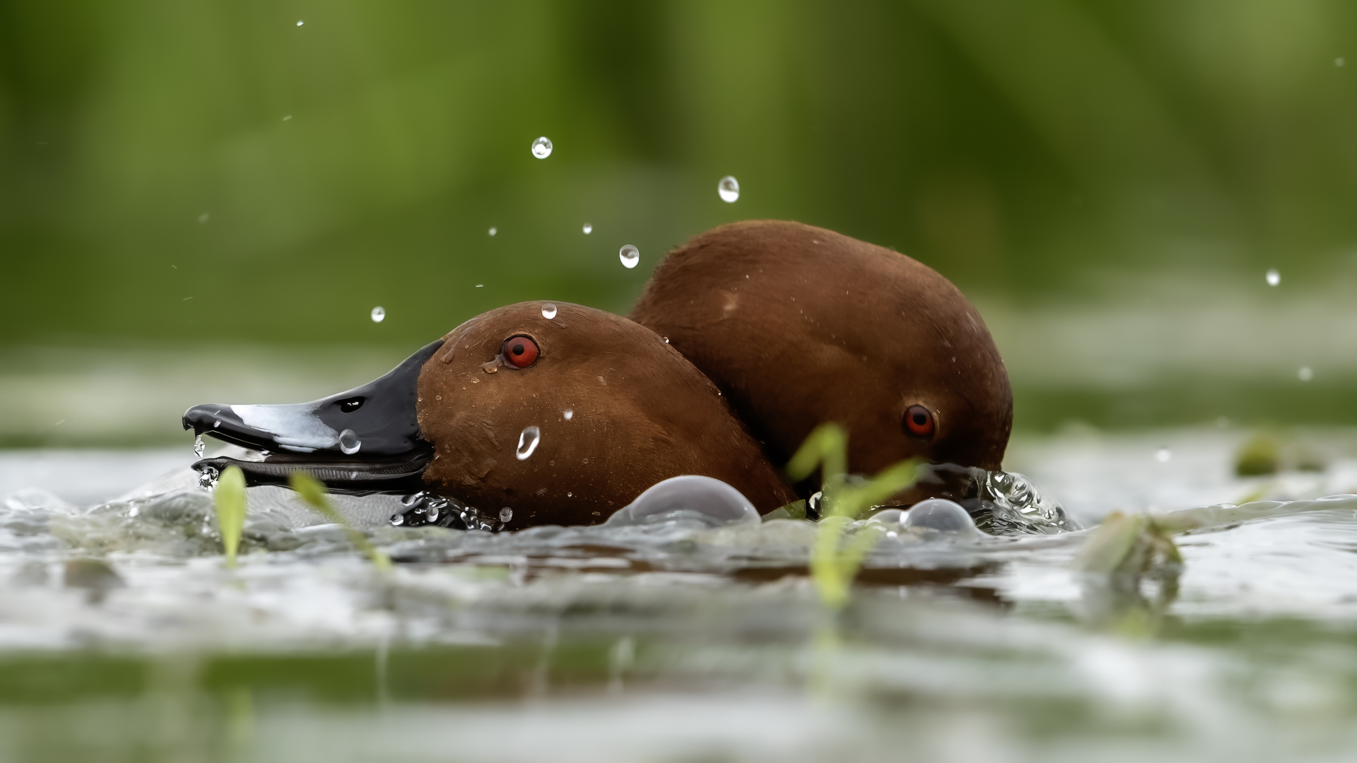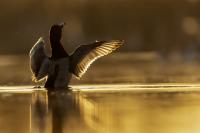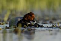 A medium-sized duck, with a weight of about one kilogram and a wingspan of approximately 70 cm. I had the pleasure to photograph common pochards while taking pictures of tufted ducks, in breeding ponds. When you watch the common pochard an amazing view seems to be its blood-red eye against the brown neck. Pochards, though quite skittish, are much more commonly found than tufted ducks. There will probably be a lot of occasions to complete the gallery presented to you.