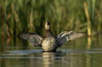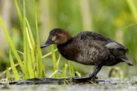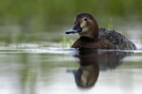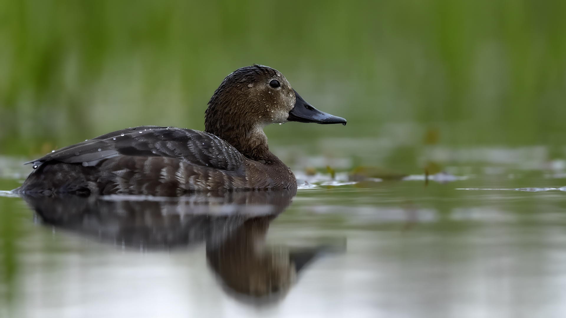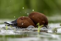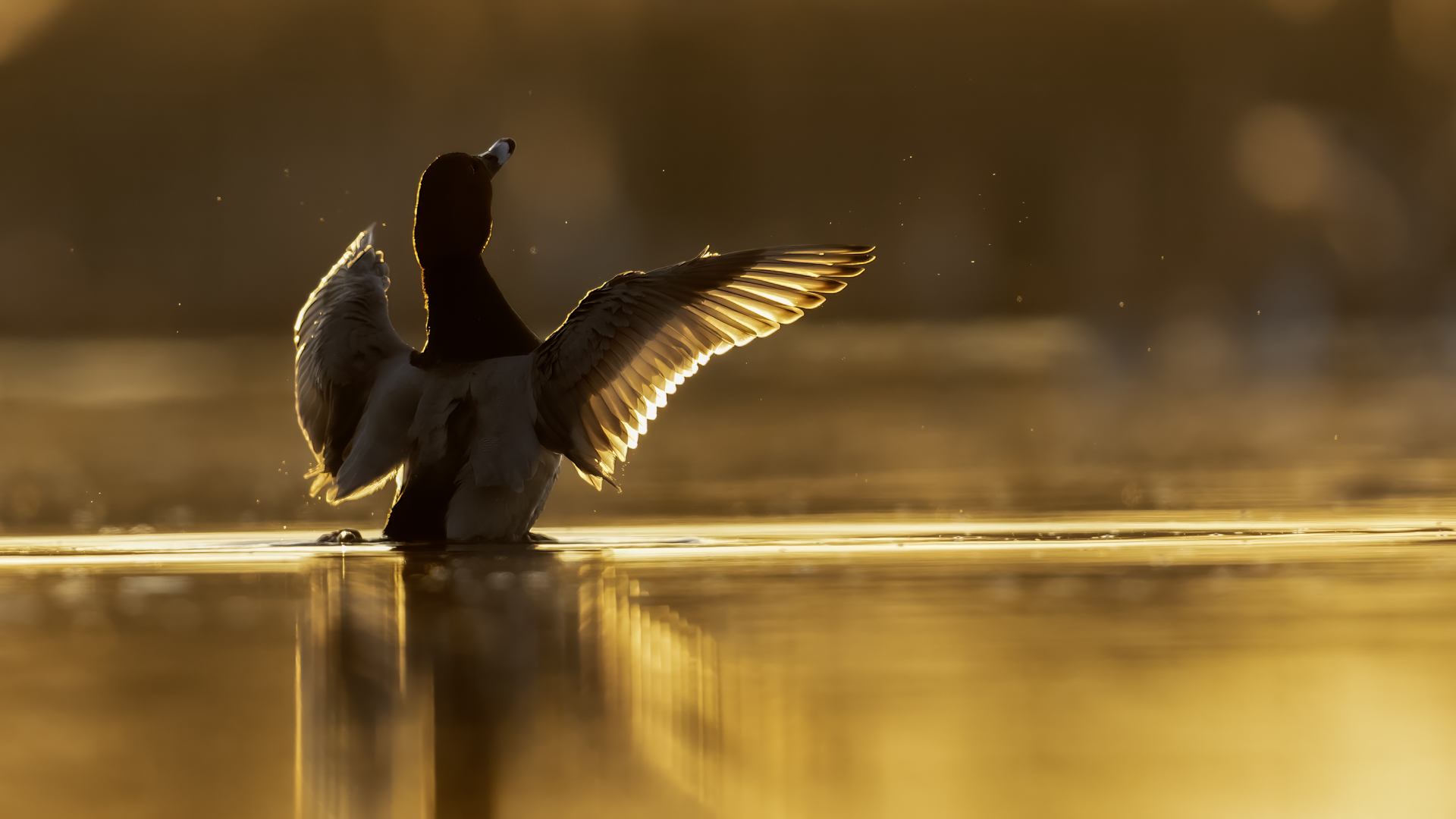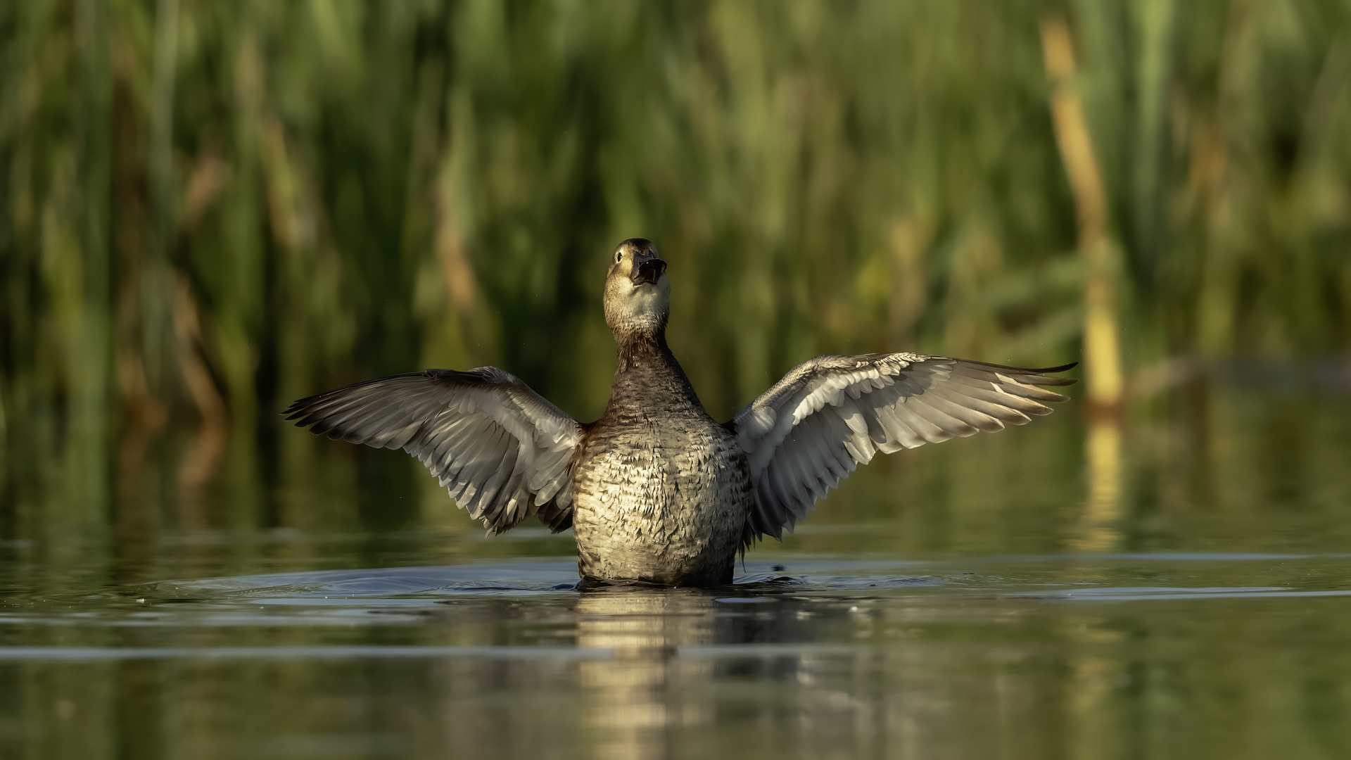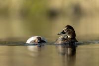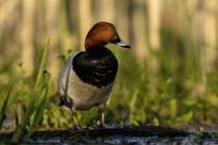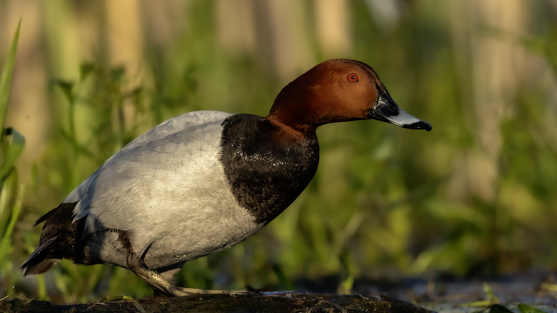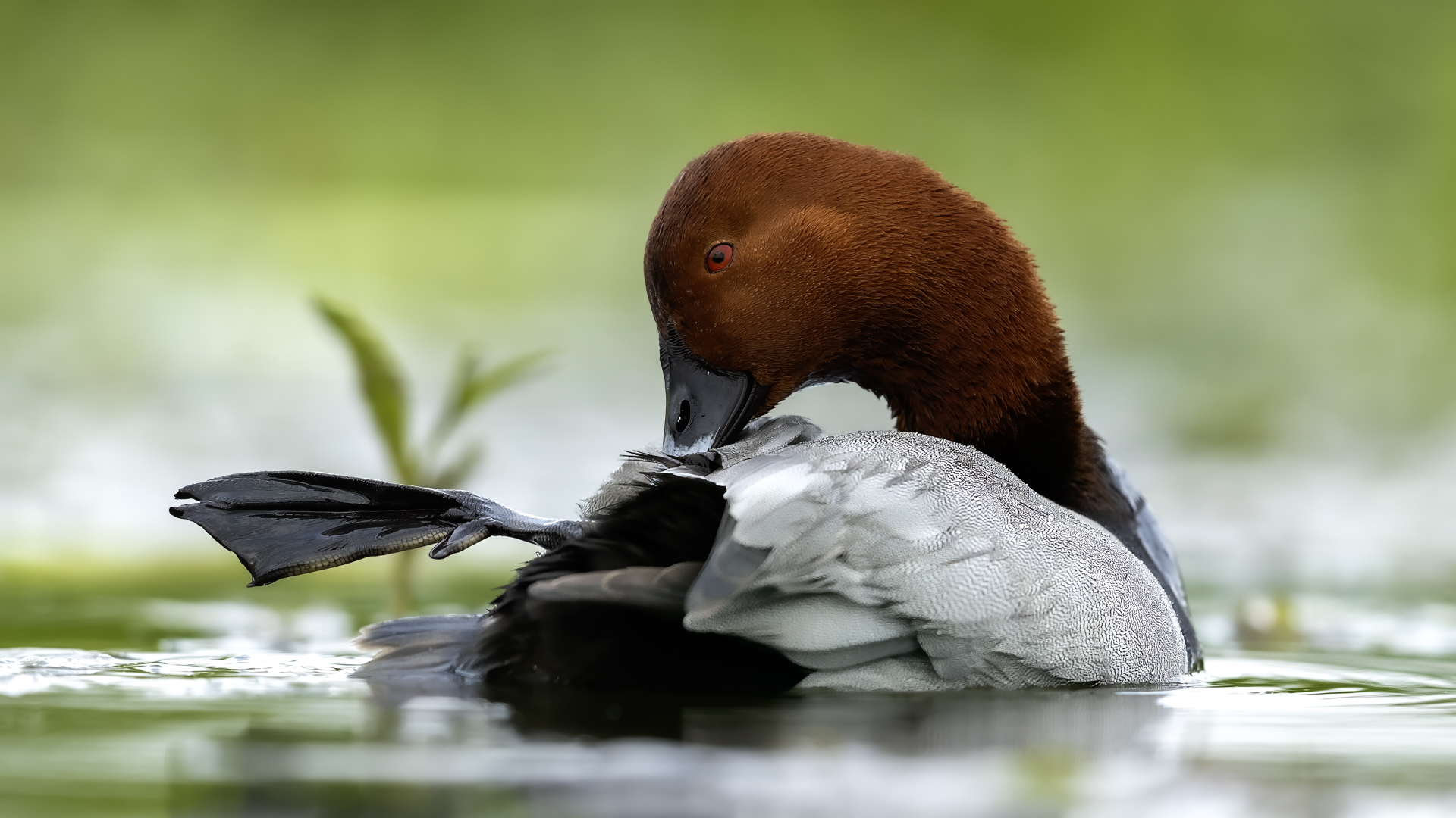 A medium-sized duck, with a weight of about one kilogram and a wingspan of approximately 70 cm. I had the pleasure to photograph common pochards while taking pictures of tufted ducks, in breeding ponds. When you watch the common pochard an amazing view seems to be its blood-red eye against the brown neck. Pochards, though quite skittish, are much more commonly found than tufted ducks. There will probably be a lot of occasions to complete the gallery presented to you.