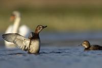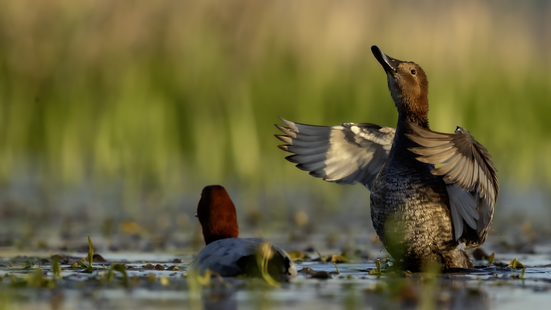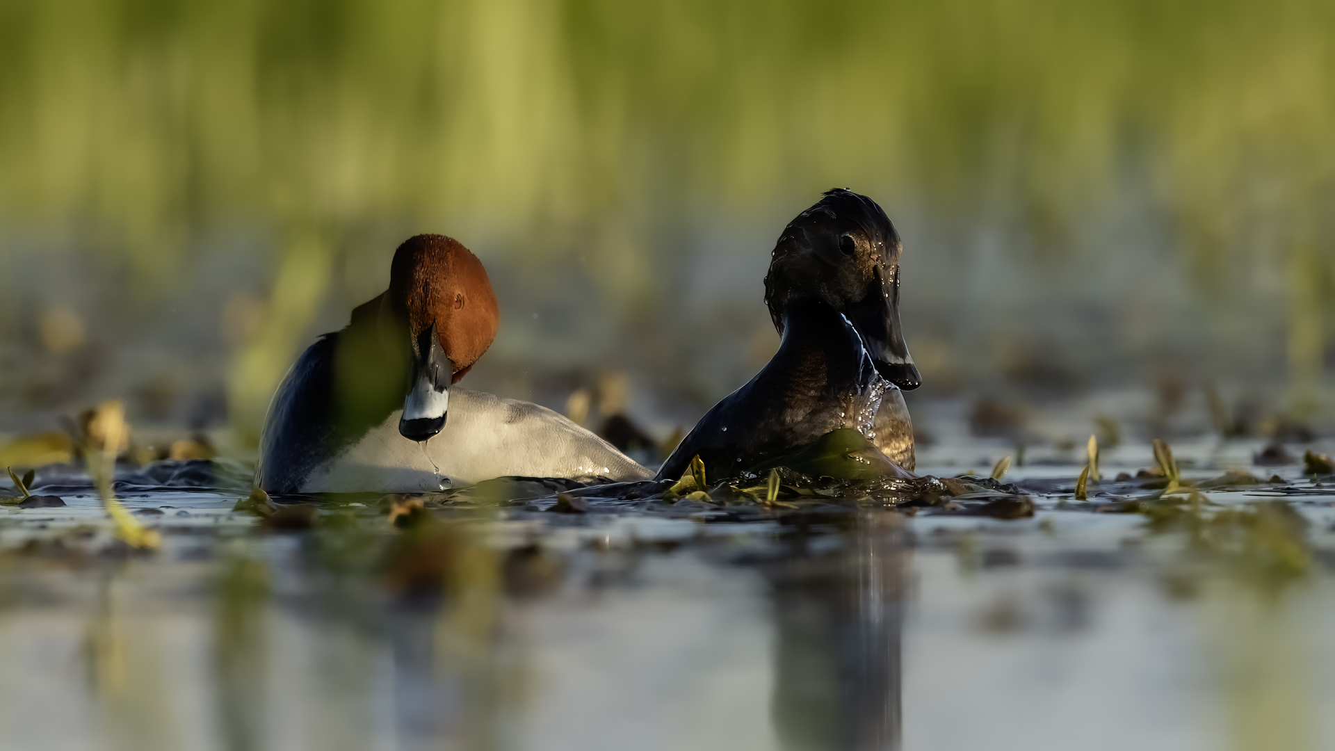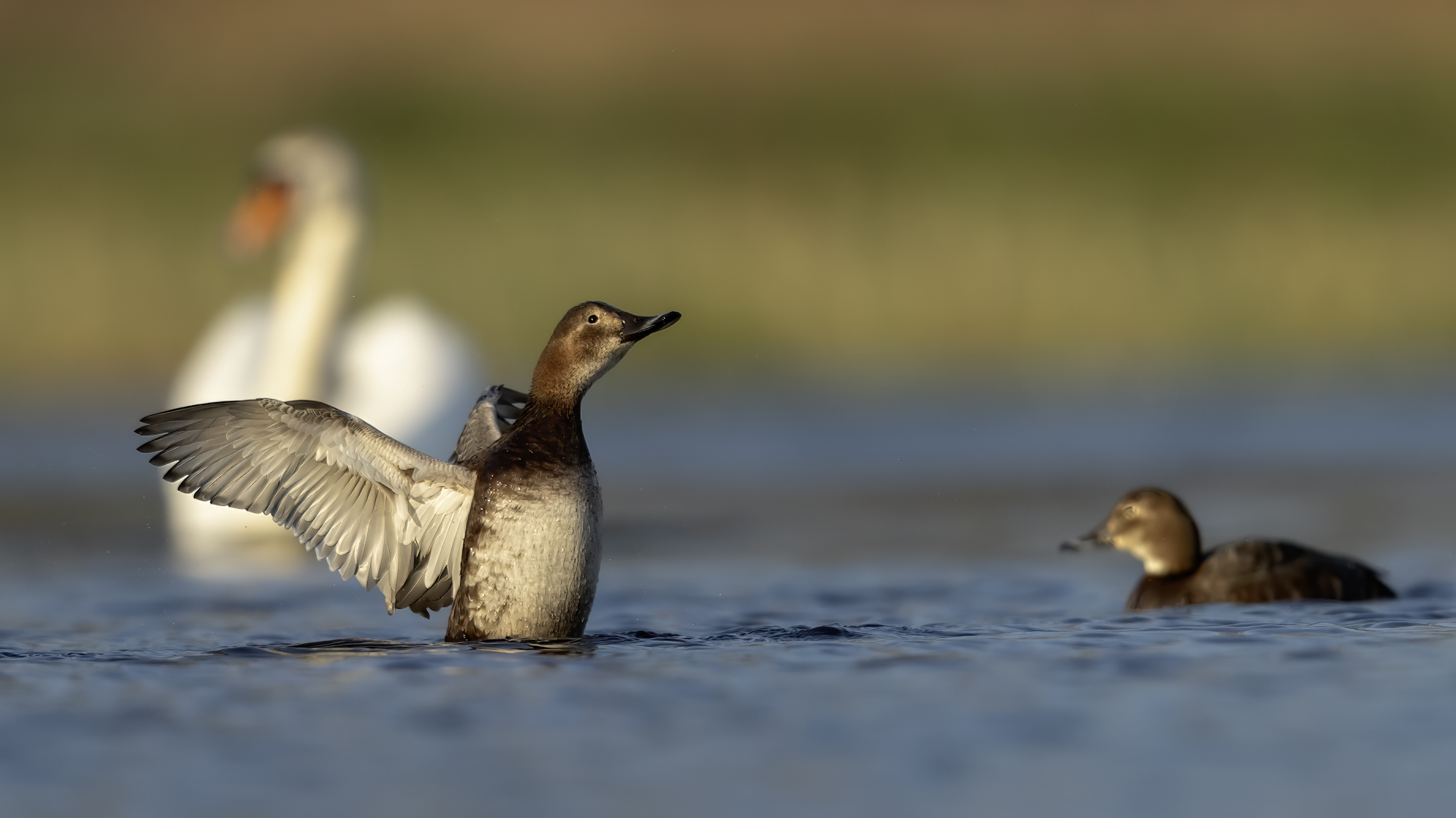 While I was shooting black-necked grebes, finally, after a few years I encountered common pochards. I could watch them from the least possible distance and it was really interesting. Although it did not last long, my best photos of the common pochards were created. The male and two females floating near the black-necked grebes and coots began to behave similarly and were not skittish. The gallery has been rebuilt.