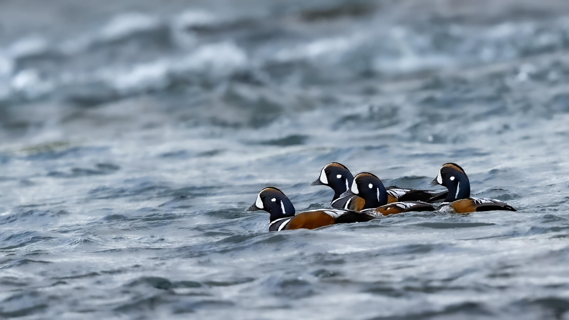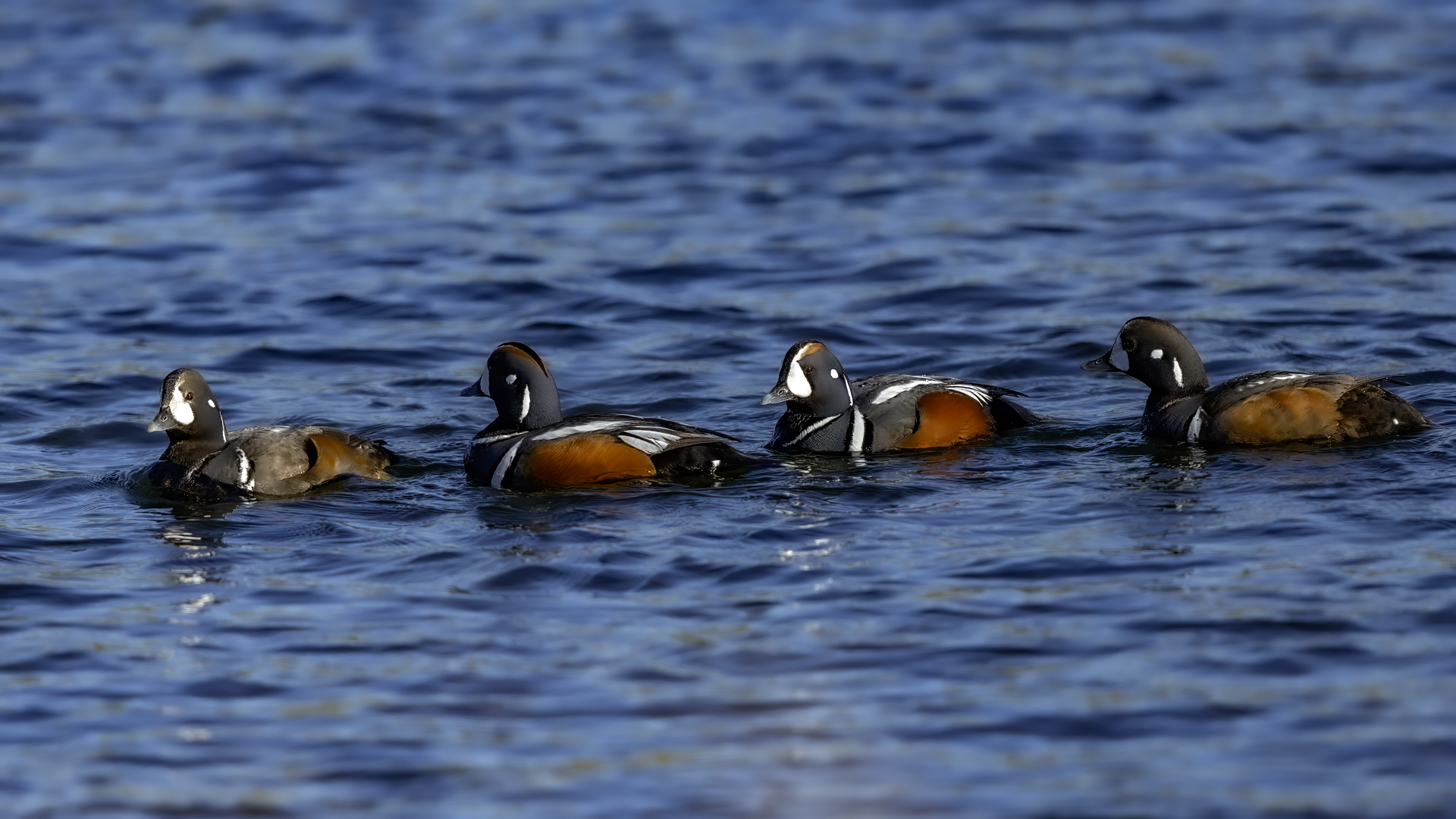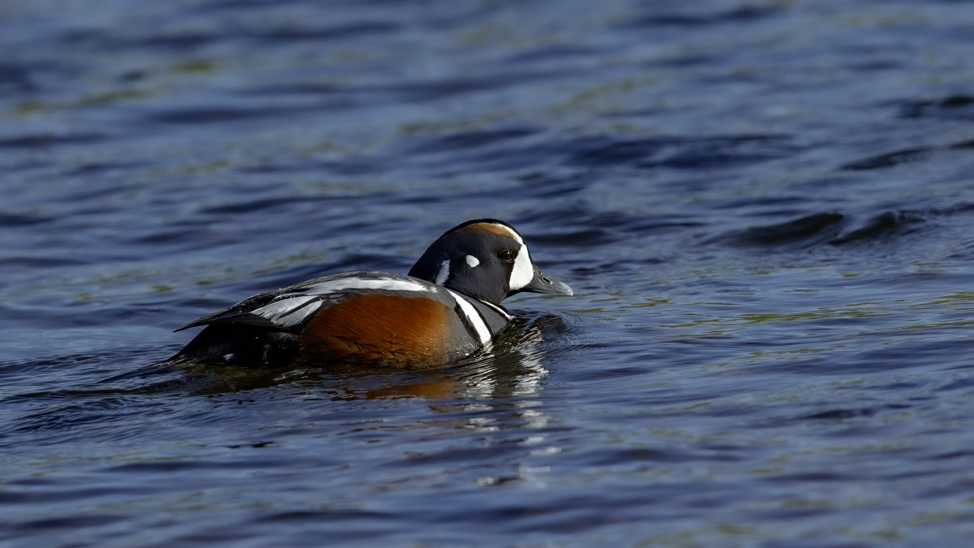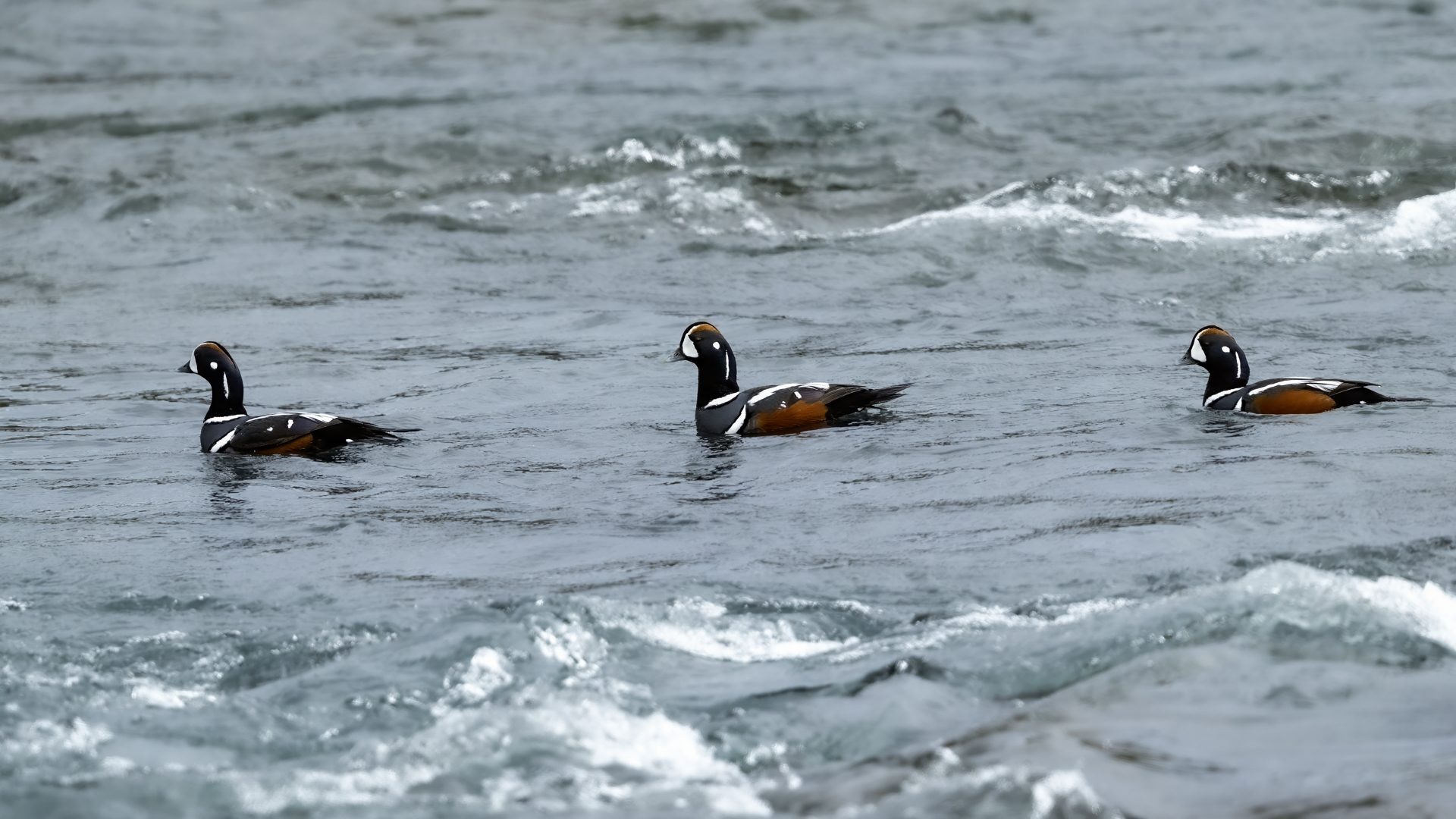 In Iceland it happened to me to run into  the Harlequin Duck a few times. Always in the mainstream of quite swift rivers. Sometimes I could see them basking on coastal rocks. It is a colorful duck reaching to 800 grams of weight and up to 70 cm of wingspan. The best photos were taken during the shooting red-throated loon, where harlequin ducks flowed a little further. Fortunately I managed to spot  it, as my eyes was fixed on loons so much that common eiders sitting nearby I noticed only when leaving the bank of the river. Unfortunately the ducks were quite skittish and did not allow me to reduce quite a long distance between us. They were always watching attentively and receding slowly. Harlequin ducks in Europe are found only in Iceland. There the population is estimated at 14 thousand individuals in winter (2014).