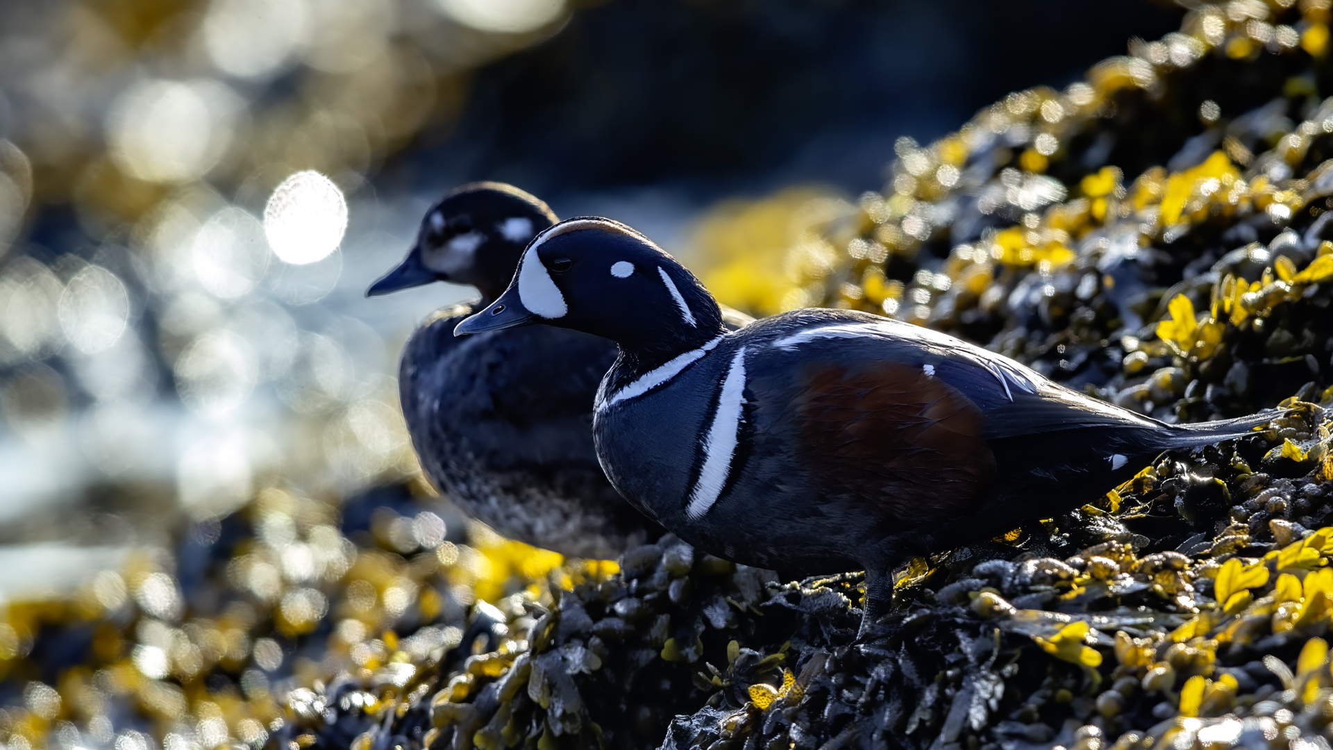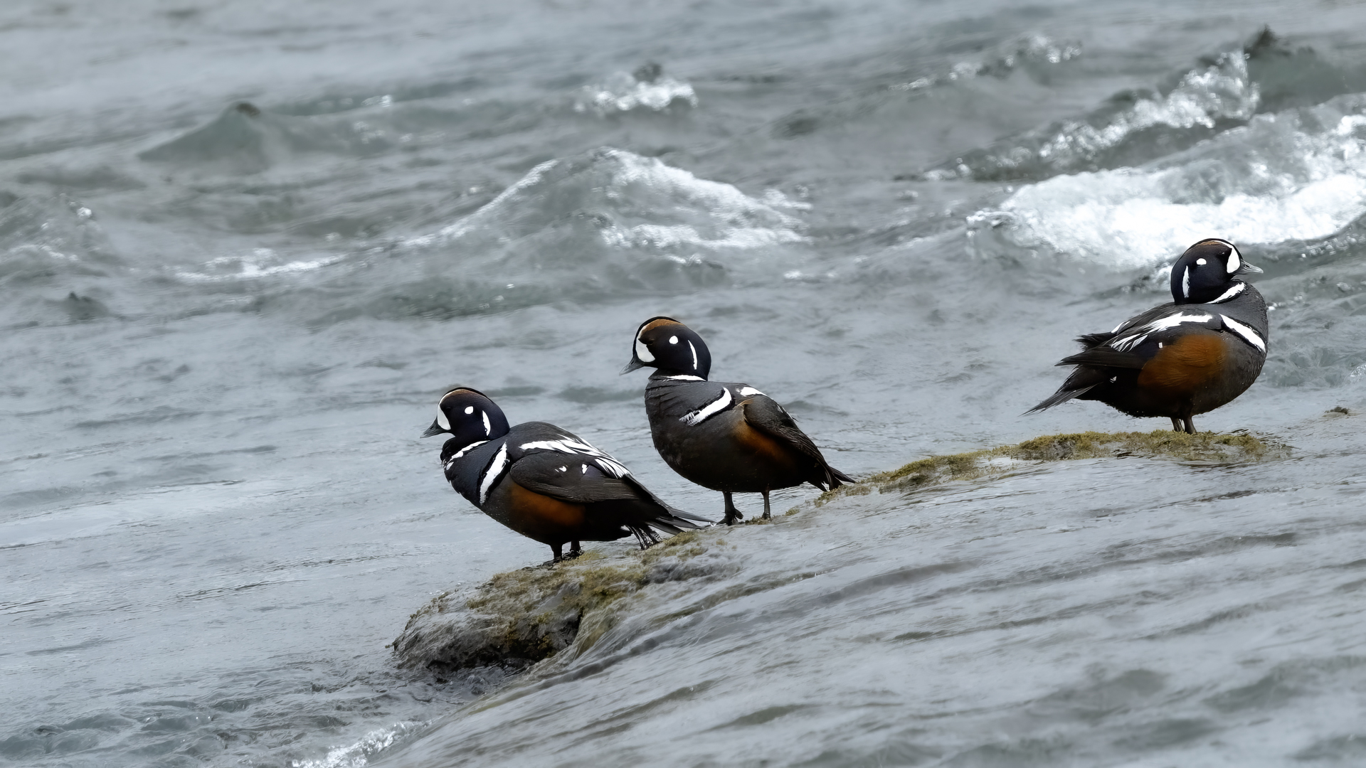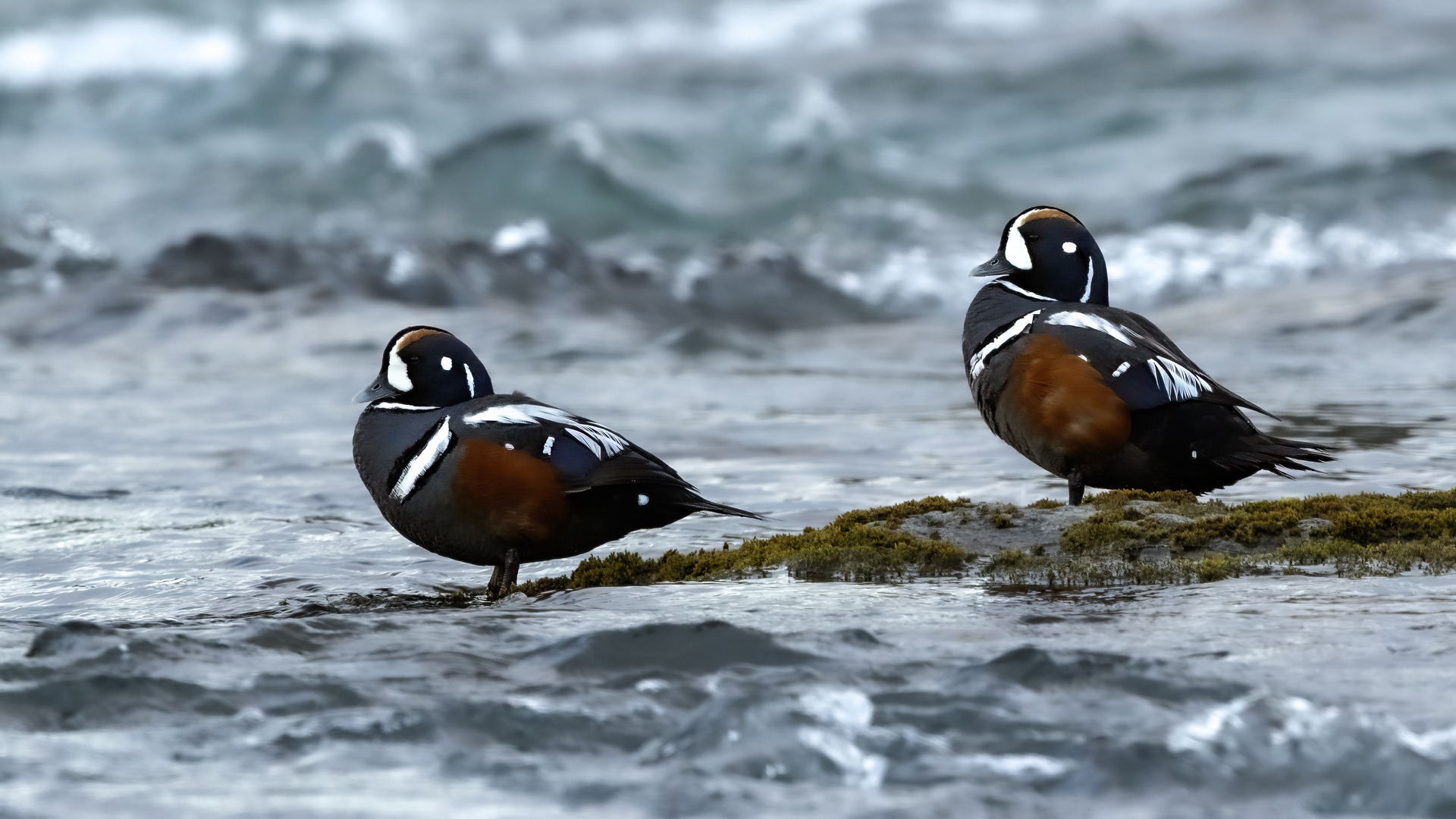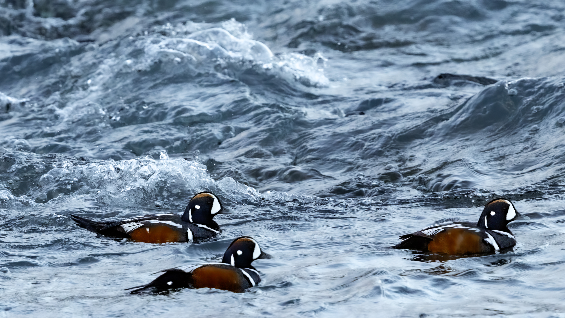 In Iceland it happened to me to run into  the Harlequin Duck a few times. Always in the mainstream of quite swift rivers. Sometimes I could see them basking on coastal rocks. It is a colorful duck reaching to 800 grams of weight and up to 70 cm of wingspan. The best photos were taken during the shooting red-throated loon, where harlequin ducks flowed a little further. Fortunately I managed to spot  it, as my eyes was fixed on loons so much that common eiders sitting nearby I noticed only when leaving the bank of the river. Unfortunately the ducks were quite skittish and did not allow me to reduce quite a long distance between us. They were always watching attentively and receding slowly. Harlequin ducks in Europe are found only in Iceland. There the population is estimated at 14 thousand individuals in winter (2014).