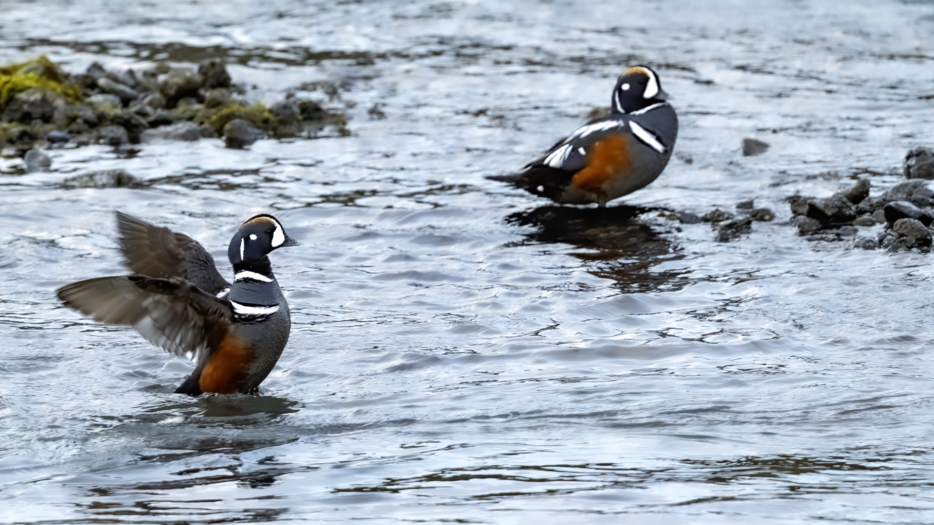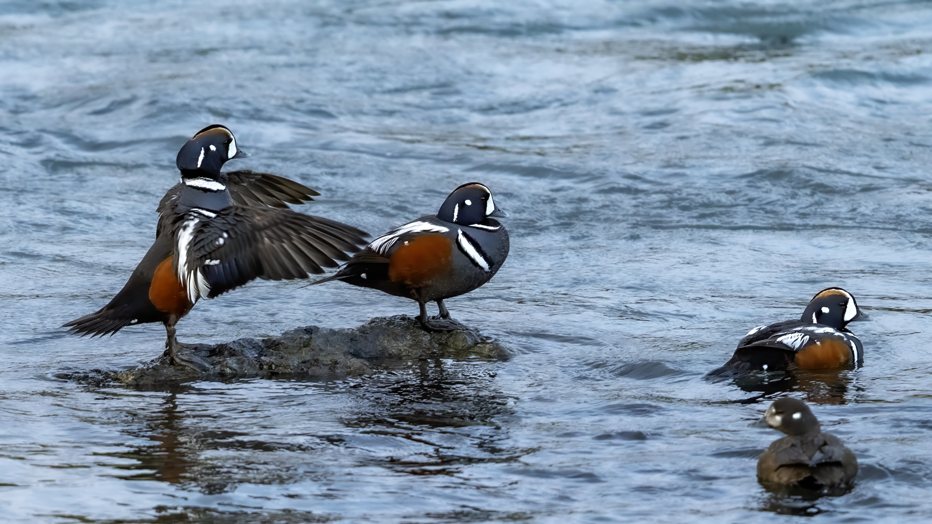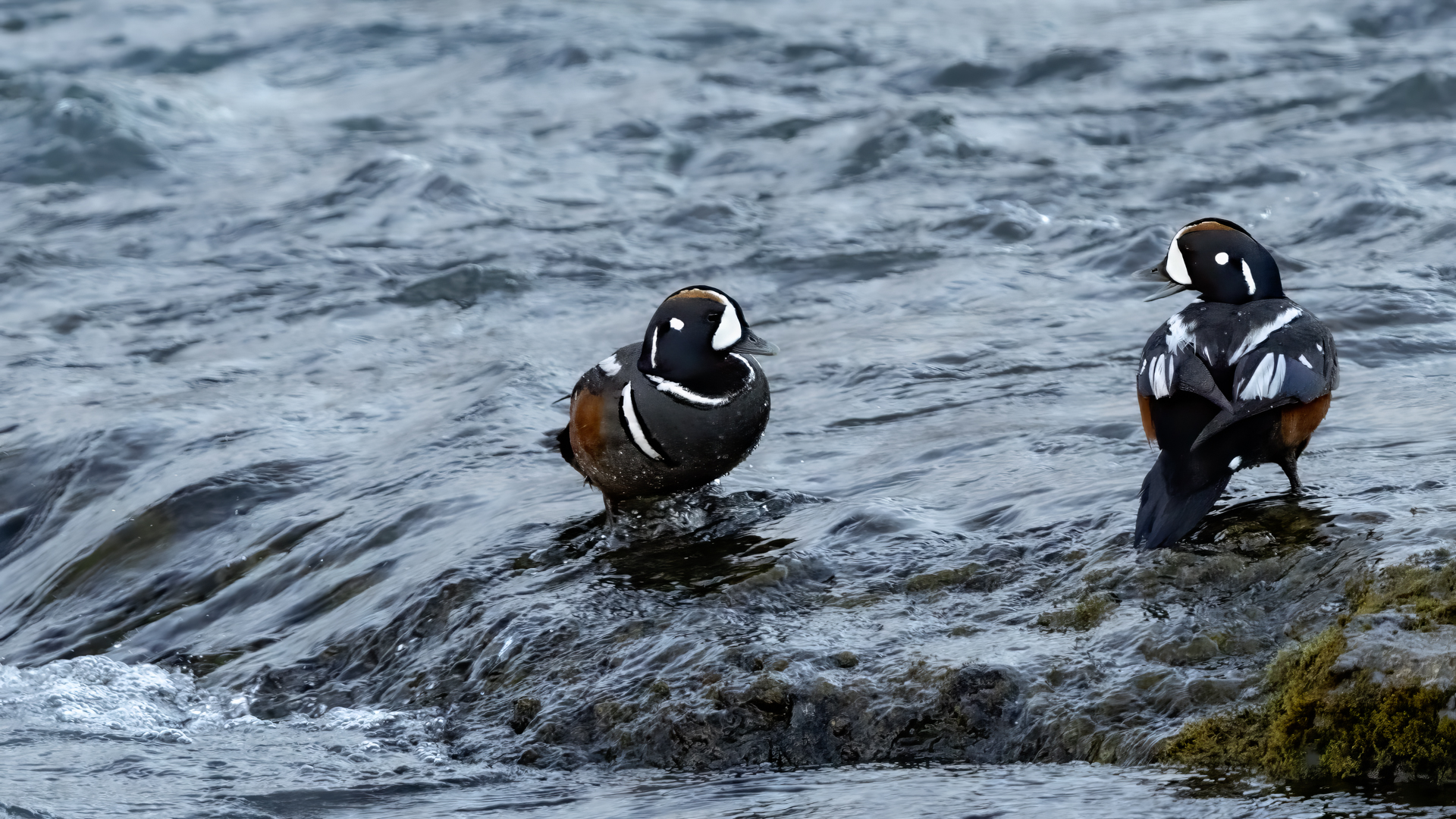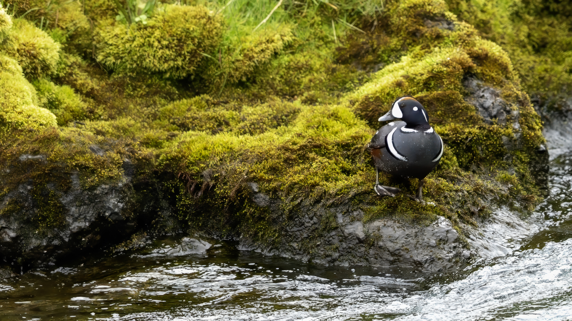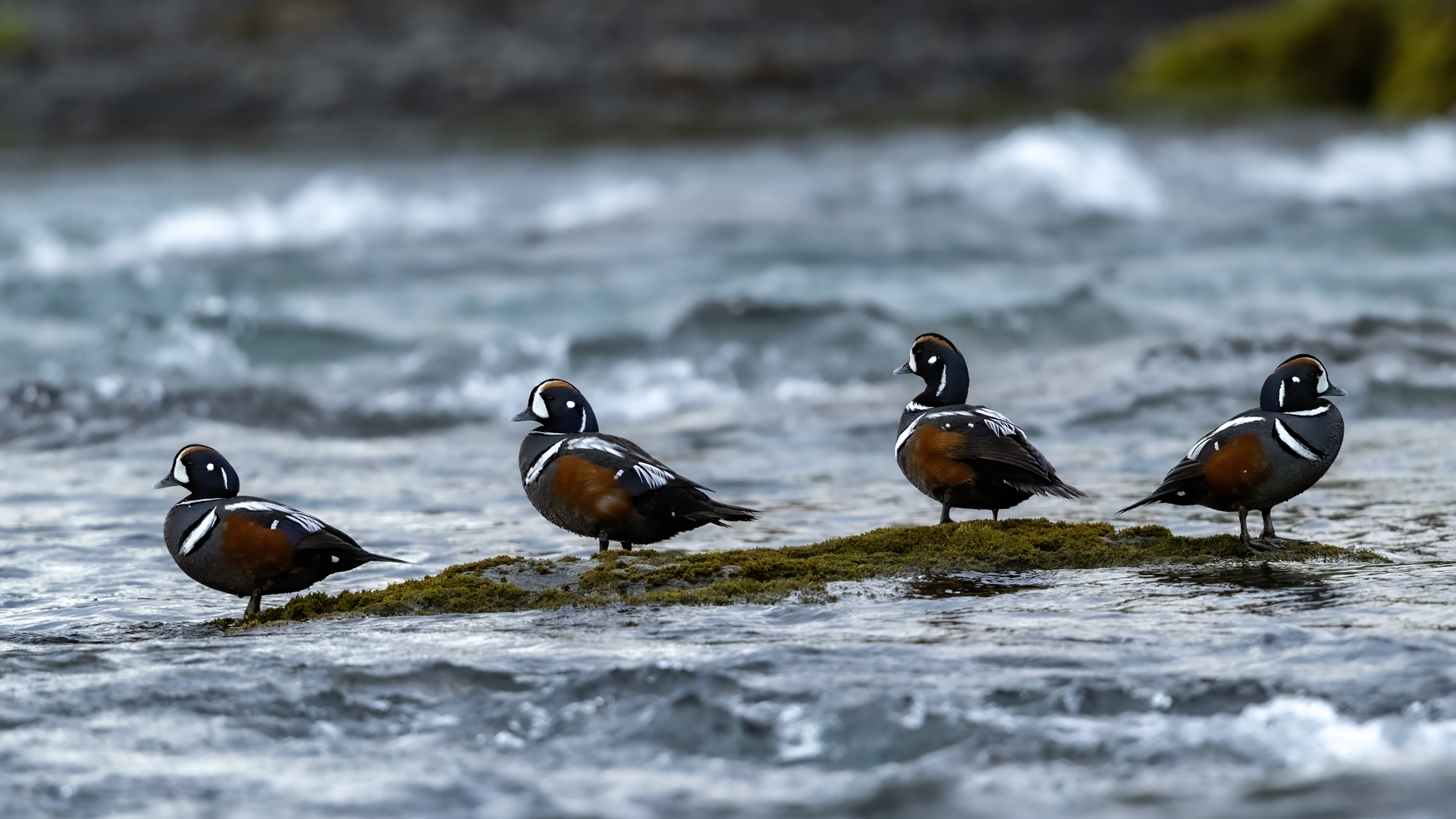 We have seen harlequin ducks in Iceland many times. But to take more interesting shots more time is needed. First of all we have to find out where the birds usually occur, preferably it should be a bushy place where there is no steep bank and there is a flat space. Then, we would have to devote many hours to hide and wait for them to come back to the place. It was difficult to take good pictures when moving, most often I photographed from the high banks of rushing rivers, which were steep and a few meters high and thus not interesting view in terms of taking photos. The scared birds flew out of the range of the lens.