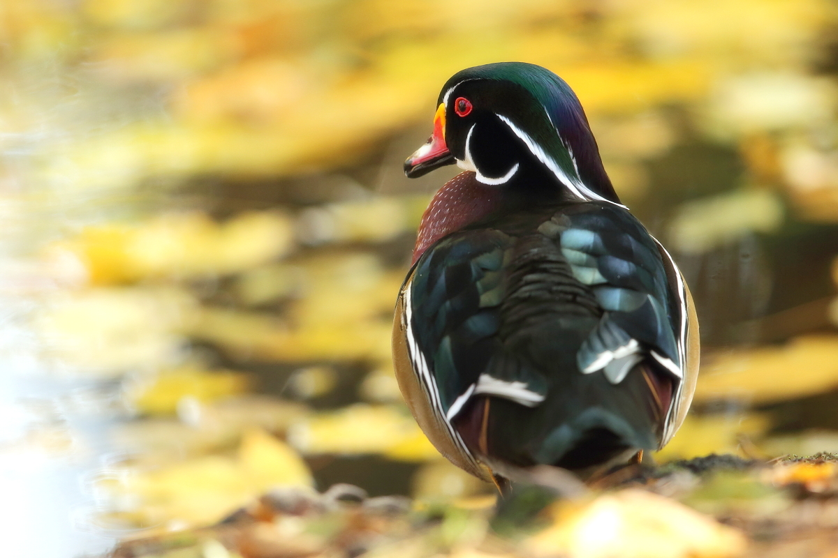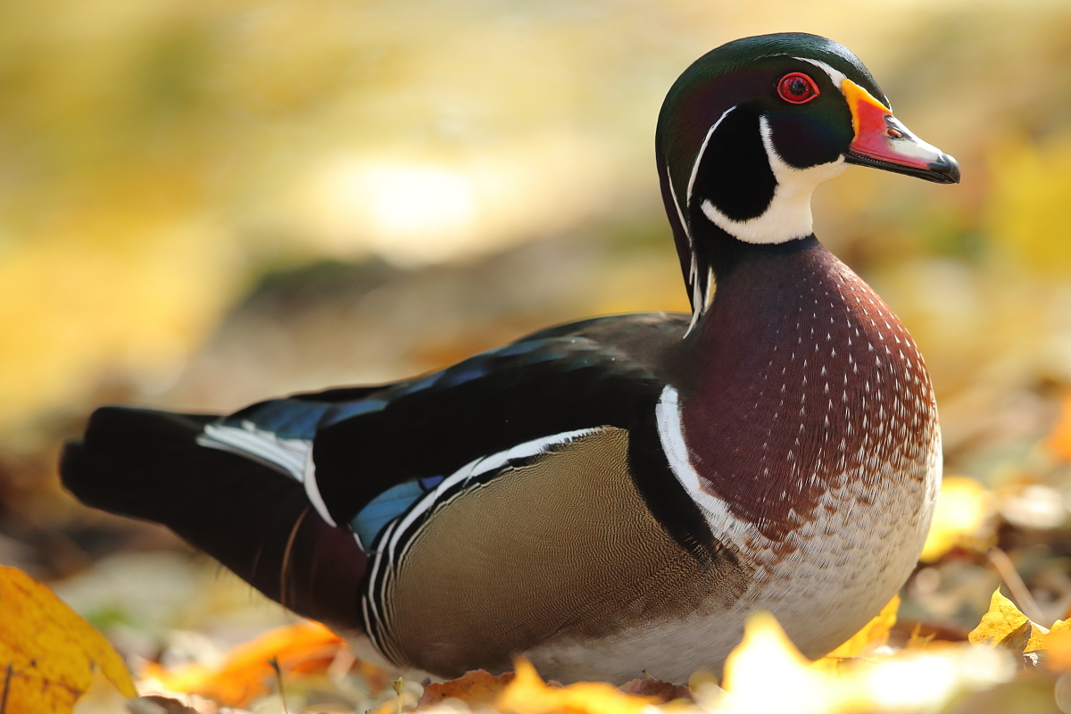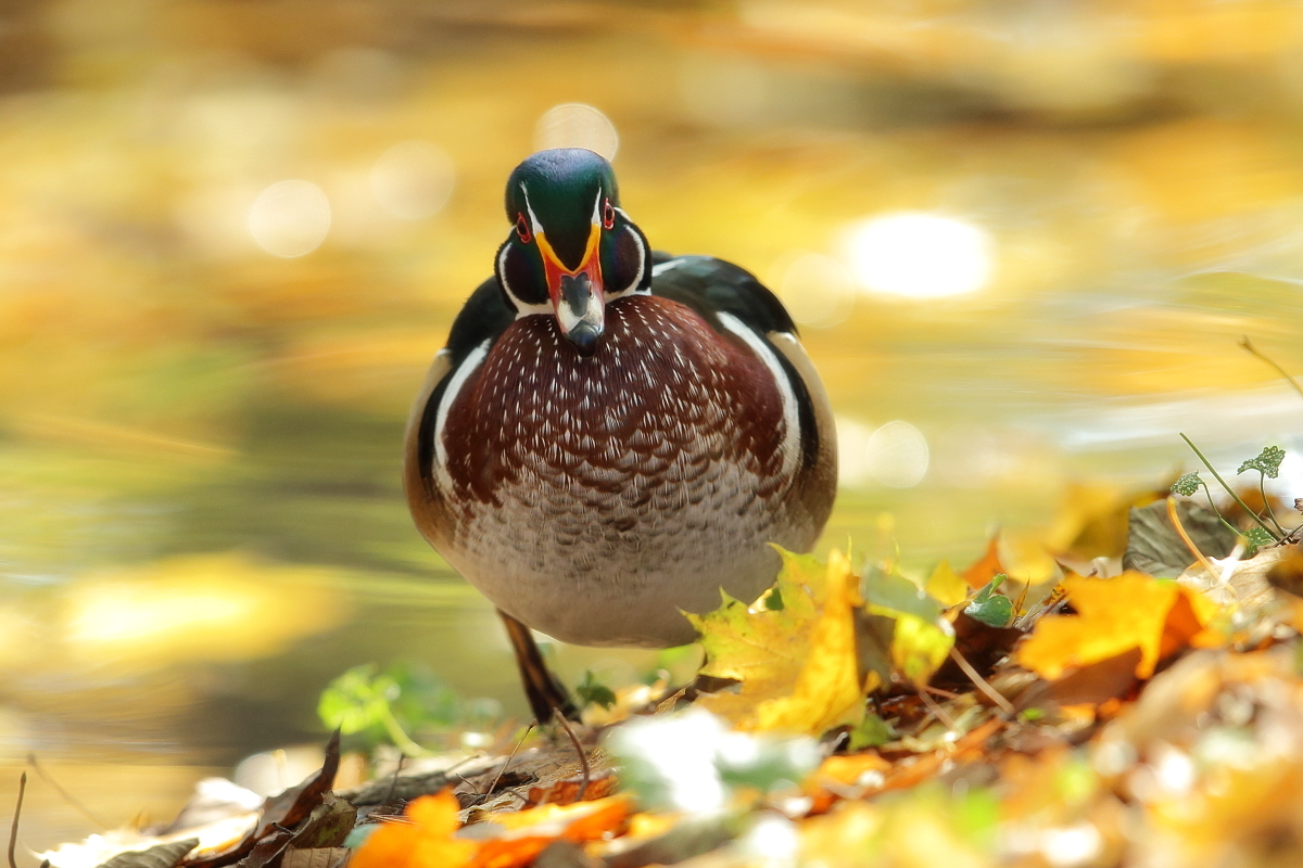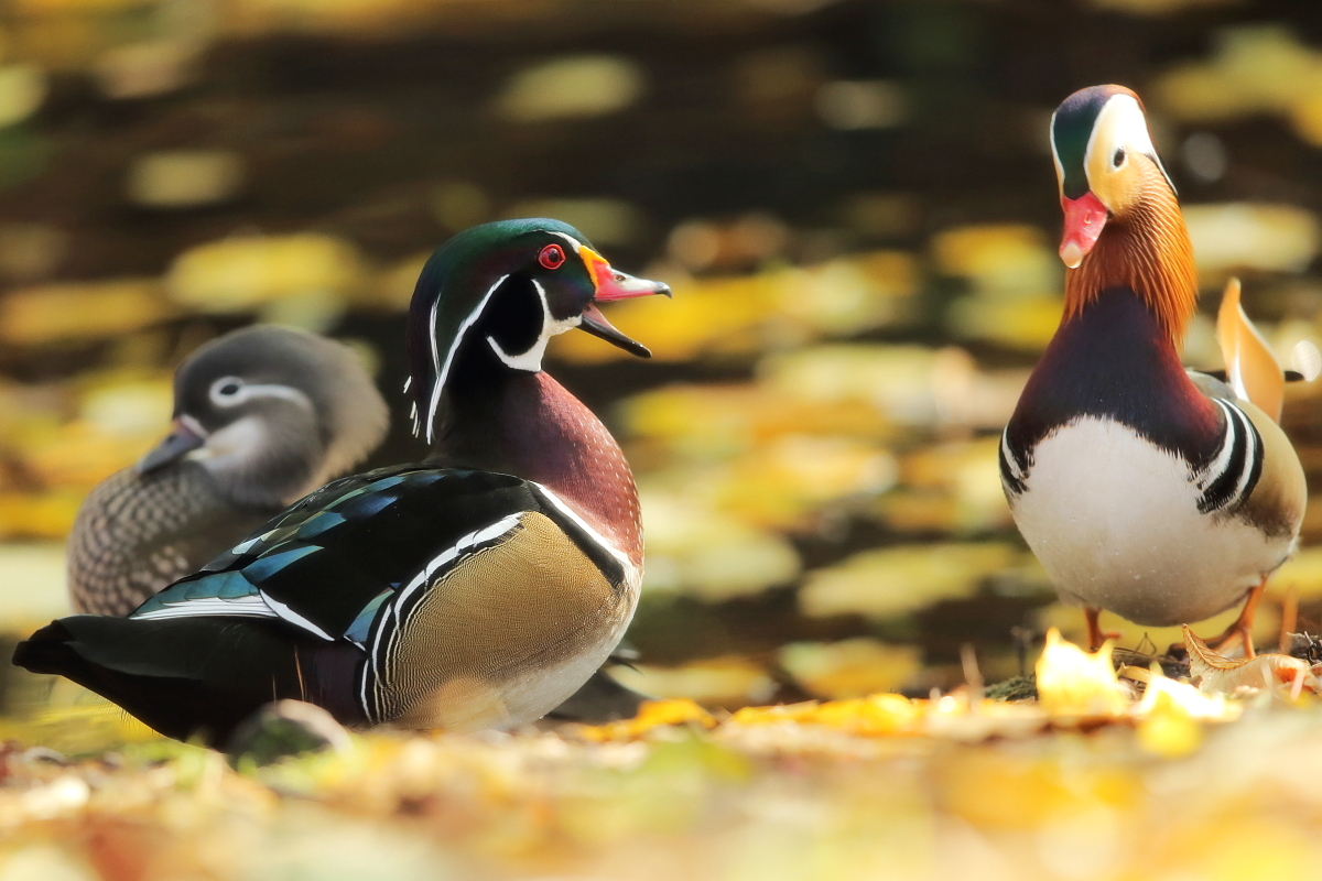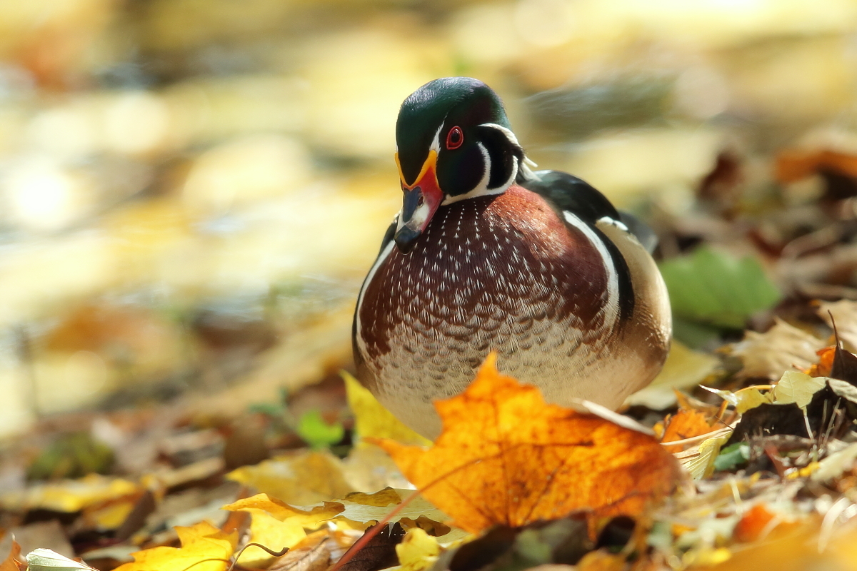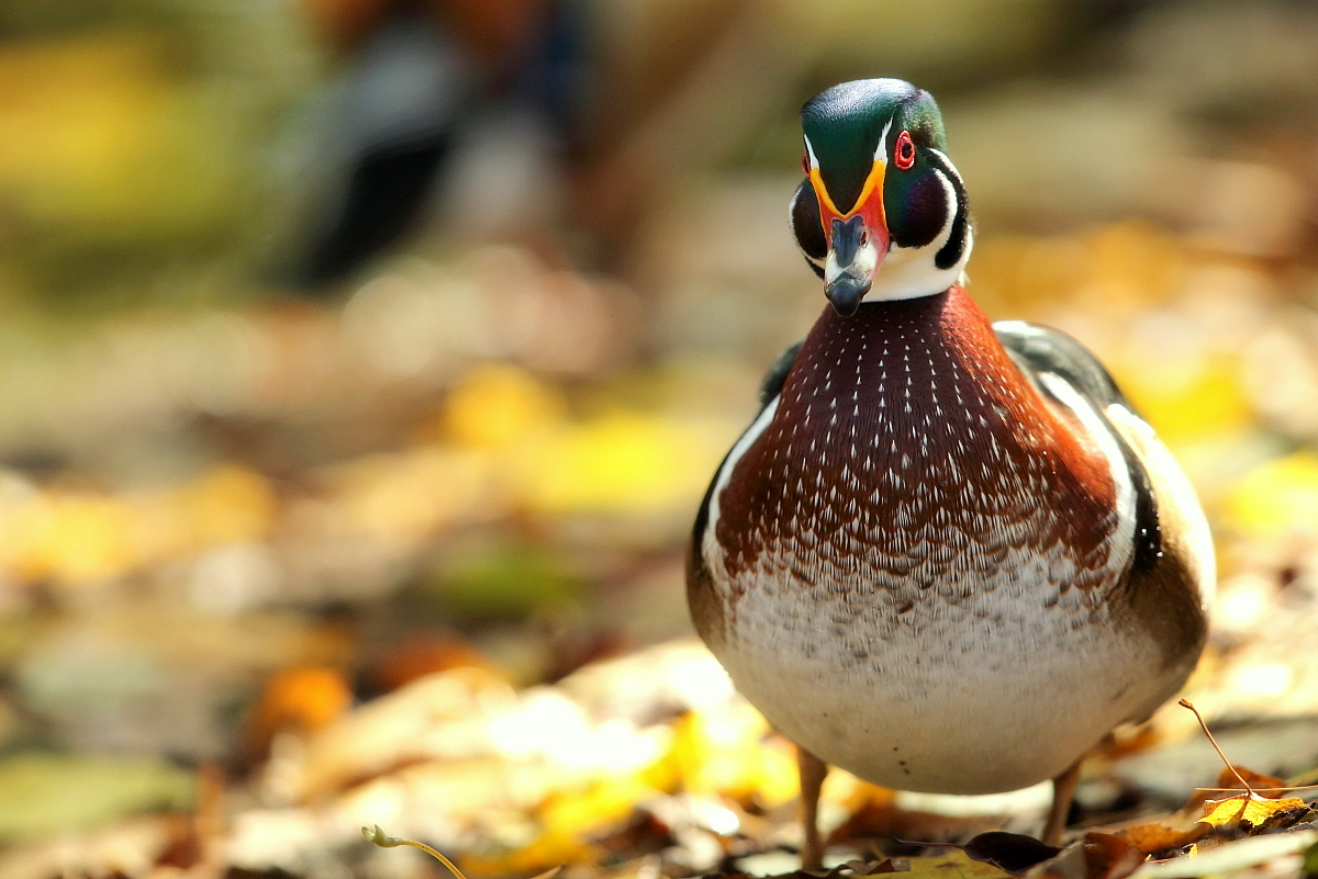 Pictures of the Wood Duck that are published here were taken in a park in Warsaw's Łazienki (Royal Baths). Searching for the duck on our water bodies is useless. Nonfreezing water in winter, sense of security and the fact that people like to fatten birds in the park are conducive to the occurrence of such "misfits" of our fauna as the Wood Duck or the Mandarin Duck. They probably escaped from some breeding farm. The Carolina Duck in nature is found only in North America. It is close to the Mandarin Duck in size, in which company it lives in Łazienki. Wingspan is about 70 cm with a weight of about 0.6 kg. Not only the physical features but also the habits of those species are similar, not to mention the beautiful coloration of males. Wood Ducks incubate eggs in a nest located on a tree. The one-day juveniles must sometimes make a jump from a height of several meters to reach the water body, where they find the first meal. We'll see in time if they assimilate enough to reproduce there in Warsaw’s Royal Bath. I could see one couple there. Conditions in our country seem to be comfortable for the Mandarin Duck, at least in Warsaw, because their population is growing (see also the “last minute news 10/2013” the Mandarin Duck ). What about Wood Ducks? We'll see, anyway I’ll check it when occurs the opportunity to walk around this beautiful park.