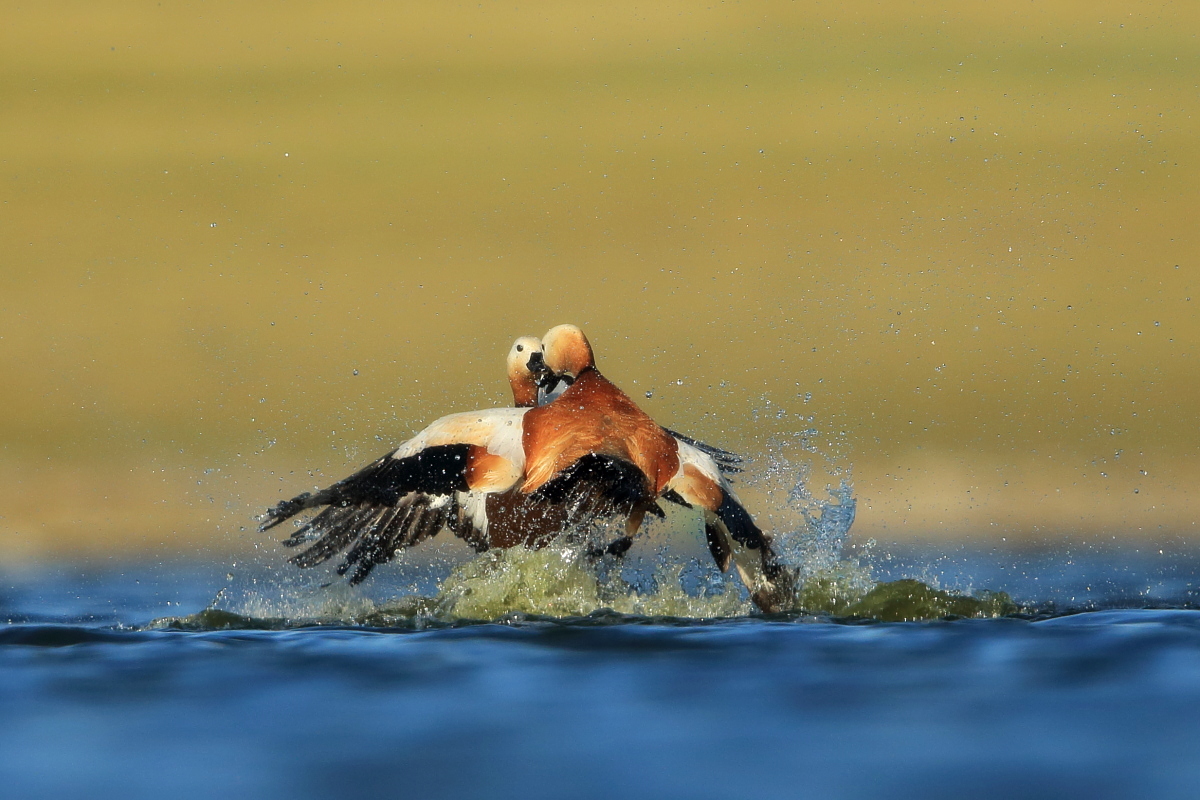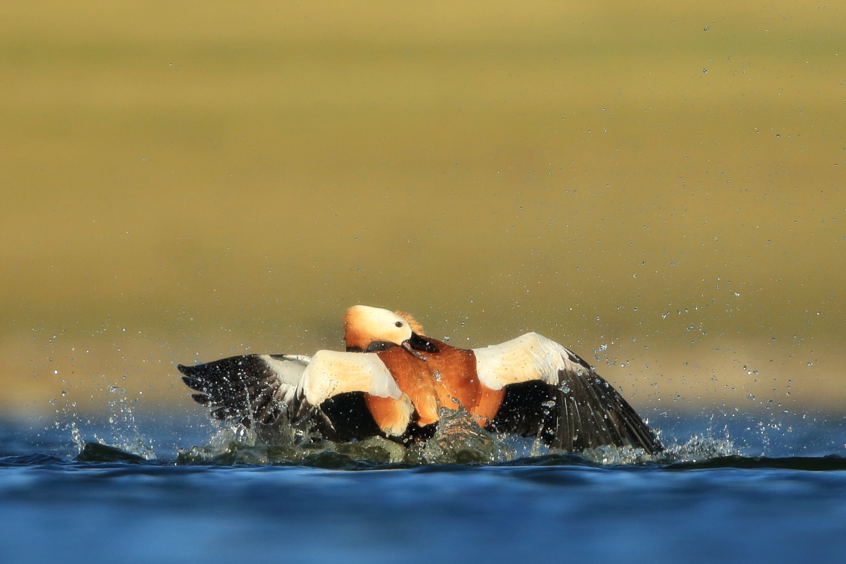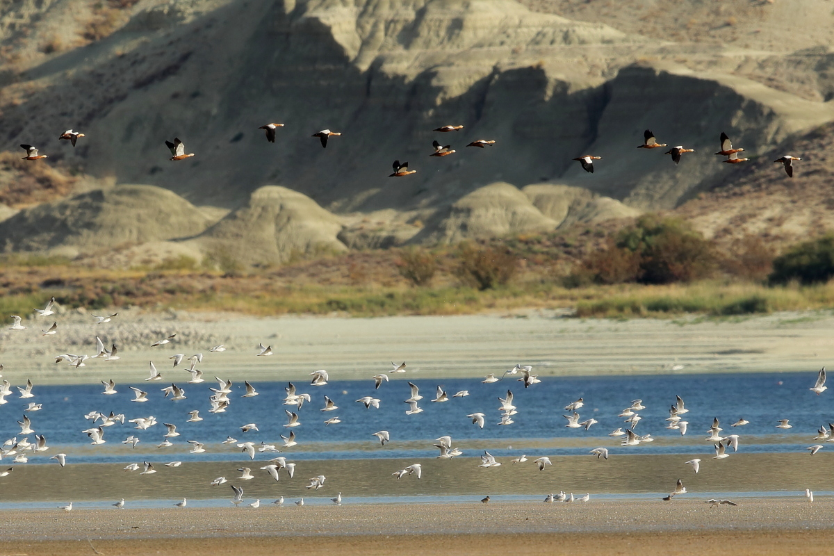 Another beautiful, amazing place in Turkey. Large lake located in the beautiful mountains of Turkey, and a thousand, maybe two thousands of ruddy shelducks on the shore of the lake. Dozens of gray herons, squacco herons, hundreds of cormorants, gulls, pied avocets and ubiquitous migrating bee-eaters. It was hardly possible not to hear the sound of flocks of bee-eaters every hour. Unfortunately they were flying so fast and chaotically that I was not able to take any picture. But let us back to ruddy shelducks. Not so long ago, on Fuerteventura I photographed them for the first time. How surprised I was when coming closer to the lake I could see on the shore thousands of waterfowl, including ruddy shelducks. I could not come closer, but I added a few pictures of the flocks flying against the beautiful mountains and creating an unforgettable scene.