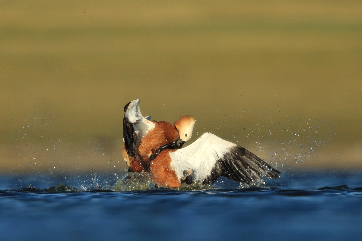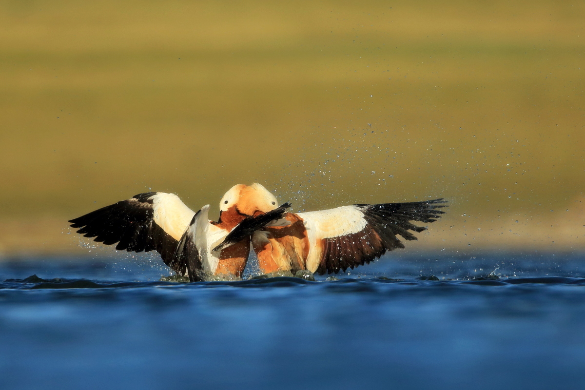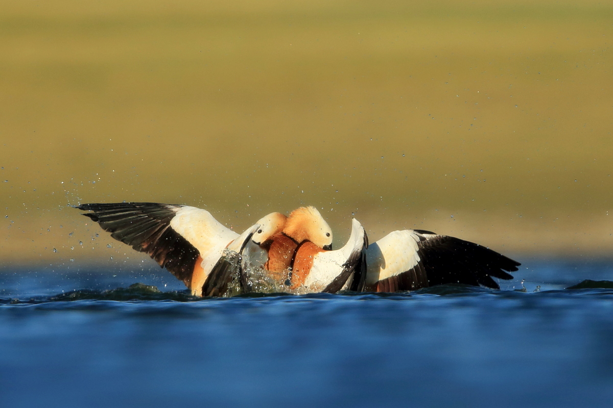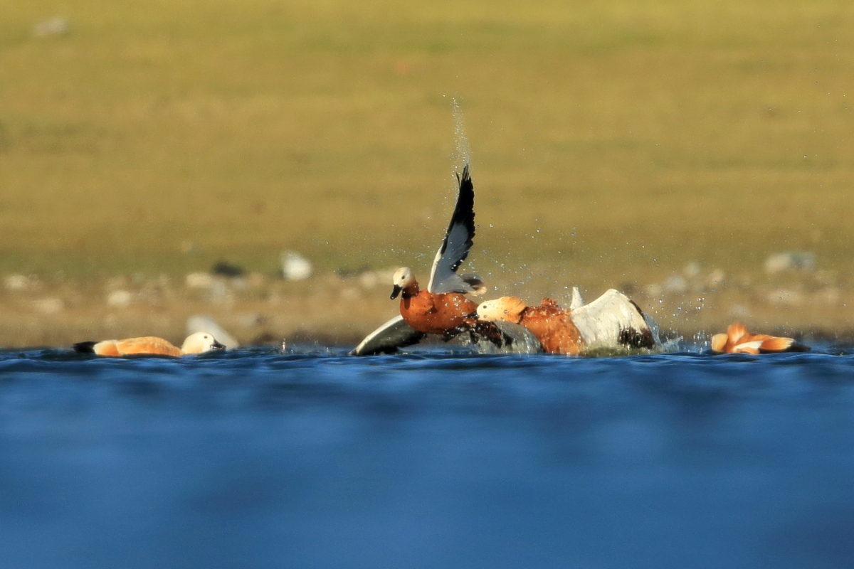 Another beautiful, amazing place in Turkey. Large lake located in the beautiful mountains of Turkey, and a thousand, maybe two thousands of ruddy shelducks on the shore of the lake. Dozens of gray herons, squacco herons, hundreds of cormorants, gulls, pied avocets and ubiquitous migrating bee-eaters. It was hardly possible not to hear the sound of flocks of bee-eaters every hour. Unfortunately they were flying so fast and chaotically that I was not able to take any picture. But let us back to ruddy shelducks. Not so long ago, on Fuerteventura I photographed them for the first time. How surprised I was when coming closer to the lake I could see on the shore thousands of waterfowl, including ruddy shelducks. I could not come closer, but I added a few pictures of the flocks flying against the beautiful mountains and creating an unforgettable scene.