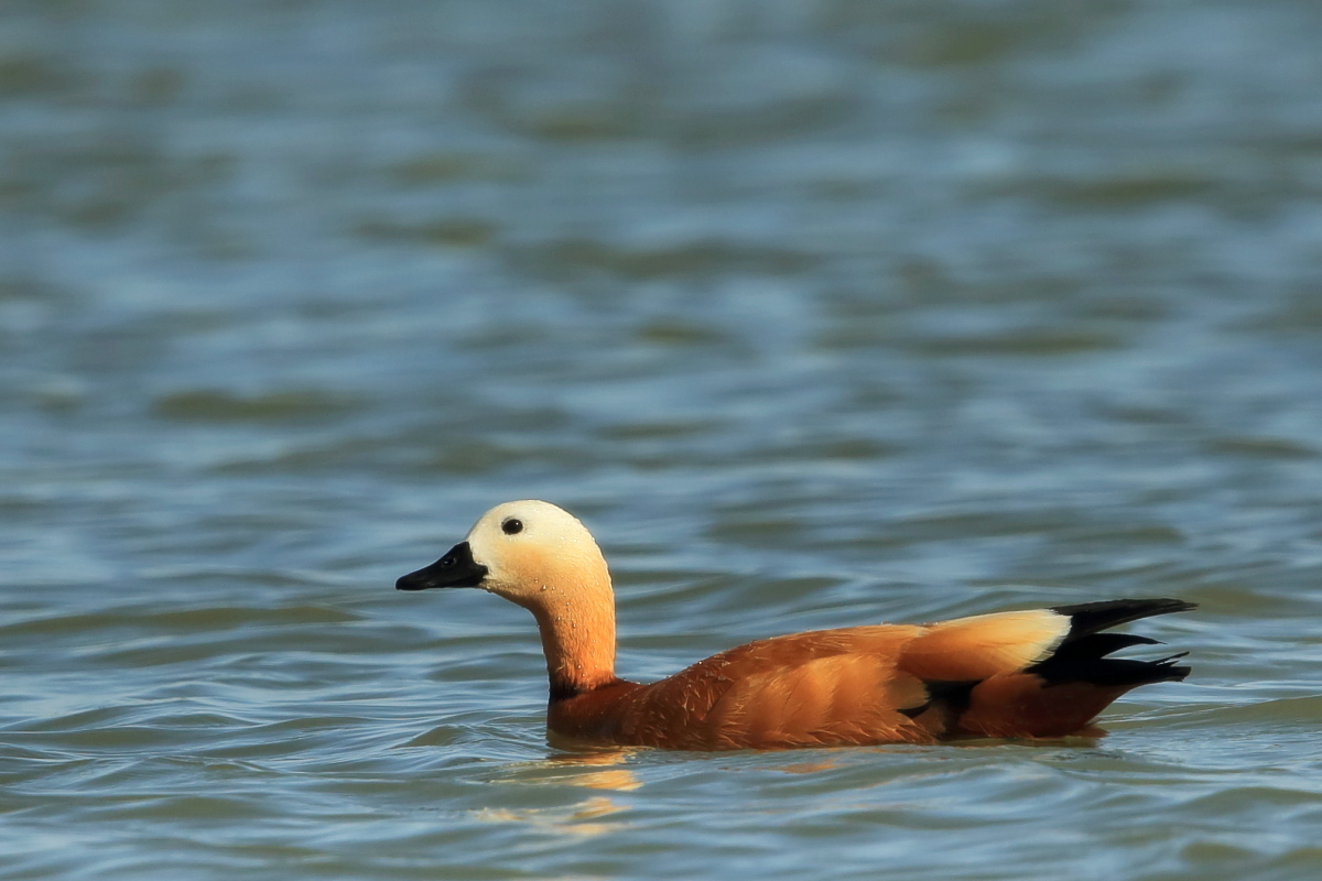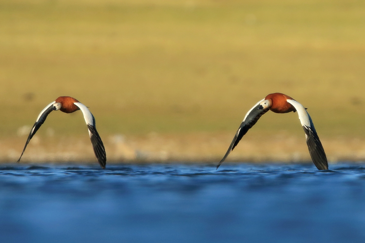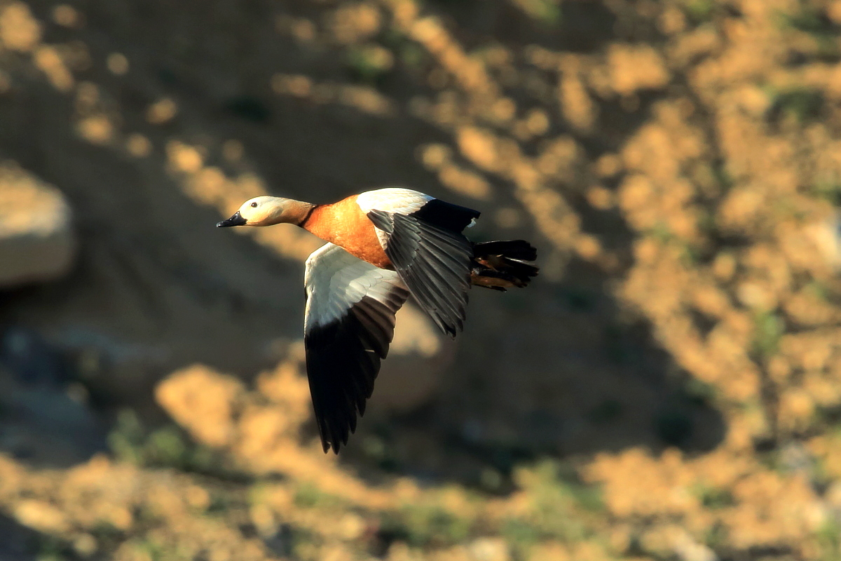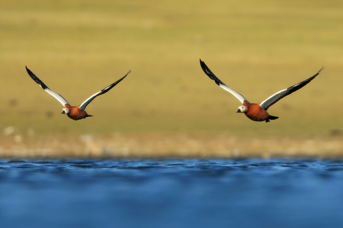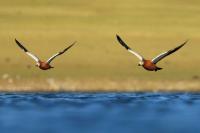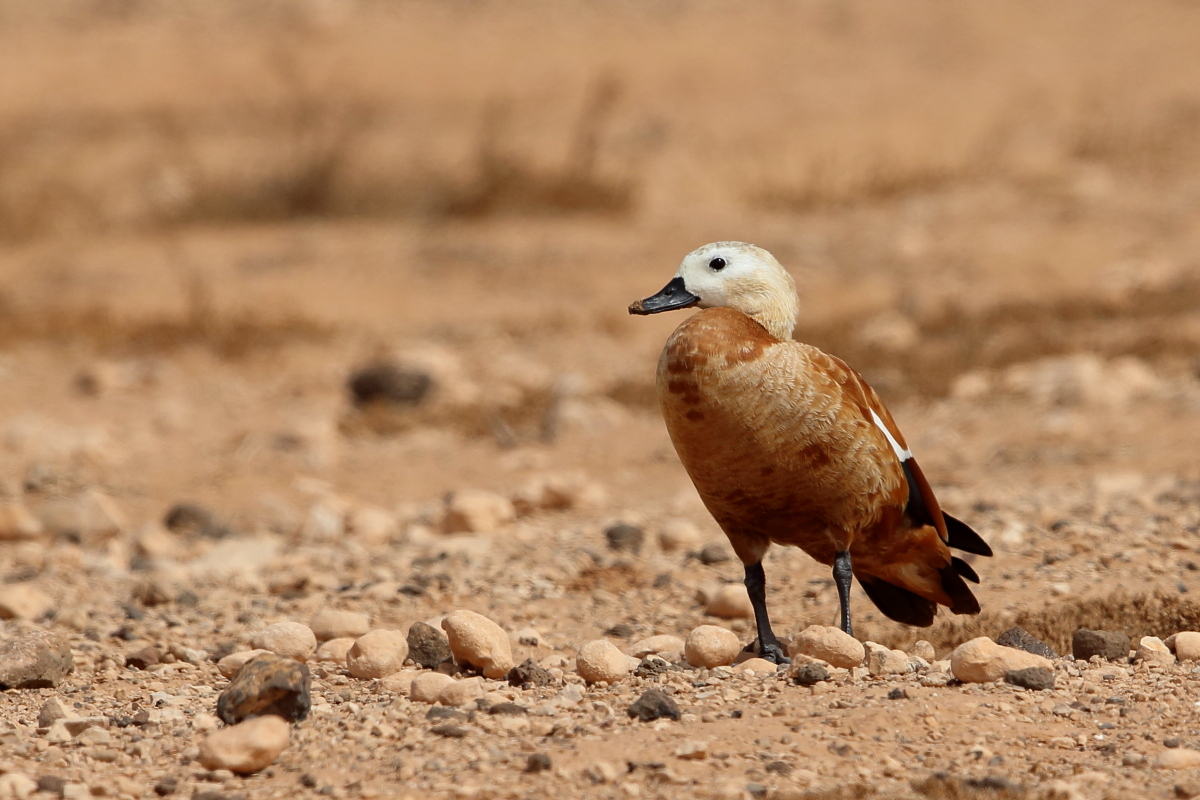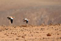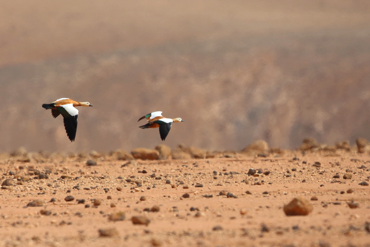 It was worth flying to Fuerteventura to see ducks - ruddy shelducks, there on the rocky, brown desert. A shelducks pair allowed me to take a few photos, but any attempt to reduce the distance always ended with their departure. Always, as I tried three times to capture them in the best possible way. Ruddy shelduck’s weight does not exceed 1.6 kilogram and a wingspan is less than 1.5 meter. Pictures showing them in flight with the desert landscape in the background, are probably the most interesting and most representative of the species in my gallery. We also found a large group of shelducks beside waters, but the distance was so long that only a documentary photo could be taken.