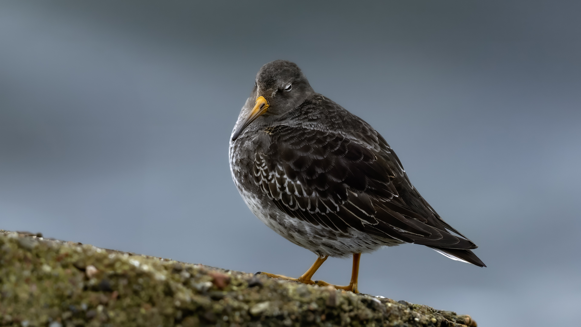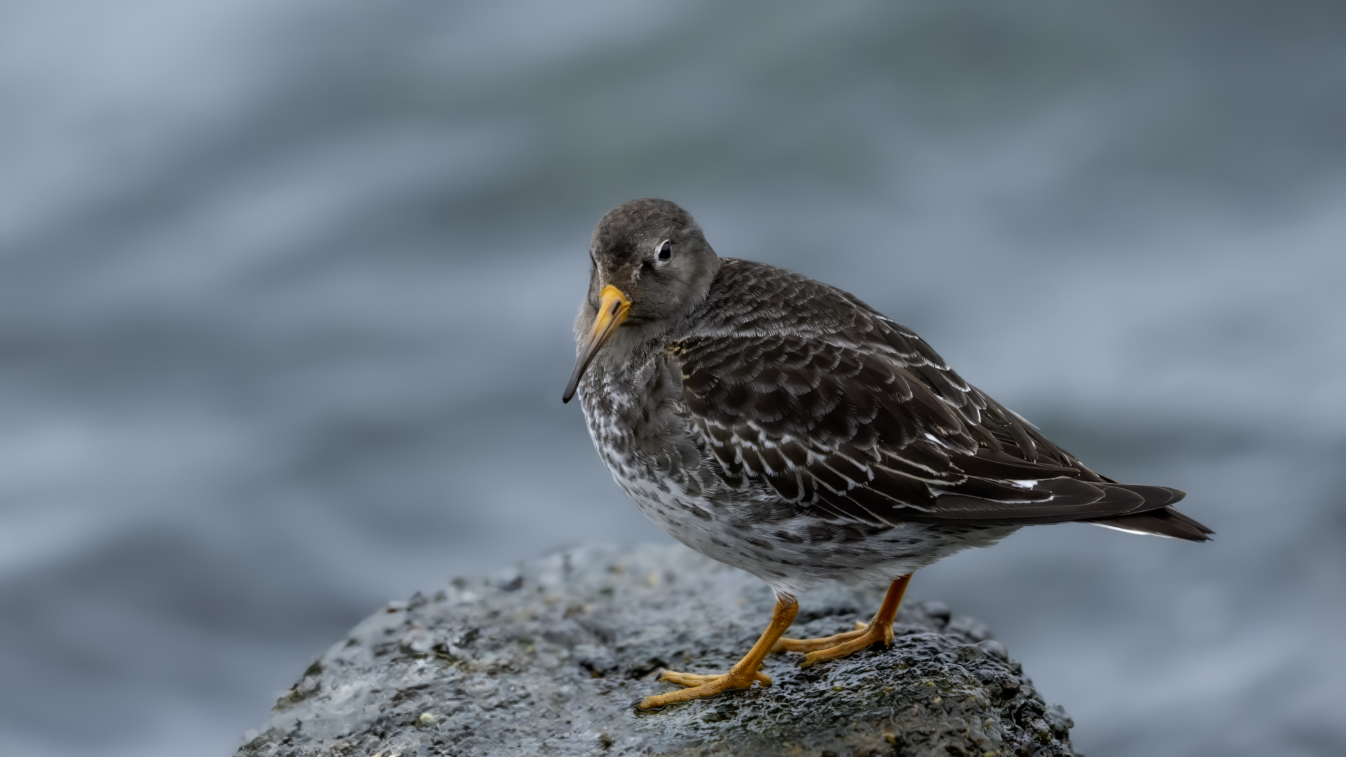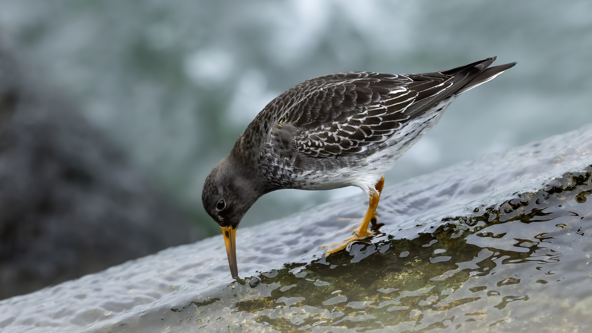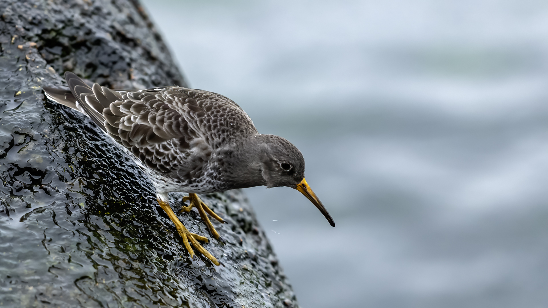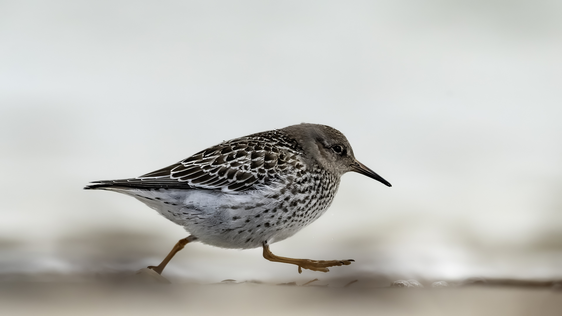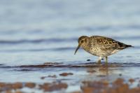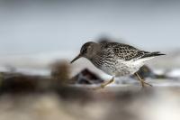 Another winter expedition in the Bay of Puck area resulted in creating the gallery of new species, including the Purple Sandpiper. Was it really winter expedition? Although there are a few days left until the New Year comes, but the temperature was above zero all the time, what was quite peculiar for this time of year and more typical for spring. The wind was strong, so strong that it was better not to leave alone a tripod with a telephoto lens. Walking towards the breakwater on the Hel we met a soul-mate - ornithologist with an observation telescope. He, with a smile on his face, immediately informed us that on the breakwater he had spotted two purple sandpipers. The distance was too long to take satisfactory photos, but I have already created the first documentary image. We went to the breakwater and much to our delight sandpipers did not care about our presence. By reducing the distance from several tens to 5-8 meters the quality of pictures changed radically. Sandpipers feed on tiny invertebrates that live at the shore or just on concrete breakwaters. I wish I could take the pictures in this first scene, because the effect of colorful sand particles would intensify aesthetic impression even much more (see the sanderling’s gallery). But I do not want to be fretful, as purple sandpipers are among the birds which come flying to our country in very small number. They live in northern Europe, the coast of Greenland and North America, and northern Siberia. Purple sandpiper’s weight is about 100 grams, with a wingspan of about 40 centimeters. They penetrated very carefully the recesses of the breakwater fortifications, in search of food. Every now and then they jumped from one piece of the bank fortifications to another. Unfortunately, it was not always convenient to take pictures. I managed to take several interesting shots, especially when waves hit on the breakwater and splashed water around sandpipers. Taking into account that this is an opening gallery and that this species occurs so rarely in Poland, the result, at least to me, is very satisfying. It also should be said that this is already the fifth species of sandpiper published in my gallery. There are so many photos that they probably reflect the nature of environment in which this species occurs and its behavior, what is always important to me when animals are presented. Ok, let’s stop talking, I invite you to the gallery.
