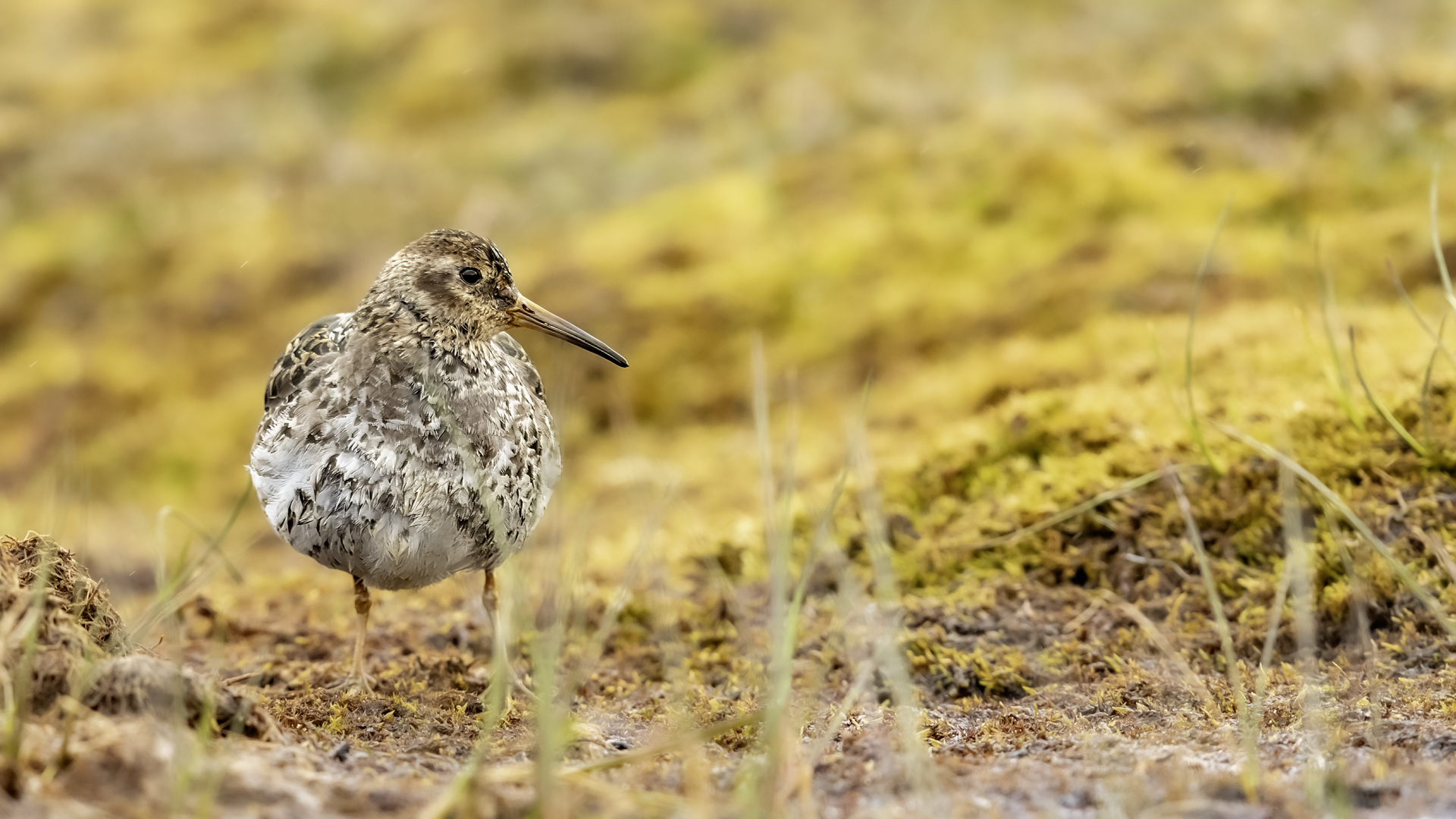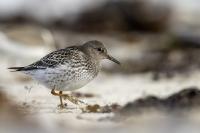 Apart from the dunlin it is the most common sandpiper in Svalbard. It was a big surprise for me, because I hoped that among other birds feeding on the seashore there would be other species in such a place - and there we had nothing more! When on an uninhabited island we were looking for the thick-billed murre colony, a purple sandpiper took off from beneath our feet. The bird did not move too far, it ruffled up its feathers and moved slowly as if it pretended to be wounded. We already knew why it was like that. We frightened the bird away from the nest where a young purple sandpiper had just born. It was yet in an eggshell. Unfortunately, there were no photos from this watching, because it was only a few degrees above zero and it was raining. We quickly moved away, and then the caring parent returned to the nest as soon as we departed for several meters.