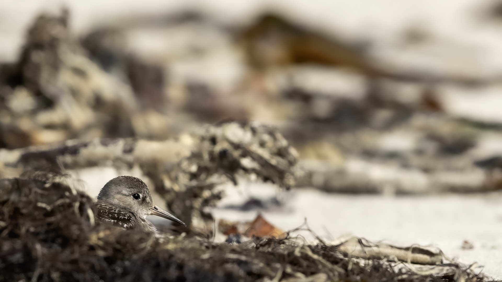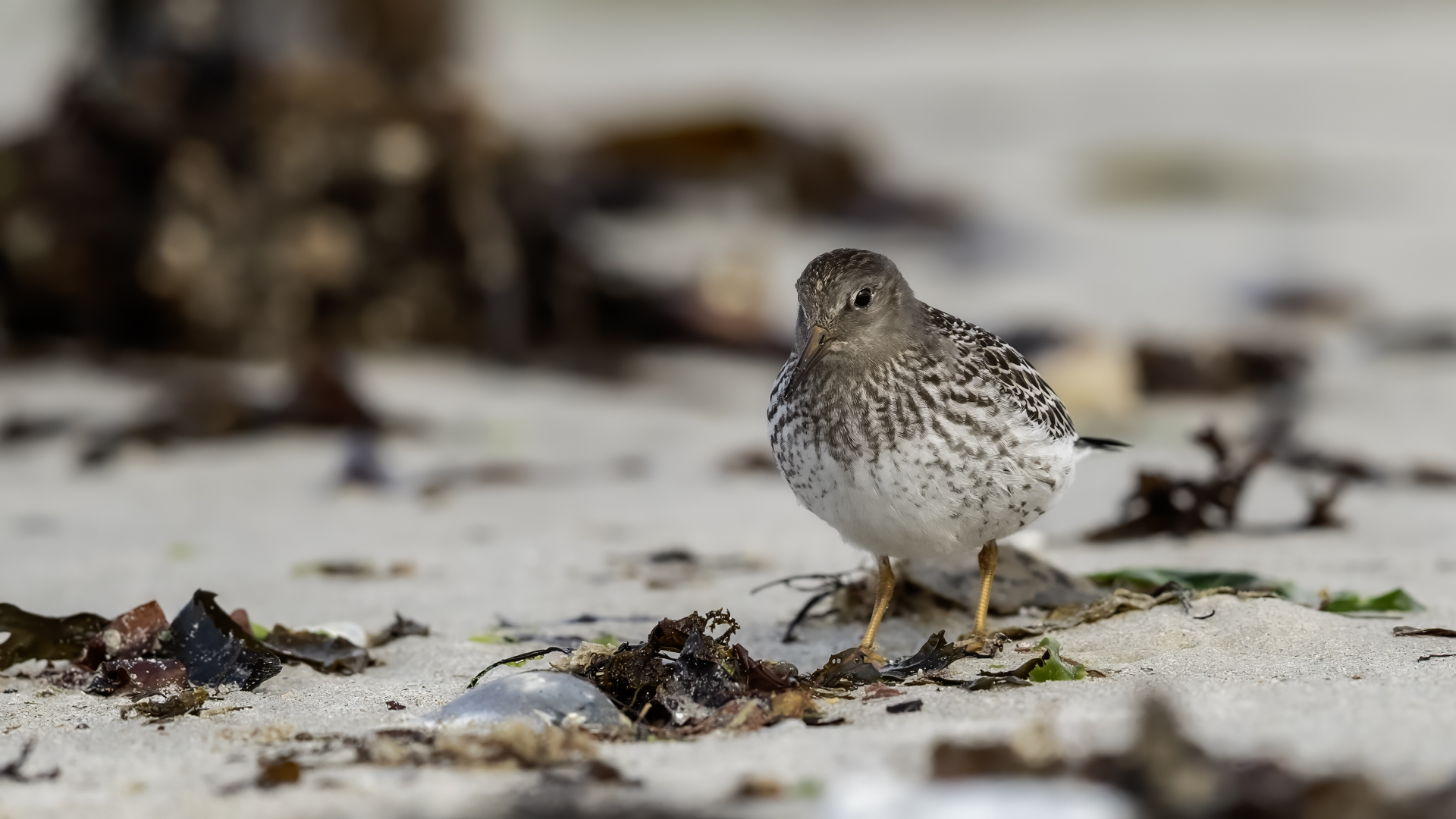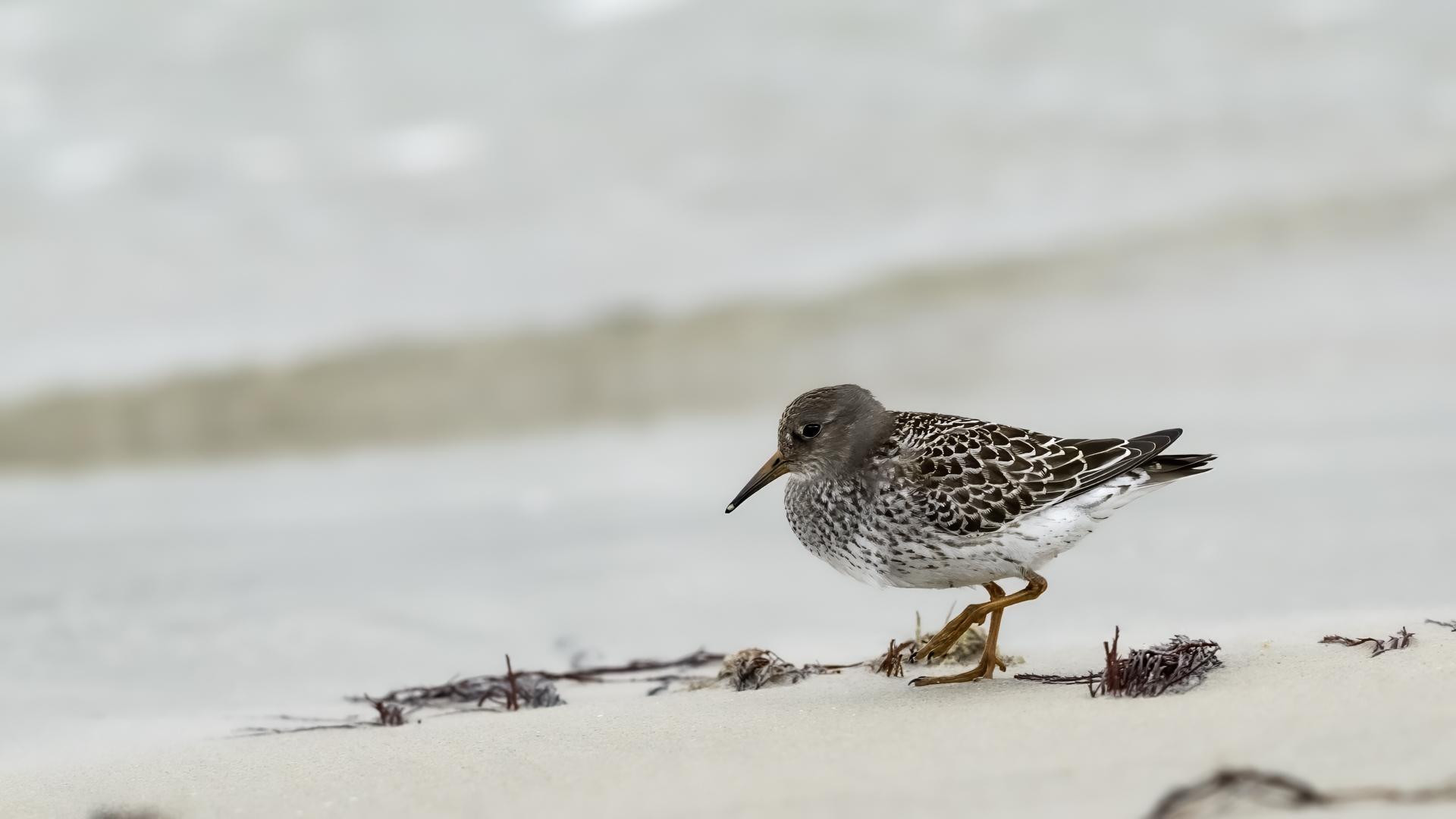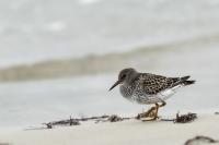 When I was at the seaside, on my way to a place where I was going to photograph seals, I stopped for a moment and took some photos of the purple sandpiper and the common ringed plover feeding among all those bits and pieces which the sea had thrown out to the beach. That was my only encounter with these birds in Iceland. The photos in the startup gallery of this species show birds sitting on a breakwater, so the pictures taken later, on a colorful, sandy beach introduce a new, interesting variety to the previous gallery.
