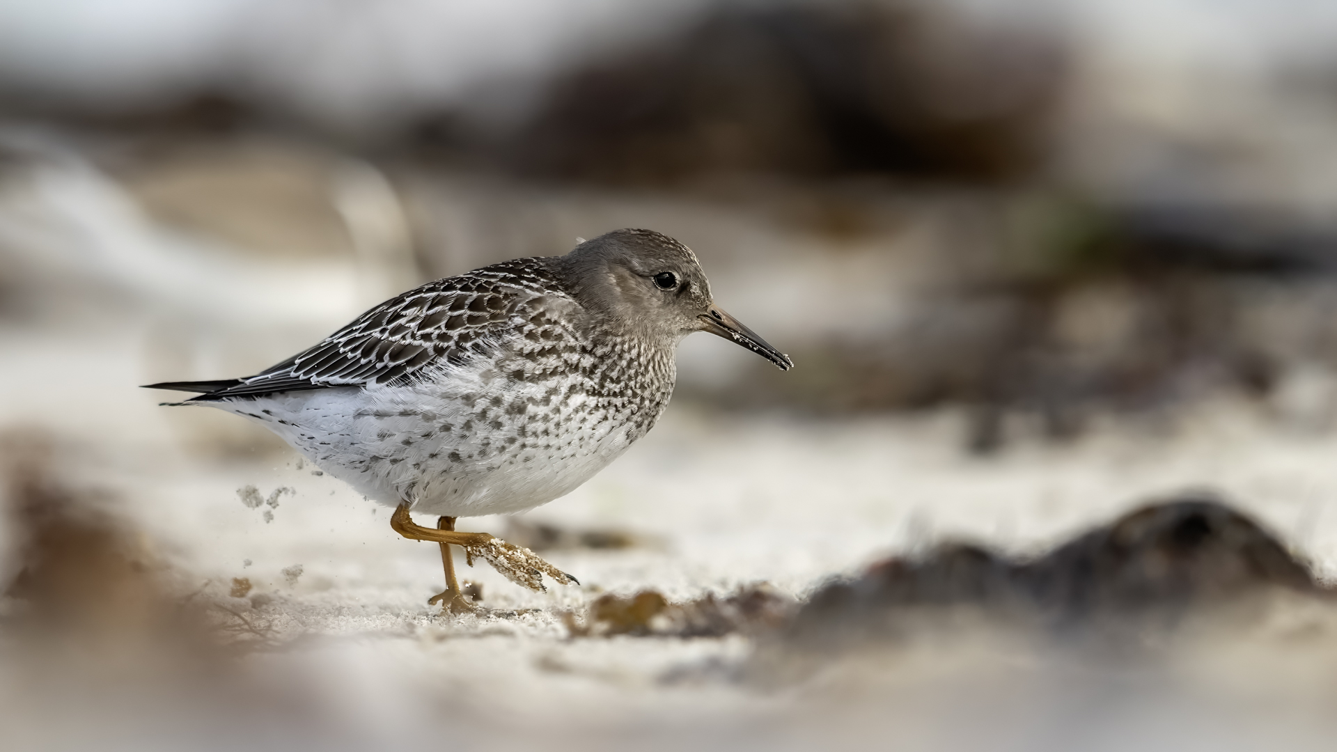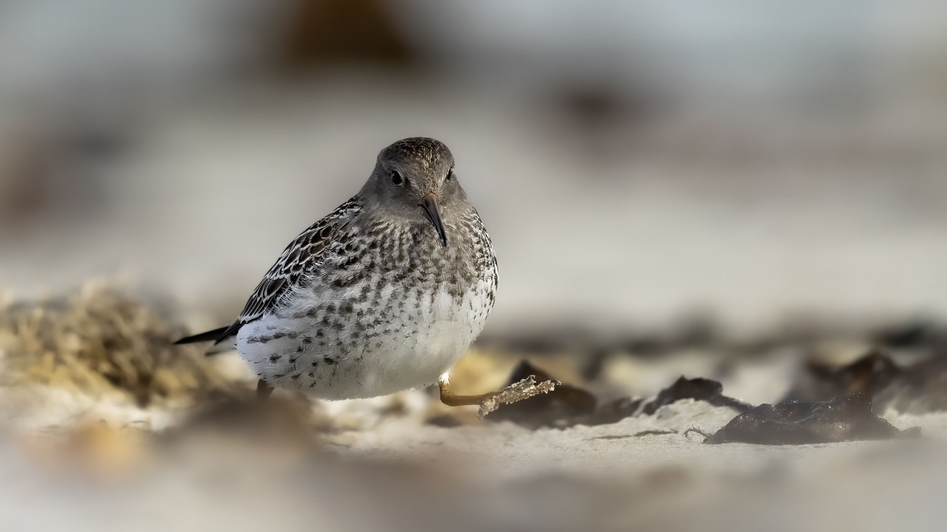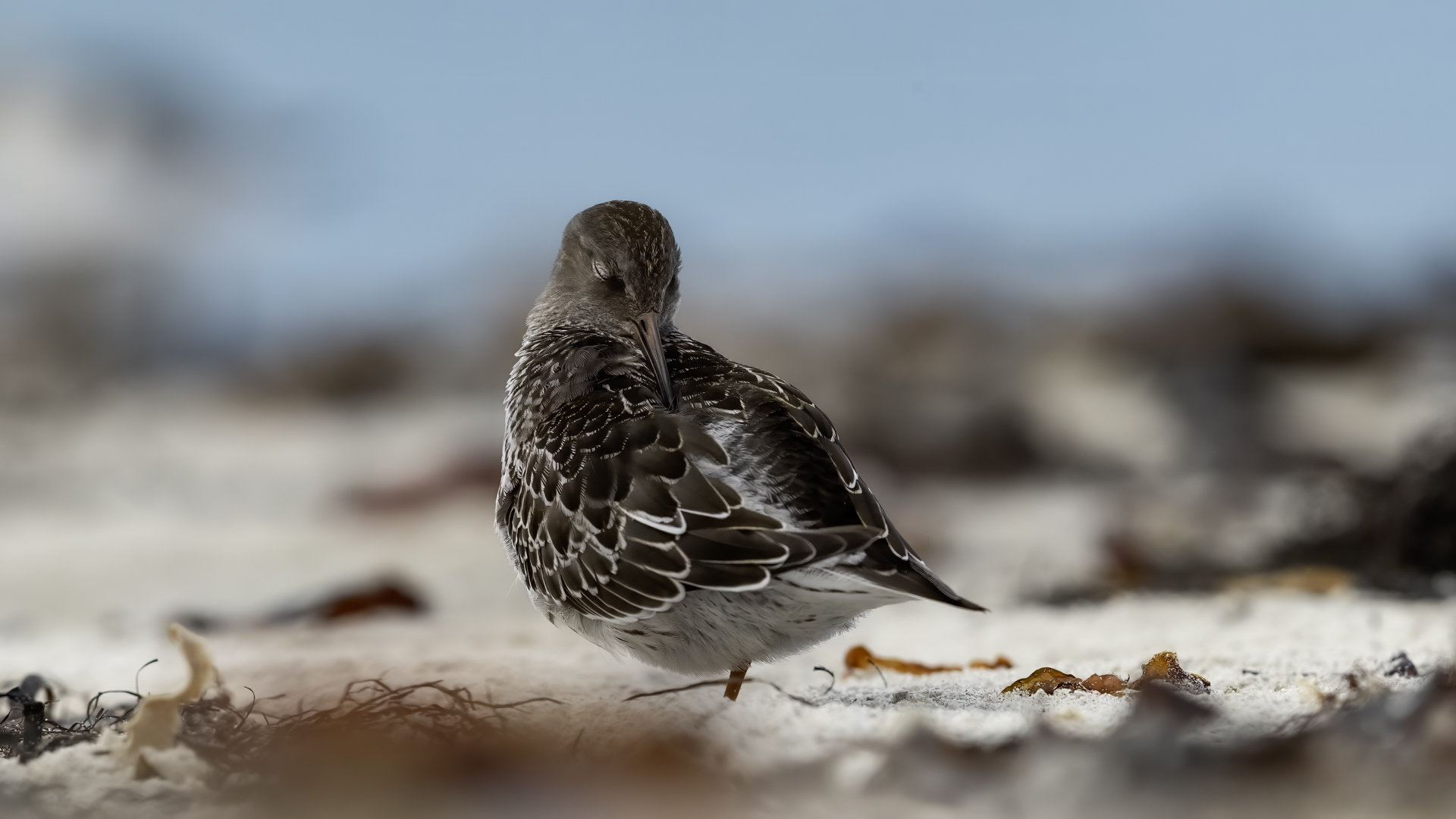 When I was at the seaside, on my way to a place where I was going to photograph seals, I stopped for a moment and took some photos of the purple sandpiper and the common ringed plover feeding among all those bits and pieces which the sea had thrown out to the beach. That was my only encounter with these birds in Iceland. The photos in the startup gallery of this species show birds sitting on a breakwater, so the pictures taken later, on a colorful, sandy beach introduce a new, interesting variety to the previous gallery.