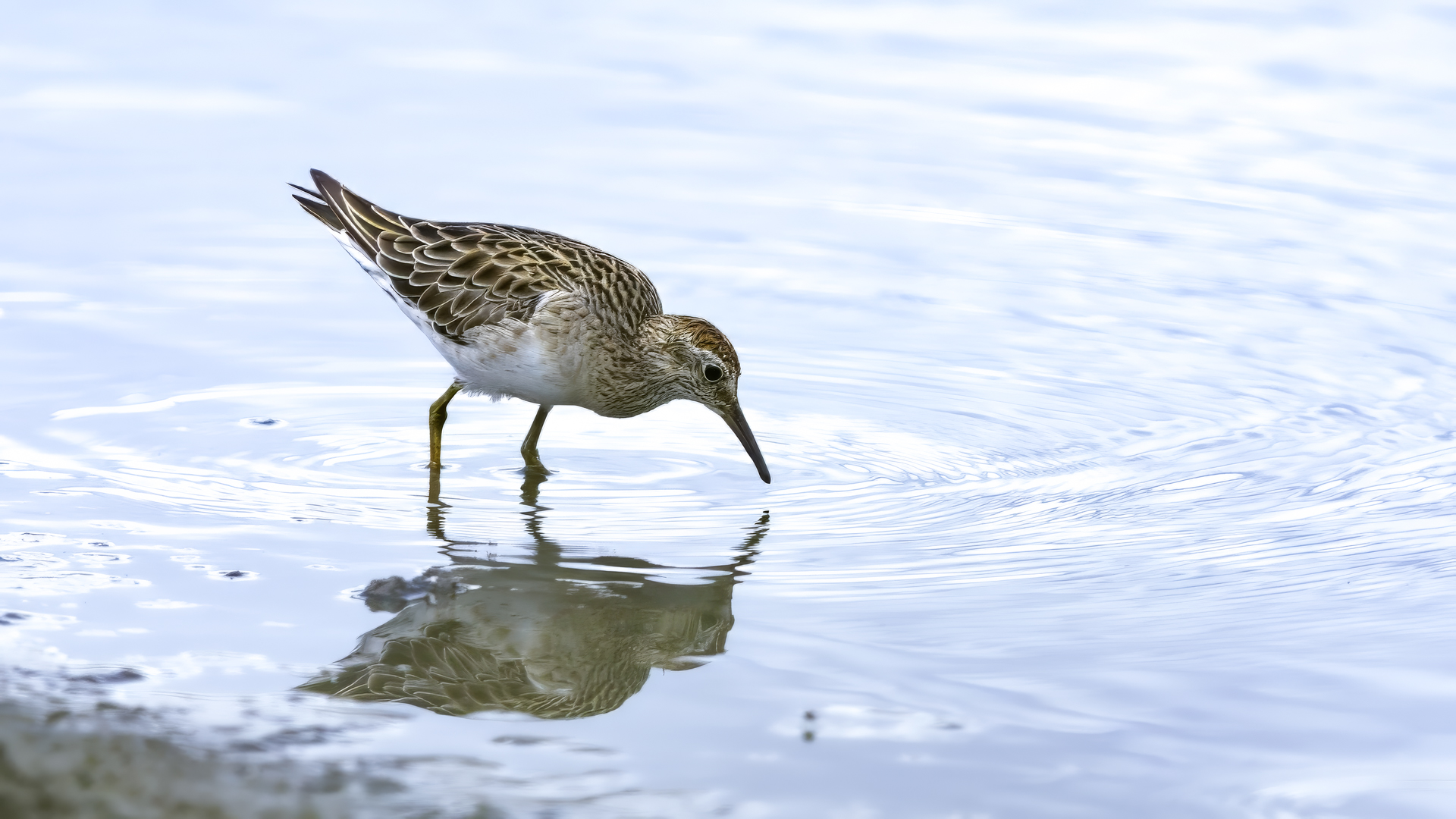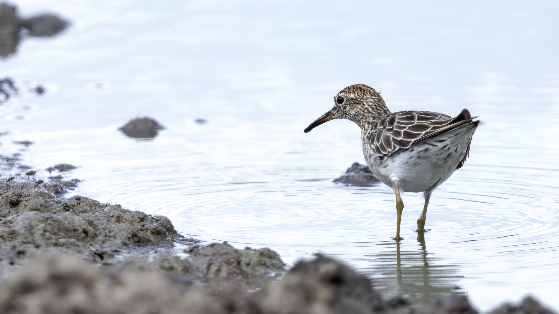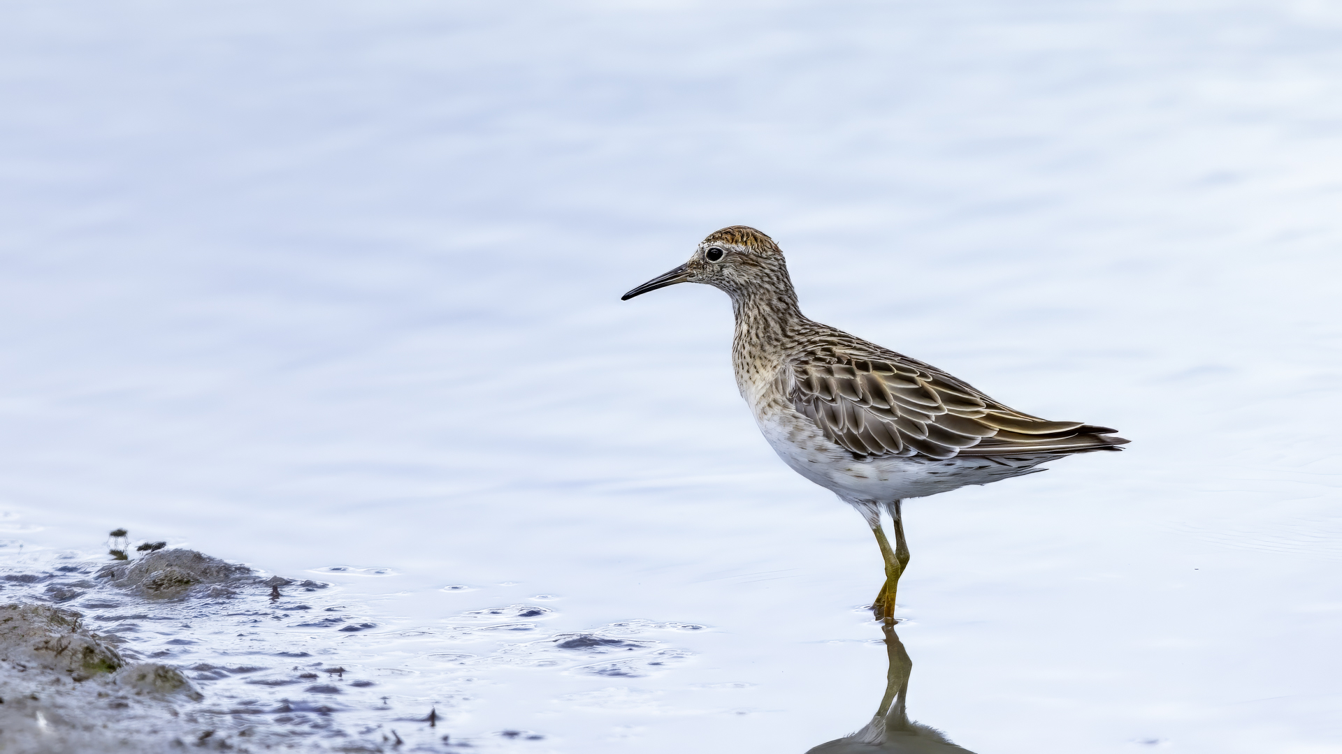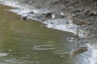 Australia surprised me many times with the wealth of fauna and flora or broad areas so that it makes me feel  I have to come back there. Meeting with the Sharp-tailed sandpiper was another nice surprise. When we were driving almost the whole day through the bush we passed at most some small ponds, lakes, but more often we saw kangaroos and parrots than a representative of waterfowl. And suddenly came out a large lake where stilts and sandpipers were feeding on the shore, and in the distance we could see another flocks of waterfowl. So far all of my sandpipers I photographed on the Baltic Sea while they were migrating. There in Australia, in February, in the middle of hot summer, at a temperature over 30 degrees on the lake I was watching sandpipers, which, as it happened in Australia, allowed me to take a few photos with no problem. Only the desire to meet other species caused the gallery presented here is quite modest.