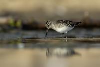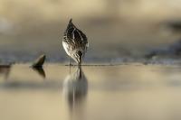 The jaunt for the Eurasian curlew ended in encountering a new species – the broad-billed sandpiper. Unfortunately the place had been prepared for the Eurasian curlew, so I did not pay attention to some little plants growing just on the lake shore. They weren’t an obstacle in photographing the Eurasian curlew, but for the broad-billed sandpiper it would make much difference. The broad-billed sandpiper is a bit bigger than our sparrow. It weighs about 50 gram and has a wingspan of approximately 30 centimeters. So, even some tiny plants were an obstacle in photographing, however I managed to take a few pictures in order to create the presented gallery.