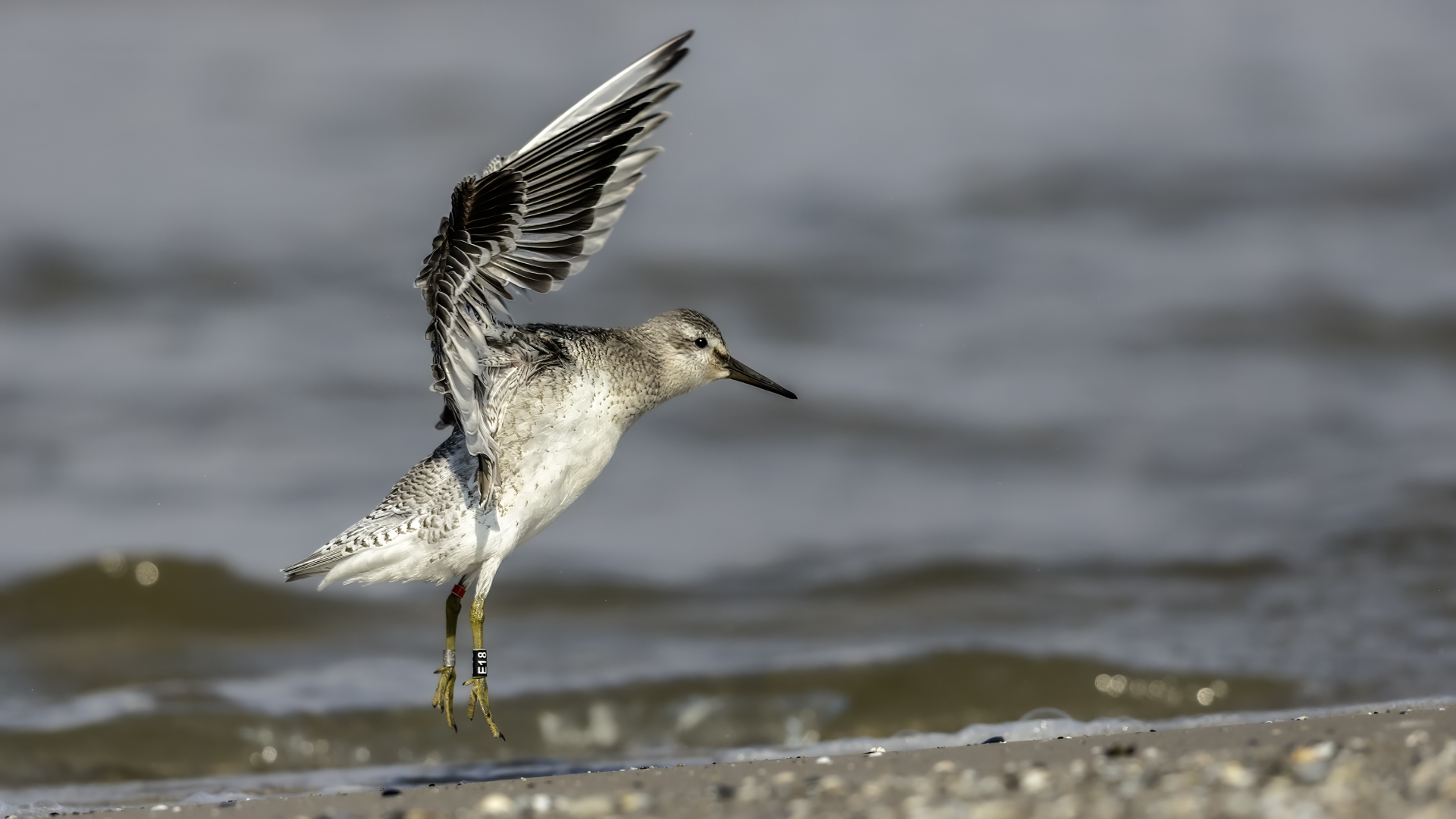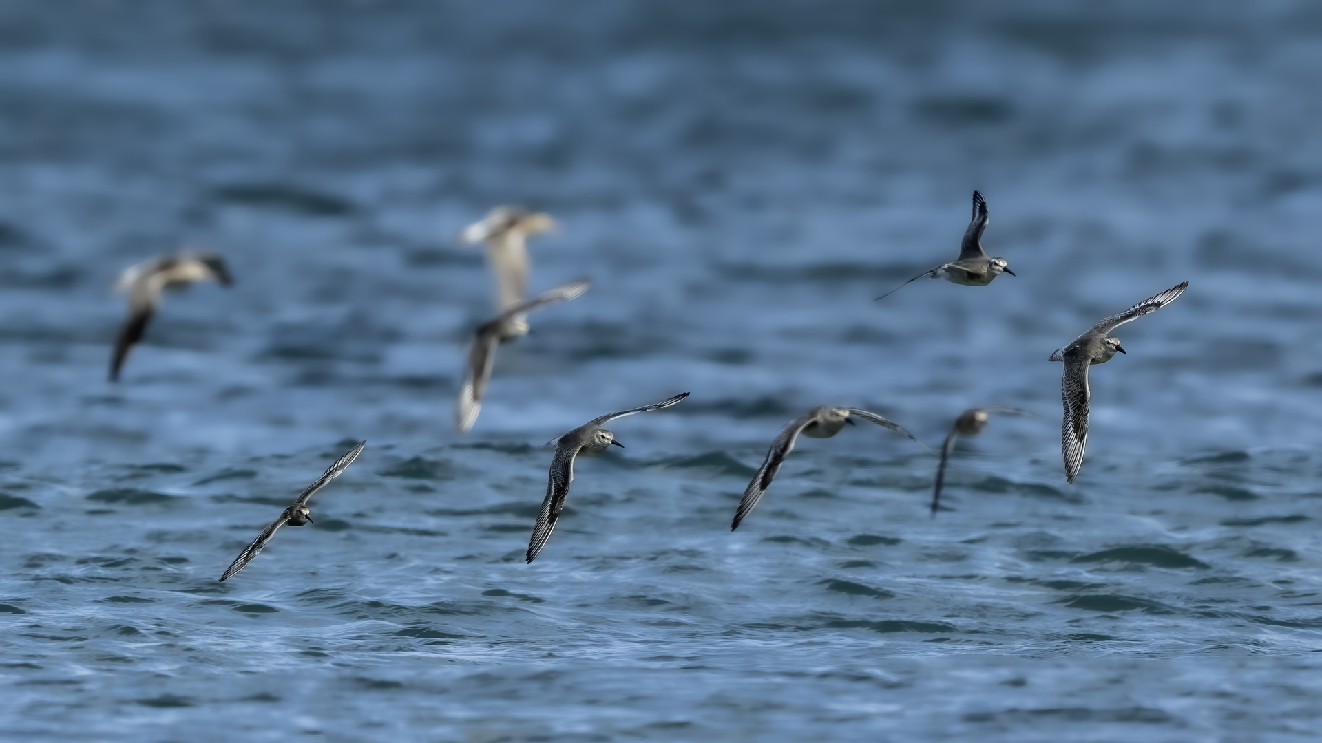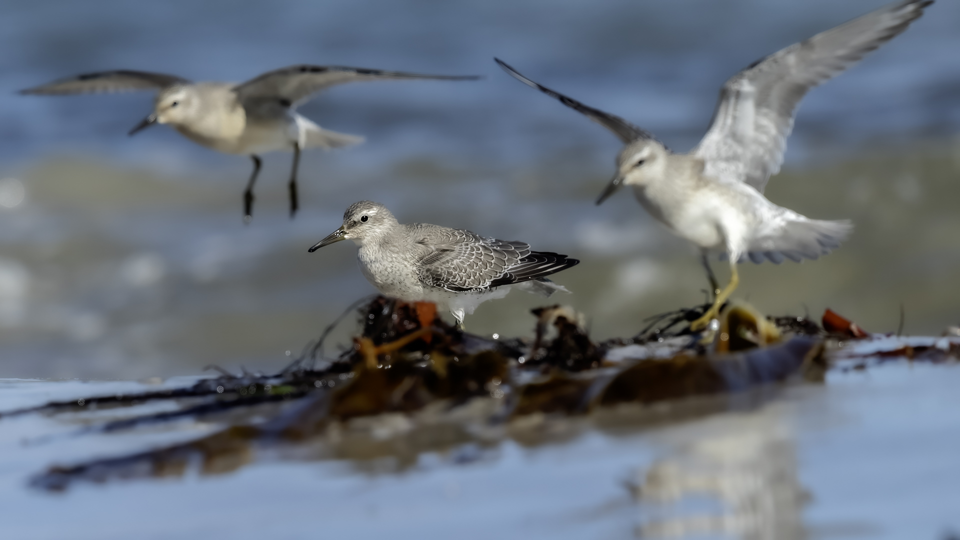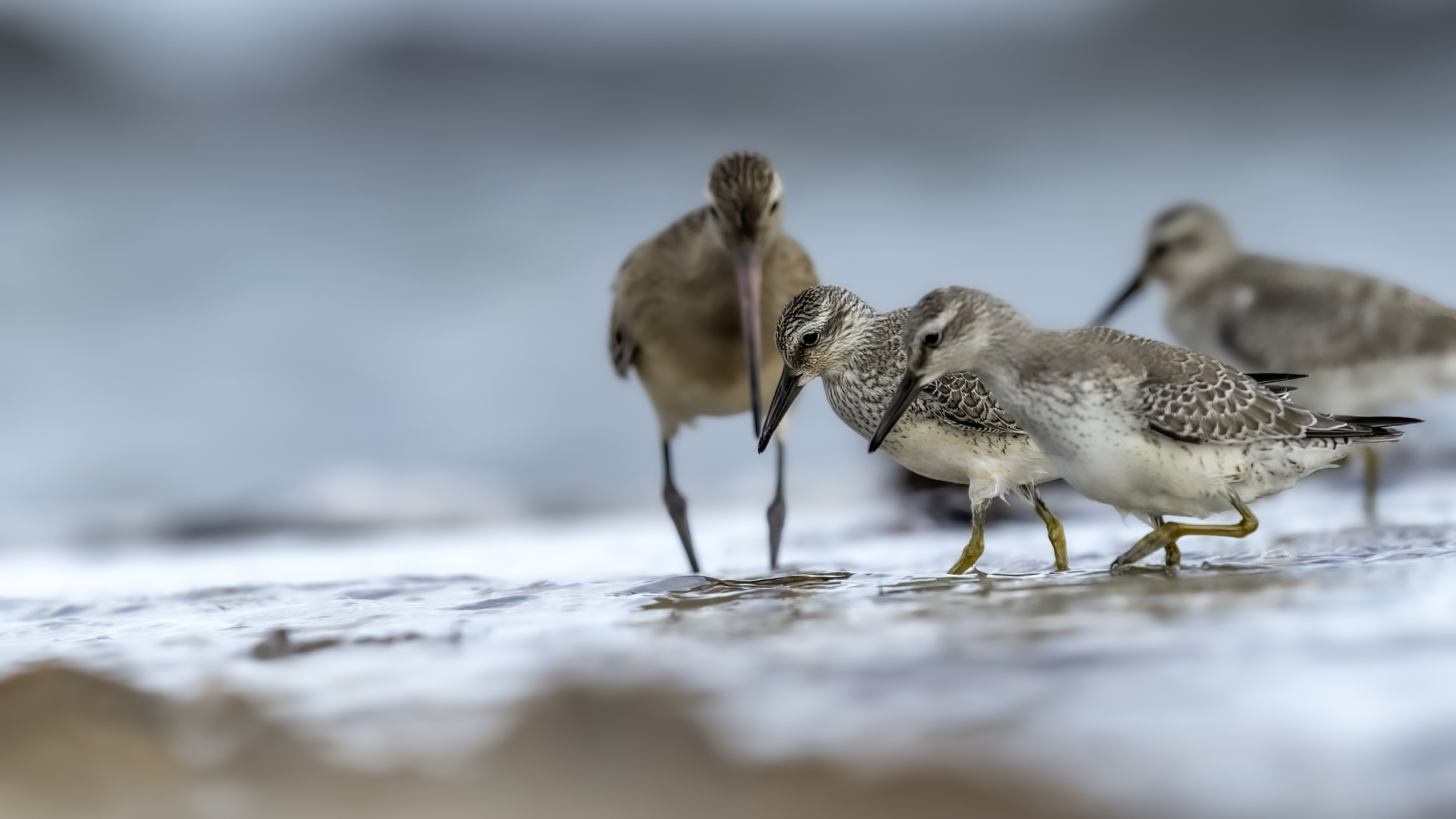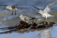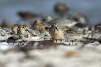 I have added some dynamic pictures of the red knot. Birds preying on the seashore took flight from time to time, only to return to the same feeding place after a while. Thanks to this, dynamic shots of sanderlings, bar- tailed dowits and red knots were created.