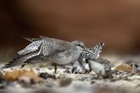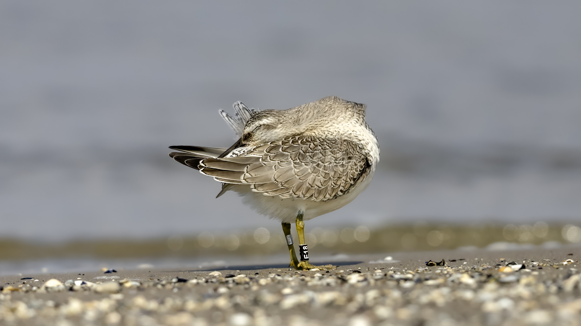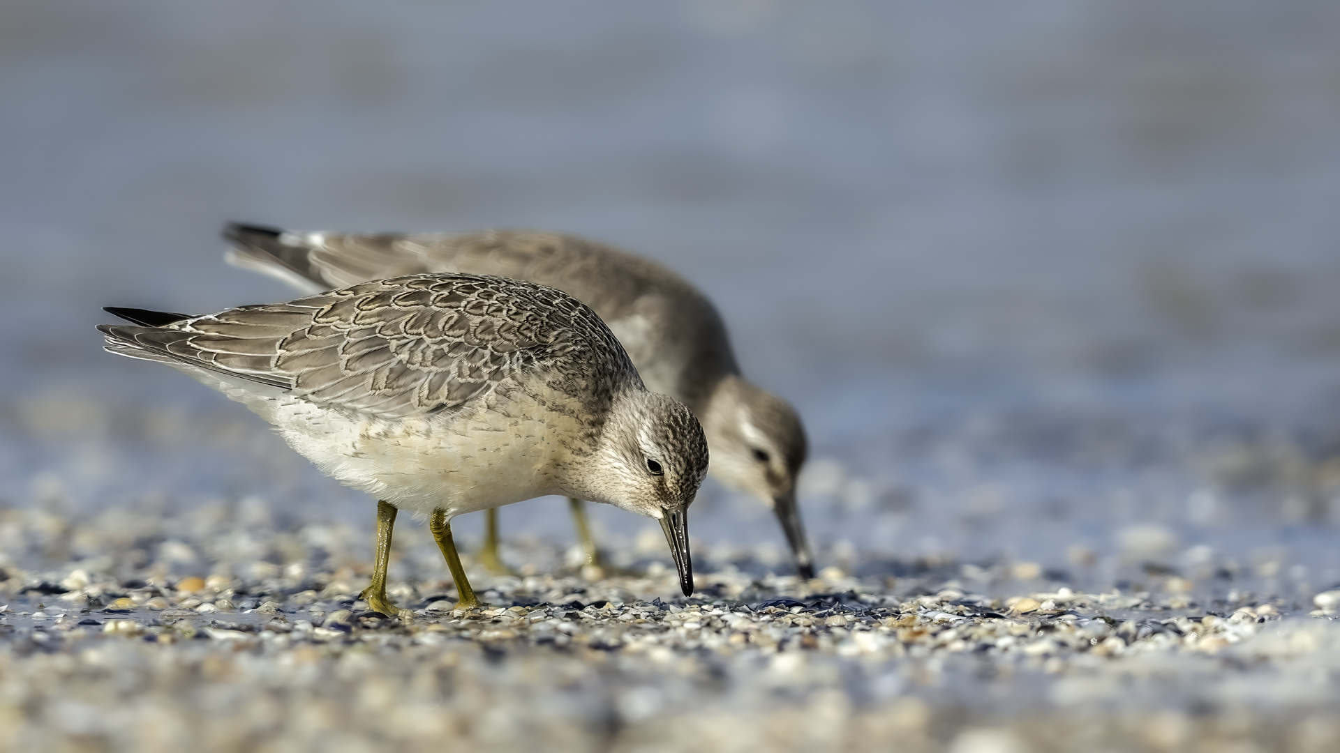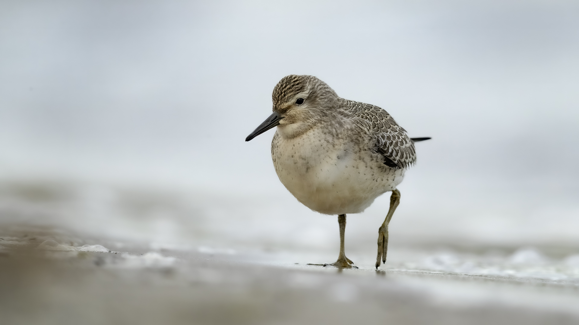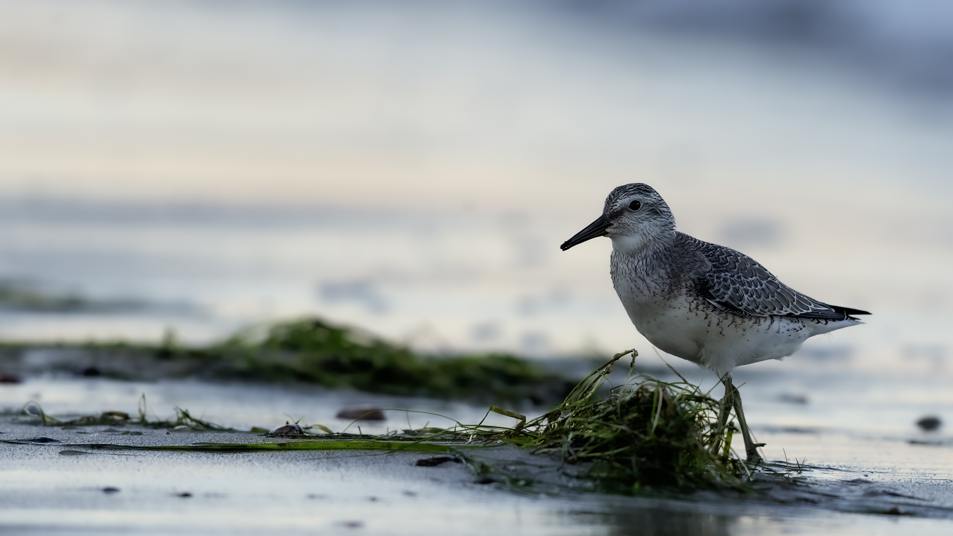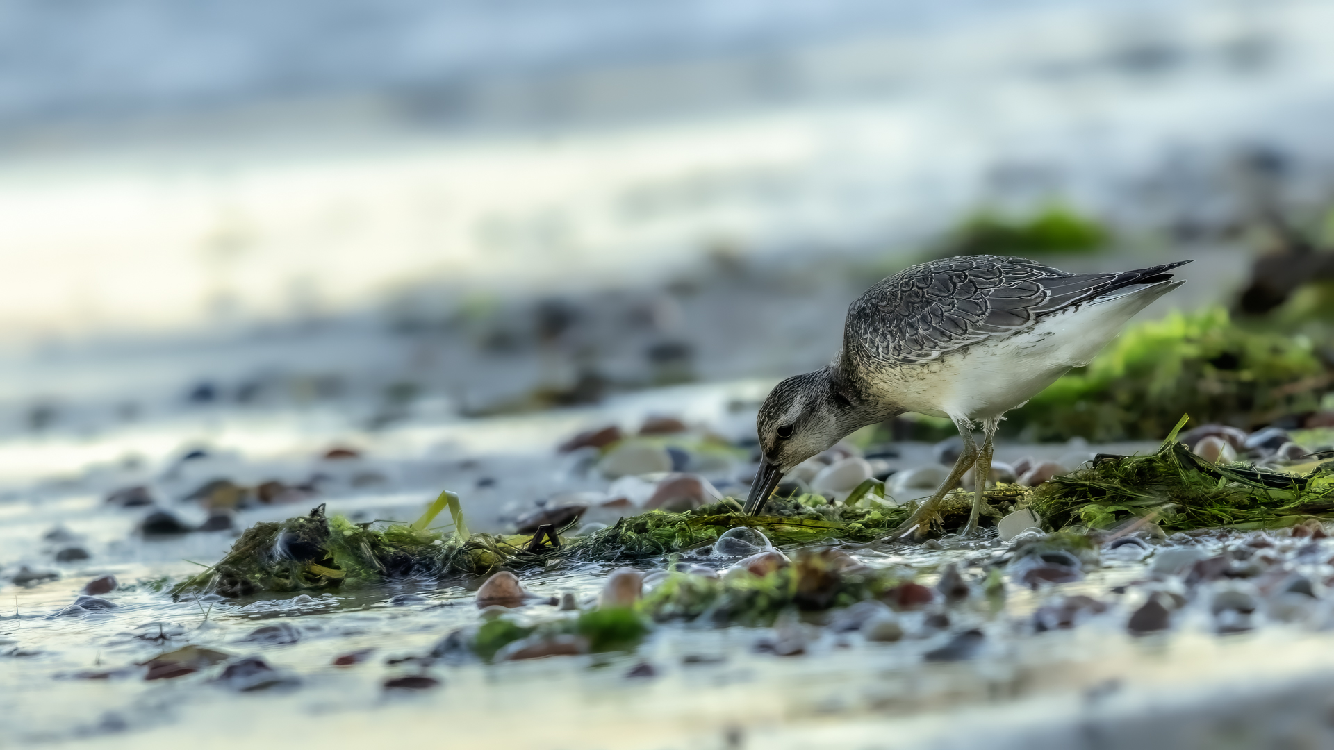 I have added some dynamic pictures of the red knot. Birds preying on the seashore took flight from time to time, only to return to the same feeding place after a while. Thanks to this, dynamic shots of sanderlings, bar- tailed dowits and red knots were created.
