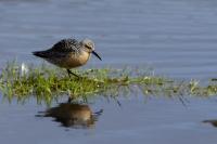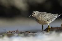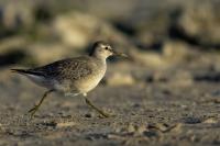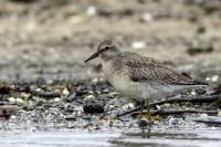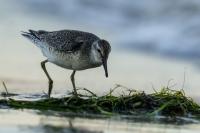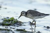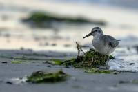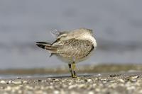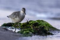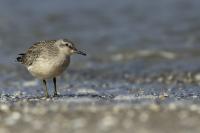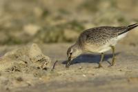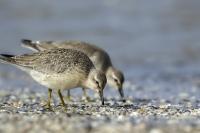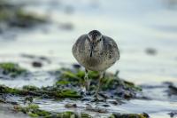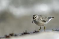 I admit that when I was getting up at 5 am in August in Swinoujście to go to the seaside with the camera I was quite skeptical about what I could photograph. The holiday season in a place like that means people on the beach practically around the clock. But without trying I will have no pictures for sure. When coming to the beach I could confess my fears proved correct, even so early you could count a dozen people. A novelty for me was that when I slowly approached closer to the plants thrown out of sea during the night I could see a cluster of tiny birds feed on the leftovers. It was surprising that they accept people walking by the sea (within few meters). Annoying thing, however, was that If I had not been there other people, particularly some older women would pass without noticing feeding birds. But if they are interesting for someone to photograph them, then they are worth taking a look at, very carefully indeed. Women passed treating me as if I were invisible and came up closer and closer, so that scared off everything that could pick up the flight. Despite my respect for the elderly, I cannot understand why they behaved like that and I do not know if it was an ordinary carelessness or malice. Anyway it wasn’t nice of them. Fortunately, the birds returned, but because of the growing number of people on the beach there were fewer and fewer birds. After 9 o’clock it was hardly anything to photograph. But never mind, the outdoors session was successful. Birds let me approach close enough to take some good photos that I could publish in the gallery. The lighting conditions at the rising sun were perfect. I was fully satisfied because of the fact that I was able to photograph the new species -dunlin, red knot, turnstone and ringed plover. Not only the new species but also of a satisfactory quantity and quality. Too bad that the ringed plovers soon abandoned this place because of the walkers. It is a long time I have not not managed to take pictures of the representative of the genre, and they aren’t satisfactory either in quality or shots. This comment will be common for photos added to the gallery in August, during that session. There are several reasons. The most important fact is that the whole session lasted several hours when birds were continuously disturbed, and as a result I was waiting and waiting for them returning. In such conditions, it is difficult to tell stories about the natural behavior of the species. Just like with the sounds of birds. Although the microphone was turned on all the time but after listening you could only wring your hands, or better ears. There was recorded everything, apart from the sounds of birds. The sounds of the port, the ships, walkers’ conversations, dog barking ... It is a pity, even far from perfection sound but recorded on my own is better to listen in correlation with pictures of the species than downloaded from another source of sounds. Short description, sound, photos, it's almost a movie, complete report of communing with nature. My diary. But it is not a market. What and how we can capture is always a lottery. This time the effect of several hours’ activity, without camouflaging, couching was stunning. Welcome to my galleries: Dunlin, Red Knot, Ruddy Turnstone and Common Ringed Plover. The red knot, like the ruddy turnstone is seen in Poland during its migration. The red knot lives in North Asia and winters in North Africa. The weight of a red knot does not exceed 180 gram, with a wingspan not exceeding 50 cm.