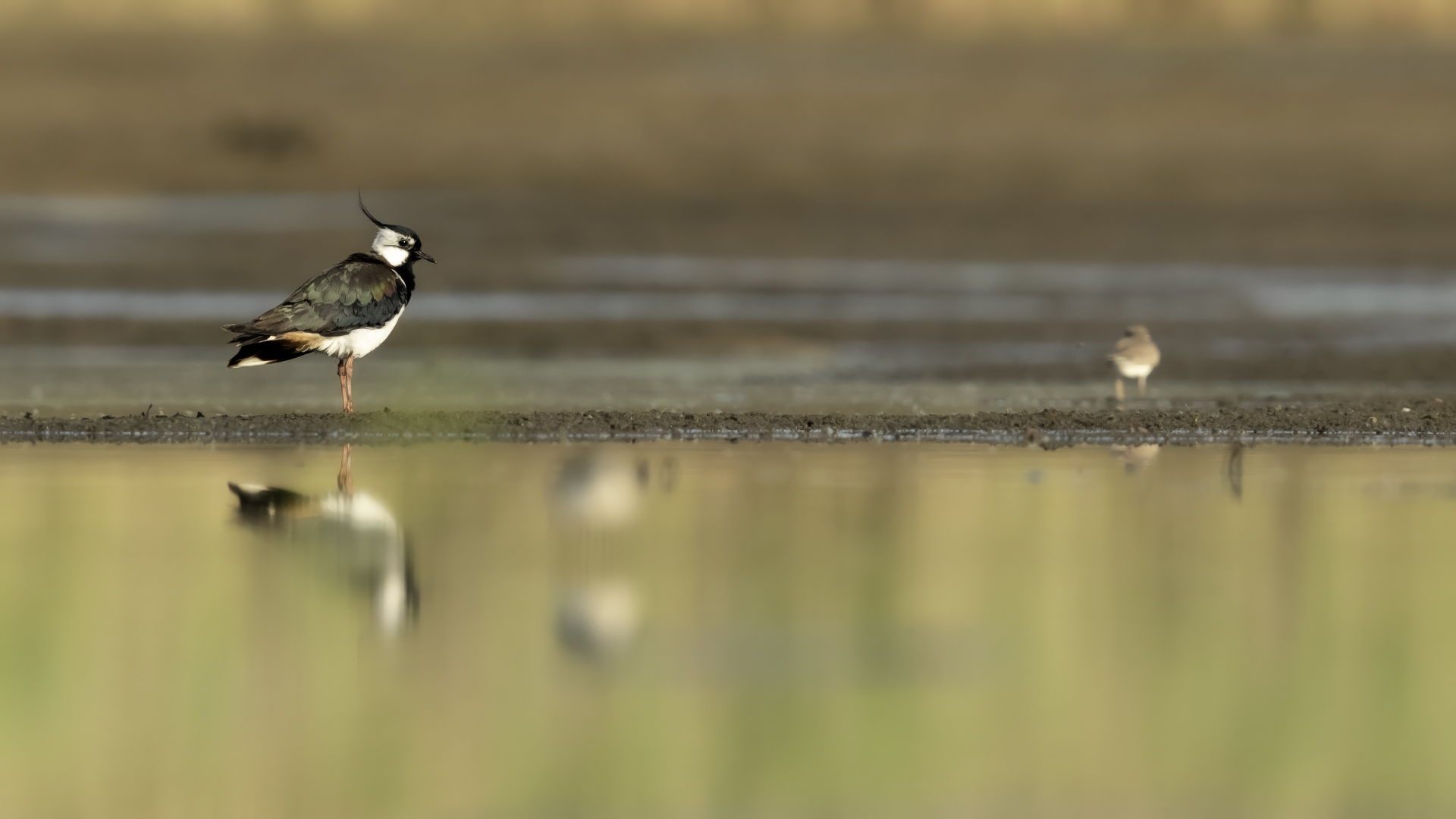The previous lapwing gallery was a collection of a dozen or so photos taken at random over the course of several years. In May 2022 its content changed beyond recognition and changed its status from sufficient quality to very good. It was caused by pictures taken in Hungary. Lapwings were coming really close sometimes and it was finally possible to take good pictures of them. With dynamic ones it was more difficult, because this hide was prepared for pictures taken in a recumbent position. Encouraged by my first day in this place, I decided to try again. Unfortunately practically nothing except Lapwings and Redshanks appeared in front of the camera. It was not without emotions, too. Lapwing brought in three nestlings which were a few days old. When in danger, the chicks sat still on the ground and disappeared from the view. This happened when a herd of cows came to the water. The little ones froze motionless, but it could happen that a cow simply stepped on them and killed them. After the cows have had a drink, we wait for movement on the ground to see if anything has happened to the little lapwings. Suddenly you can see one, second and there is a third - they all survived!