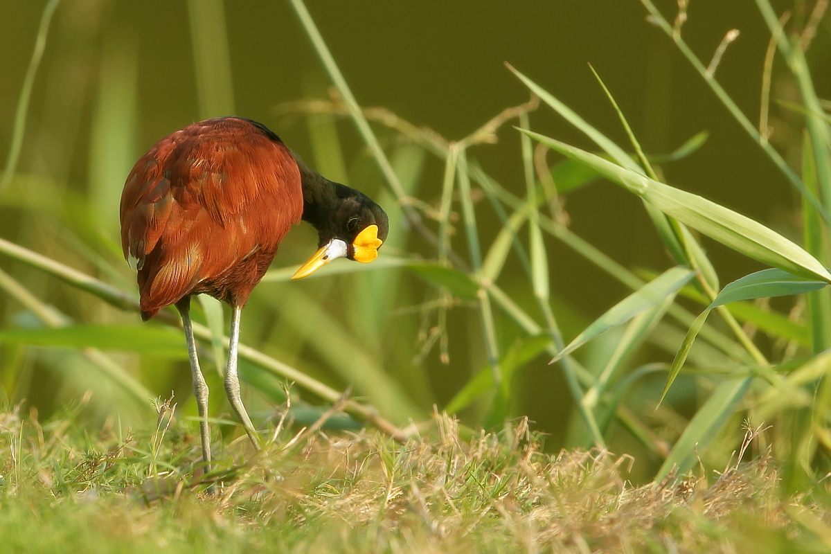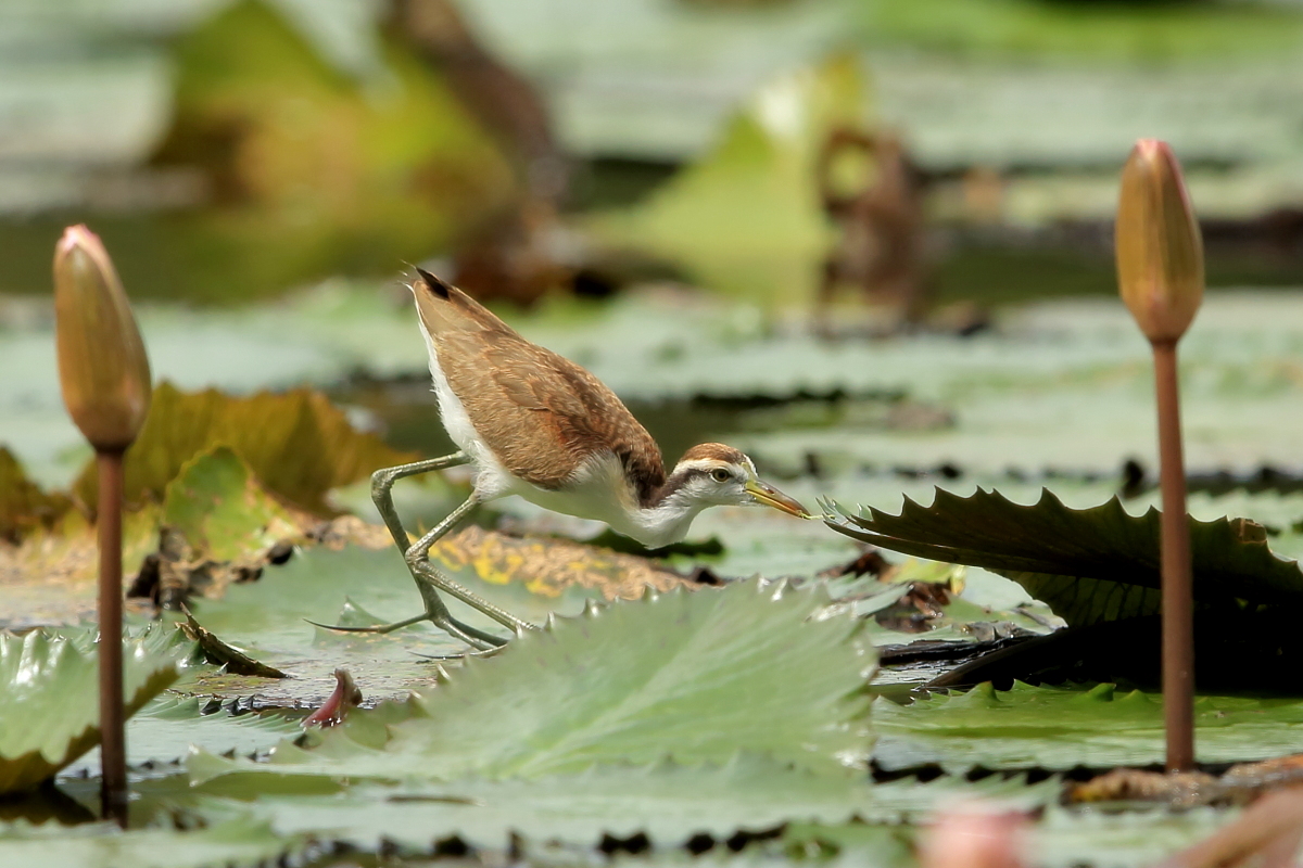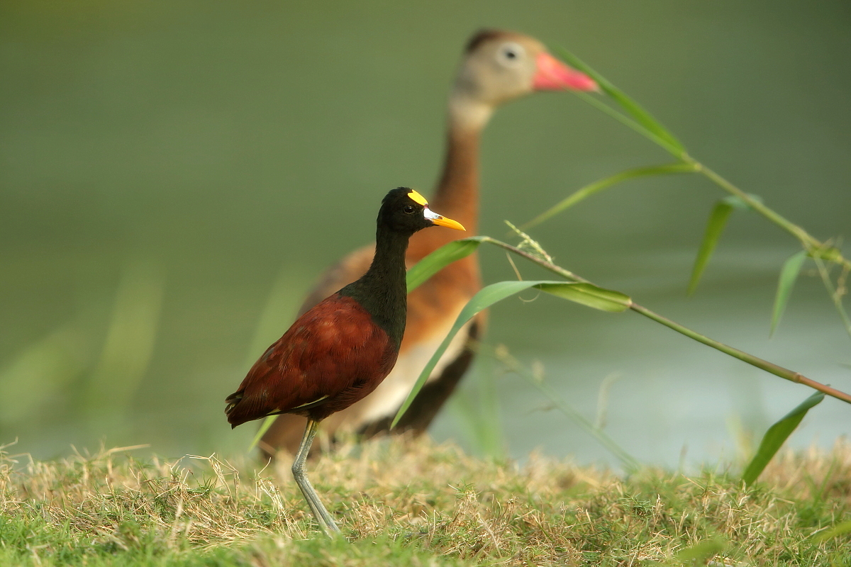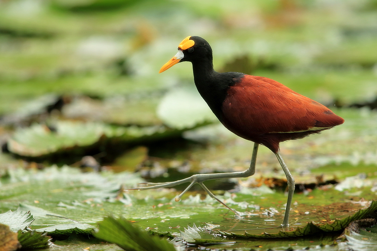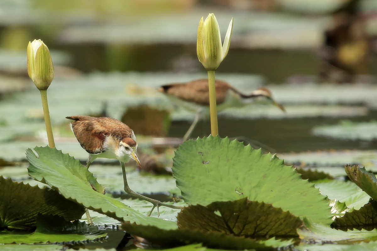The third species of jacana goes to my gallery. This time the best and most interesting display of jacanas was created on my website. There were several meetings with the northern jacana but two of them in the light of an interesting color. Once I managed to shoot adults with adolescent juvenile. I took so many pictures that it was difficult to select them for the gallery. Here we have some pictures showing the characteristic long fingers/claws of the jacana. Jacana are of filigree physique. Their weight is less than 170 grams and a wingspan about 60 centimeters.