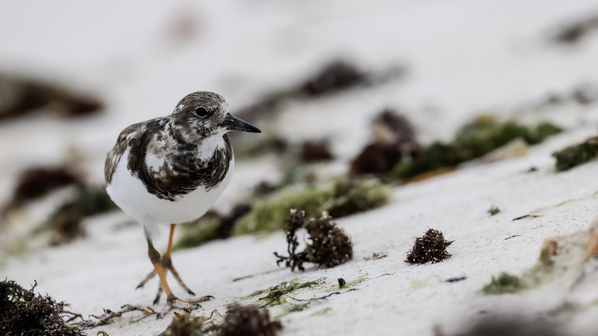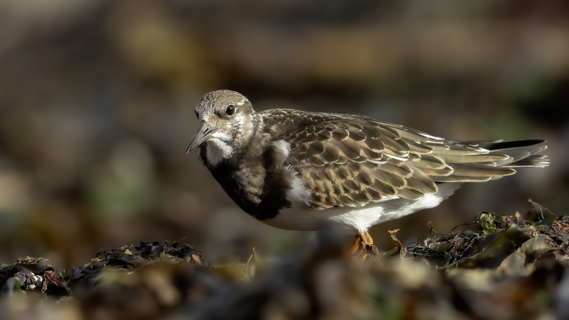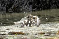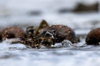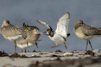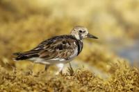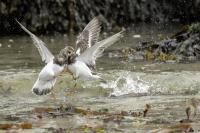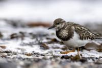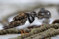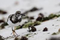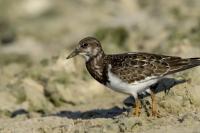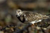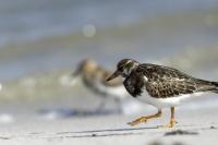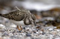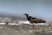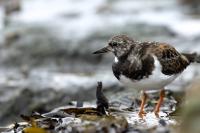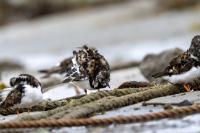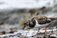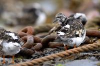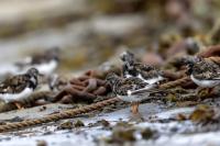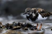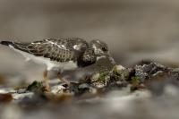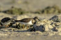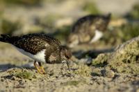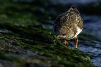 I admit that when I was getting up at 5 am in August in Swinoujście to go to the seaside with the camera I was quite skeptical about what I could photograph. The holiday season in a place like that means people on the beach practically around the clock. But without trying I will have no pictures for sure. When coming to the beach I could confess my fears proved correct, even so early you could count a dozen people. A novelty for me was that when I slowly approached closer to the plants thrown out of sea during the night I could see a cluster of tiny birds feed on the leftovers. It was surprising that they accept people walking by the sea (within few meters). Annoying thing, however, was that If I had not been there other people, particularly some older women would pass without noticing feeding birds. But if they are interesting for someone to photograph them, then they are worth taking a look at, very carefully indeed. Women passed treating me as if I were invisible and came up closer and closer, so that scared off everything that could pick up the flight. Despite my respect for the elderly, I cannot understand why they behaved like that and I do not know if it was an ordinary carelessness or malice. Anyway it wasn’t nice of them. Fortunately, the birds returned, but because of the growing number of people on the beach there were fewer and fewer birds. After 9 o’clock it was hardly anything to photograph. But never mind, the outdoors session was successful. Birds let me approach close enough to take some good photos that I could publish in the gallery. The lighting conditions at the rising sun were perfect. I was fully satisfied because of the fact that I was able to photograph the new species -dunlin, red knot, turnstone and ringed plover. Not only the new species but also of a satisfactory quantity and quality. Too bad that the ringed plovers soon abandoned this place because of the walkers. It is a long time I have not not managed to take pictures of the representative of the genre, and they aren’t satisfactory either in quality or shots. This comment will be common for photos added to the gallery in August, during that session. There are several reasons. The most important fact is that the whole session lasted several hours when birds were continuously disturbed, and as a result I was waiting and waiting for them returning. In such conditions, it is difficult to tell stories about the natural behavior of the species. Just like with the sounds of birds. Although the microphone was turned on all the time but after listening you could only wring your hands, or better ears. There was recorded everything, apart from the sounds of birds. The sounds of the port, the ships, walkers’ conversations, dog barking ... It is a pity, even far from perfection sound but recorded on my own is better to listen in correlation with pictures of the species than downloaded from another source of sounds. Short description, sound, photos, it's almost a movie, complete report of communing with nature. My diary. But it is not a market. What and how we can capture is always a lottery. This time the effect of several hours’ activity, without camouflaging, couching was stunning. Welcome to my galleries: Dunlin, Red Knot, Ruddy Turnstone and Common Ringed Plover. At the end of my comments I have included data describing the bird of each species to have an idea of its size. As for a turnstone I know that I was able to photograph the bird that in Poland can be seen only in passing. Northern parts of Europe and Asia are its breeding grounds. Wintering in North Africa and the western coast of Europe. Turnstones weigh 100-180 grams, with a wingspan of about 50 cm.
