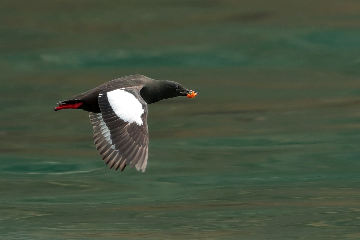 I saw the Black Guillemot twice while being in Iceland. Unfortunately only once there were the conditions and the distance good enough for me to take pictures. The images presented here were taken on the second time, but in a rather monotonous environment, static shots at cloudy evening (at 22). Thus not all species have the beautiful varied gallery after my photographic workshop in Iceland. Black guillemots live in colonies. Their weight is about 400 grams, with a wingspan of about 60 centimeters.