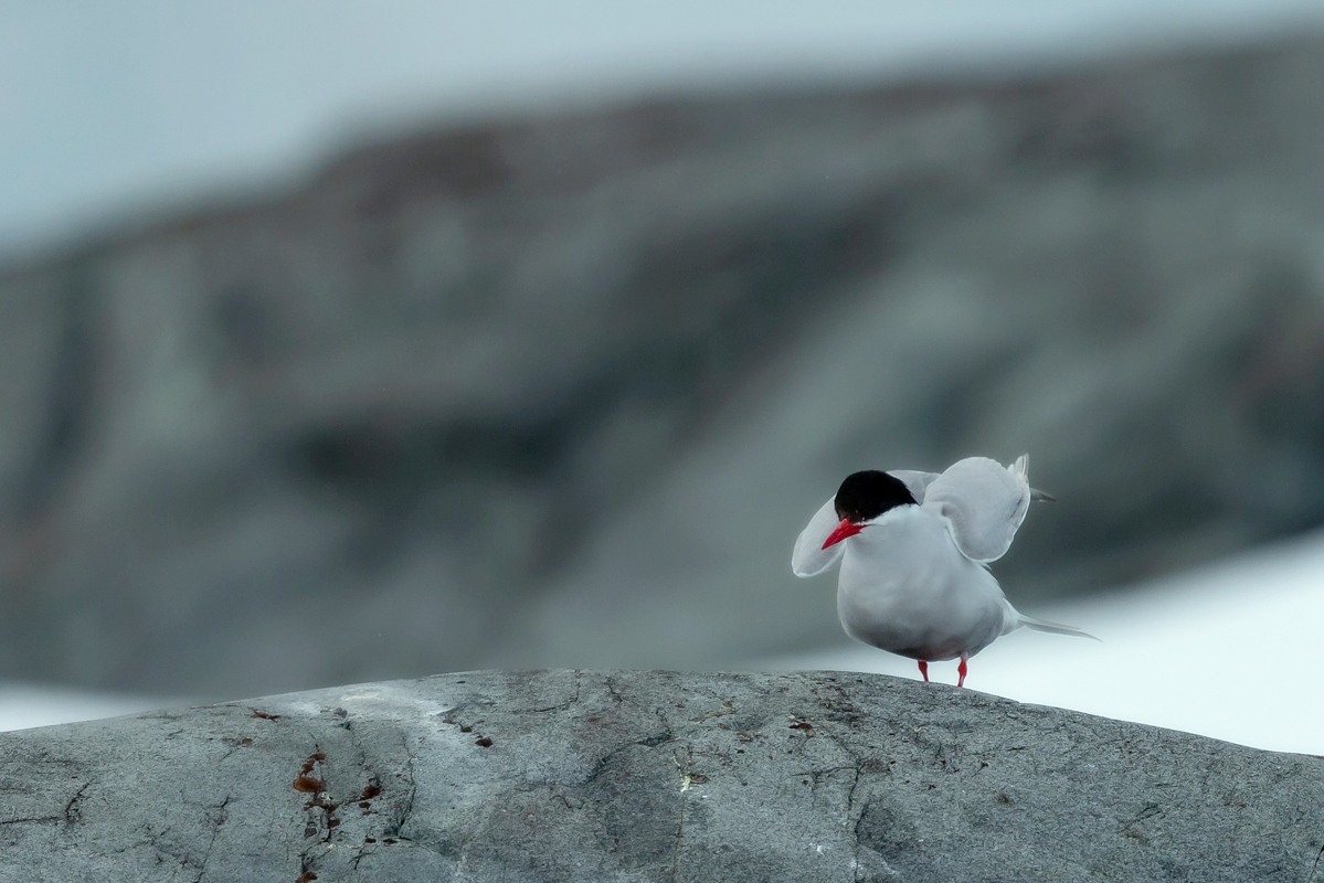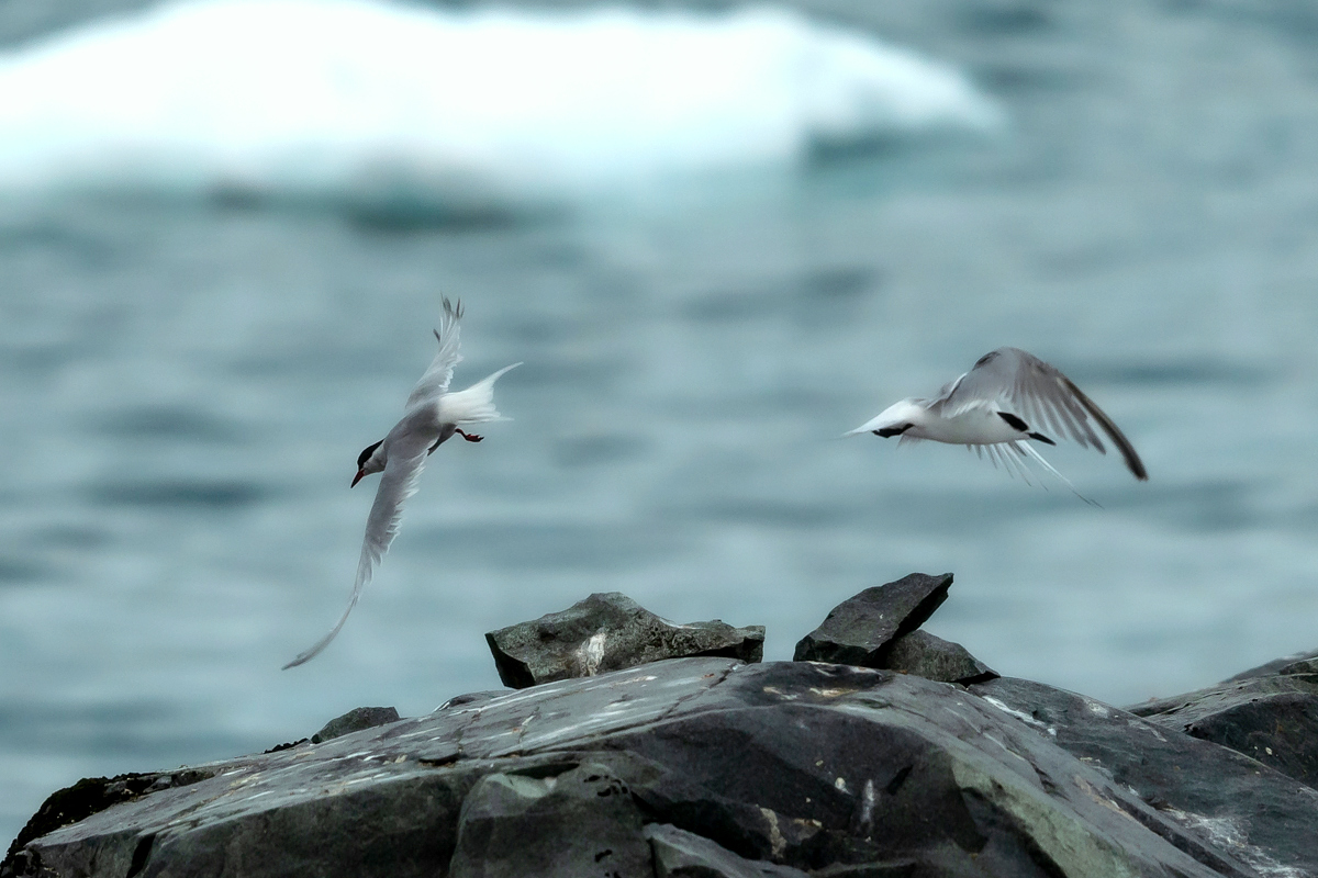There were not many of them and not many opportunities to capture them on Antarctica. I could take several pictures but in a rather bad light. While our ship sailed between the lumps of ice, every now and then I could see flying terns, but could not see their colonies. The Antarctic tern in size and behavior is very similar to the Arctic tern.