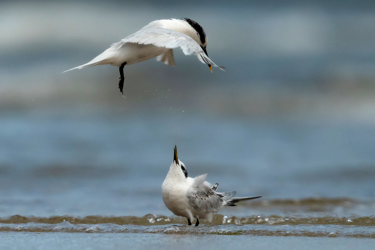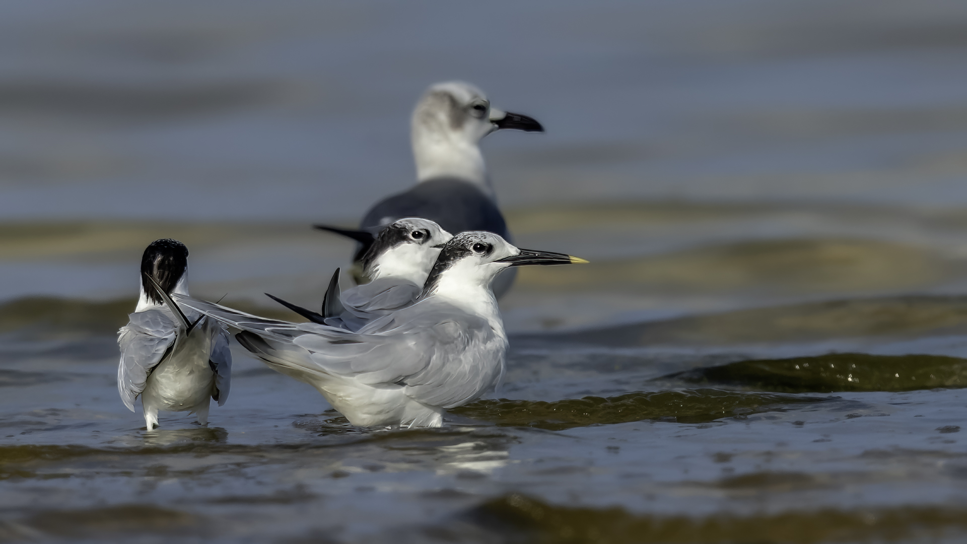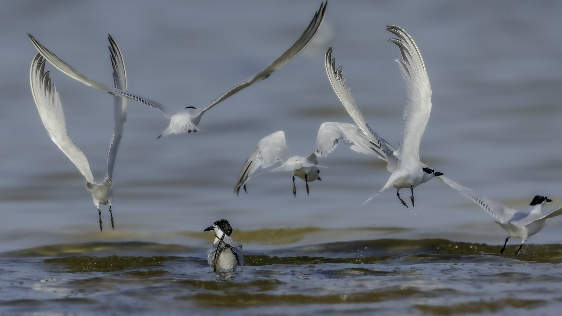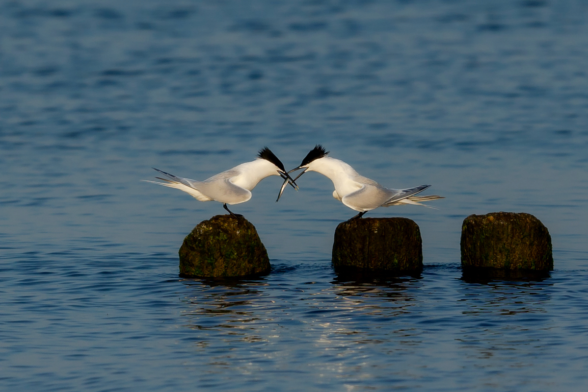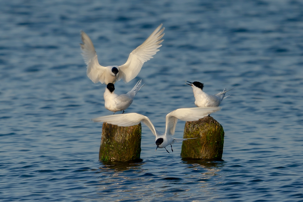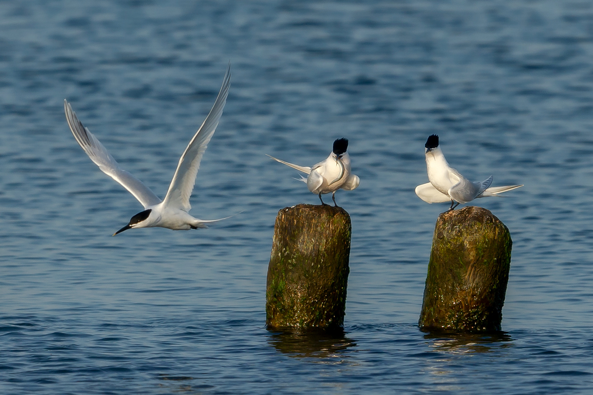 I wish such changes as the one that happened to this gallery occurred more often on my website. During one day of photographing I created a full gallery documenting beautiful morning scenes with the Terns in the foreground. More than this, I succeeded in recording their sounds. The males demonstrated their masculine prowess and skill at fishing. When you listen to the recording attentively, you can hear a splash of water. The males nose-dived into water chasing after fish. They fell into water really fast and they usually emerged from water with fish. The females, seated on the breakwater, looked at them attentively. The males were landing on the breakwater with the fish they caught and expected to win the female birds’ favours. Some of them submitted to their charm, appreciating their skill, and fed on the fish. The males who turned down swallowed their prey. They appeared to be very pragmatic in this respect. Welcome to the gallery.