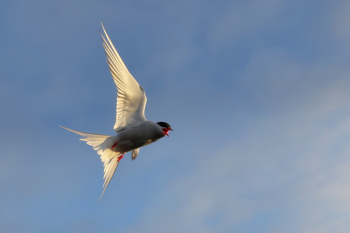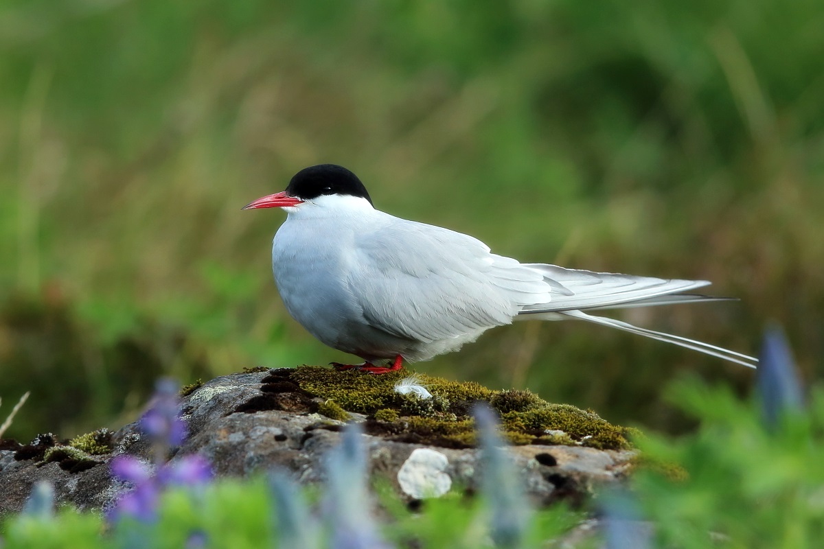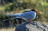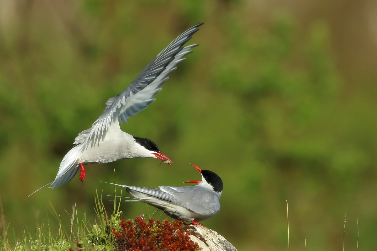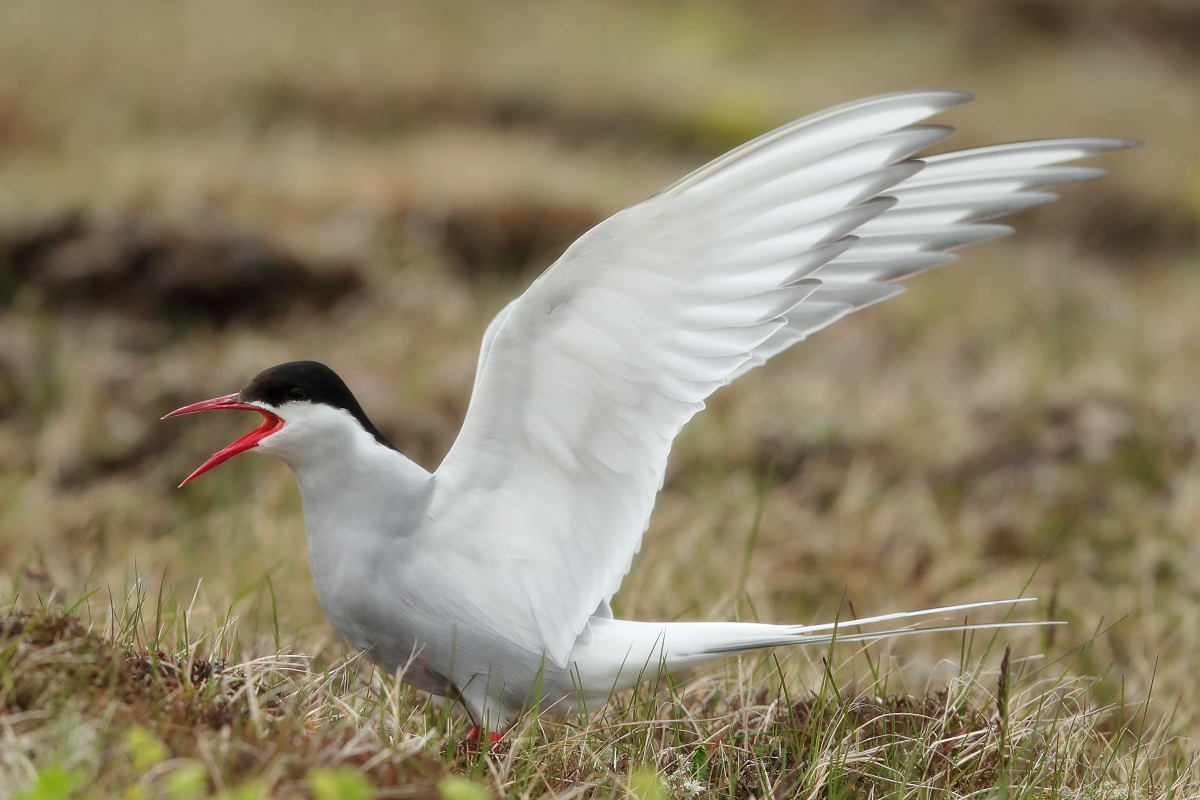 I’m glad that all the previous documentary pictures of this species now get into the archive. They are replaced by images which capture the charm of this little  bird. On several occasions Arctic terns in Iceland formed colonies on the ground, in easily accessible places. Near parking lots, on meadows, along the roadside. It was not difficult to find them. Approaching a colony of Arctic terns too close always ended the same way – they would defend  their colony, collectively attacking and tormenting the intruder. They are a graceful object to photograph indeed. I managed to capture a special moment between a male and a female, I guess. The male was giving the female its prey while in flight. She was sitting on a rock by a lake making a series of monotonous, short sounds. The male hang in the air nearby like a kestrel and dived for fish in turns. Successful hunting always ended in the male’s approaching the female and giving her his prey while in flight. In a few days I managed to take pictures which do not change the previous gallery so much, but rather create it anew. I didn’t have difficulties with recording the sound of this bird, especially due to the significantly reduced distance between me and the colony.