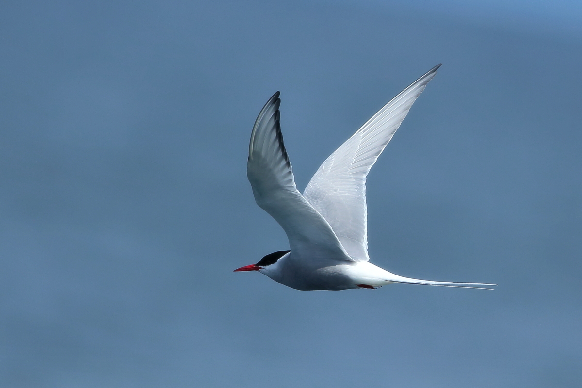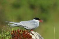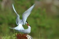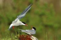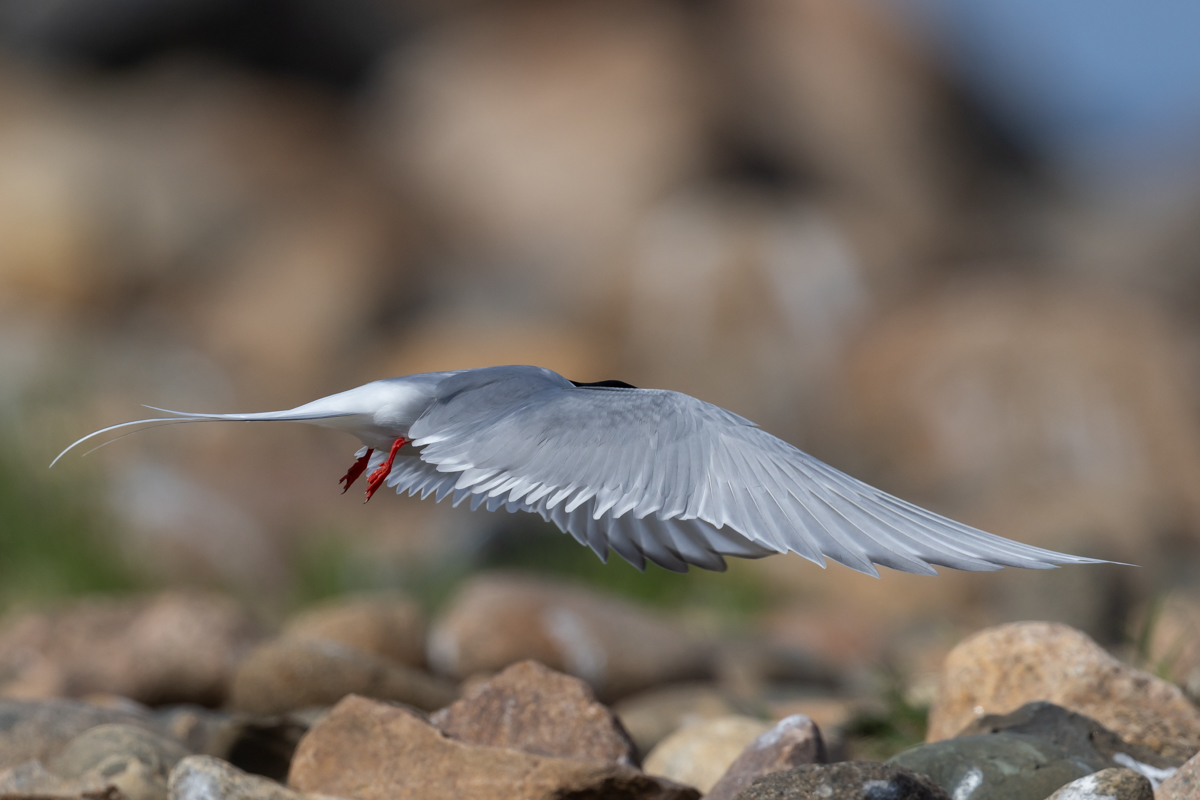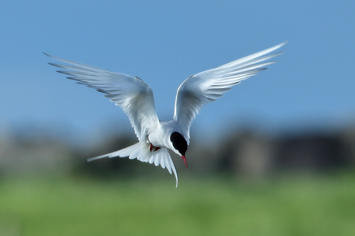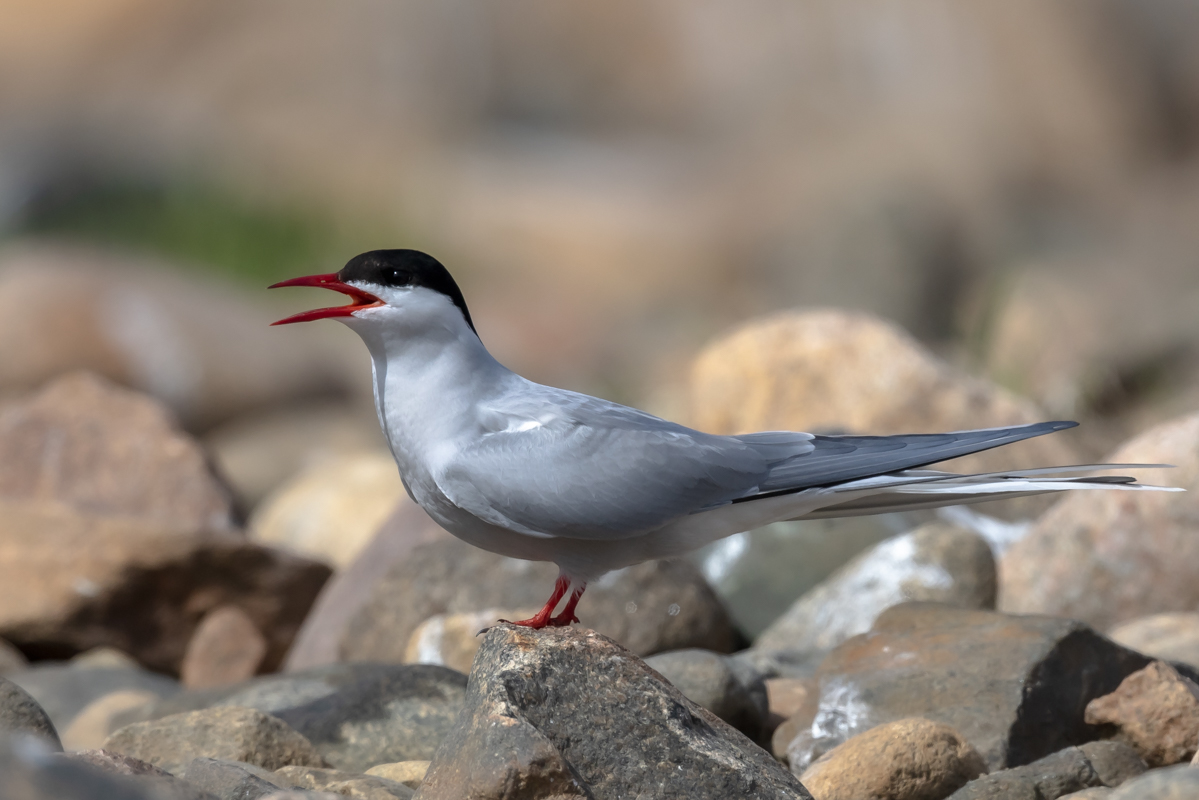 I’m glad that all the previous documentary pictures of this species now get into the archive. They are replaced by images which capture the charm of this little  bird. On several occasions Arctic terns in Iceland formed colonies on the ground, in easily accessible places. Near parking lots, on meadows, along the roadside. It was not difficult to find them. Approaching a colony of Arctic terns too close always ended the same way – they would defend  their colony, collectively attacking and tormenting the intruder. They are a graceful object to photograph indeed. I managed to capture a special moment between a male and a female, I guess. The male was giving the female its prey while in flight. She was sitting on a rock by a lake making a series of monotonous, short sounds. The male hang in the air nearby like a kestrel and dived for fish in turns. Successful hunting always ended in the male’s approaching the female and giving her his prey while in flight. In a few days I managed to take pictures which do not change the previous gallery so much, but rather create it anew. I didn’t have difficulties with recording the sound of this bird, especially due to the significantly reduced distance between me and the colony.