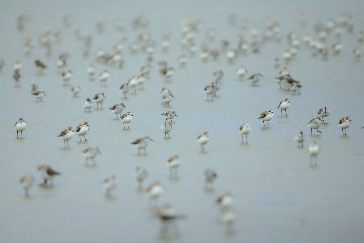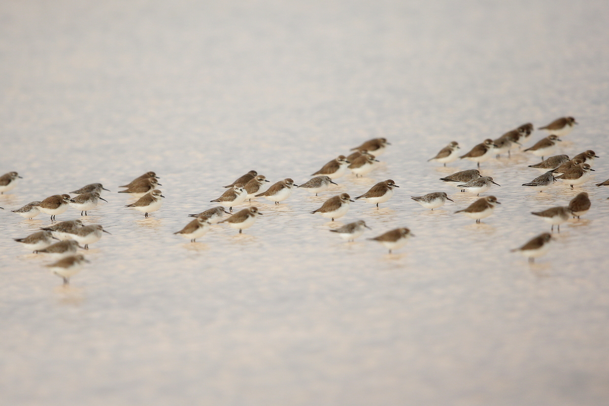 In the environment depicted in the description of the spoon-billed sandpiper there were thousands of birds which would fly in enormous flocks of hundreds of specimens between shallow water reservoirs.   The same was with great knots, Eurasian curlews and the three species of plovers. Sometimes there were so many of them that it was hard to choose what to photograph. The birds, sitting peacefully on dams, often cut the distance to us significantly. Apart from plovers we were approached by stilts, great knots and sandpipers… It’s a pity that in such an intriguing place we did not have a whole day for photographing. Especially that the people working with the service of reservoirs for obtaining salt made the task easier for us. The birds, accustomed to humans’ presence, were not so skittish and if we had stayed there for a few days we would have had many interesting encounters combined with taking not less interesting pictures.