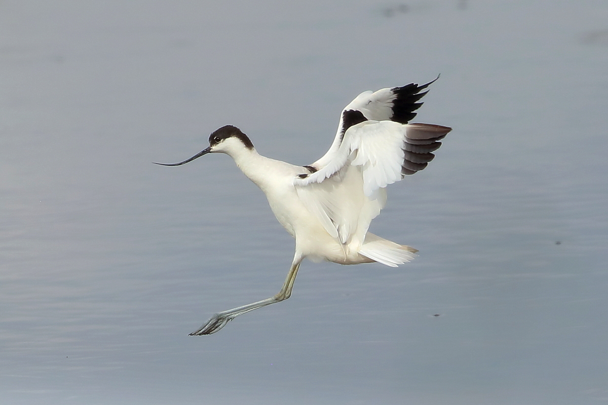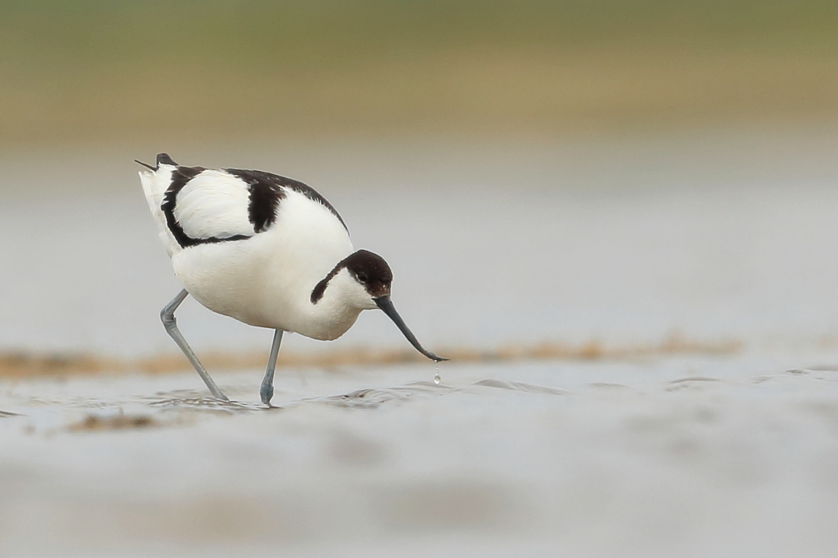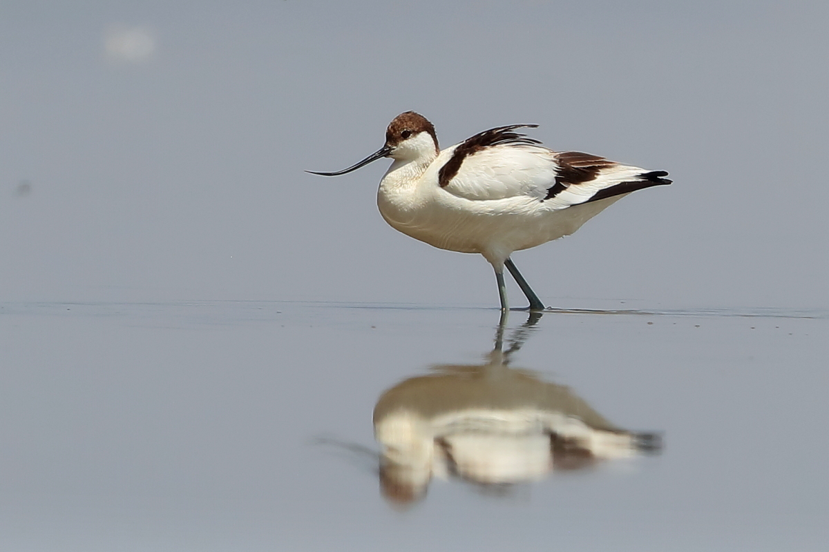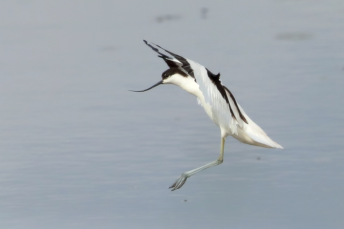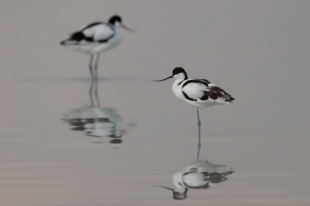 It occurs on the coasts of Europe and Asia most frequently. In Poland, an extremely rare visitor, though more and more often their hatching is said to be seen in our country. The pictures were taken in the Netherlands within the midday break in shooting the baillon’s crake. After a short conversation with the Dutch bird-watchers it was clear that pied avocets can be easily shot not so far away on the coast. They were not many there, probably less than 10 individuals living beside the colony of black-headed gulls and sandwich terns. They were not afraid of us and allowed to take pictures without camouflaging. Light was the biggest problem as it was a sunny cloudless day. We waited a few hours for better light conditions in the afternoon. Also the audio recording was a big trouble. Pied avocets could be heard occasionally, but colony of gulls and terns were active and noisy all the time, and they were in number of hundreds of individuals. To make matters worse we could hear the noise of civilization, and finally paramotor put an end to the audio recording. I hope to have one more opportunity to exchange this imperfect, short audio recording for a better one in the future, but for now it is like that . Pied avocets reach a weight of 0.4 kilogram, and their wingspan is less than 80 centimeters. In the case of these birds their height is also worth pointing, as it is about 0.5 meters. Avocet in fact belongs to the stilt family, Recurvirostridae, and their legs so long are specific of the family of those birds. Despite quite low weight their figure is rather tall.
