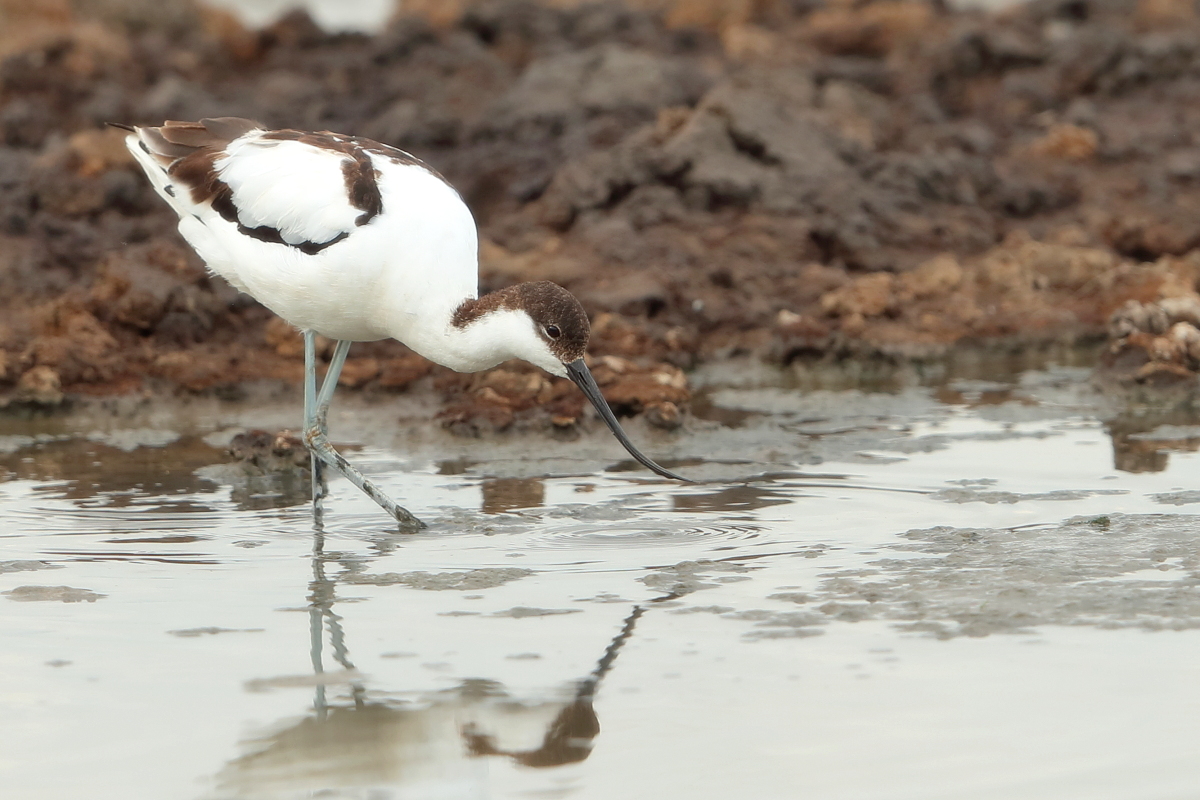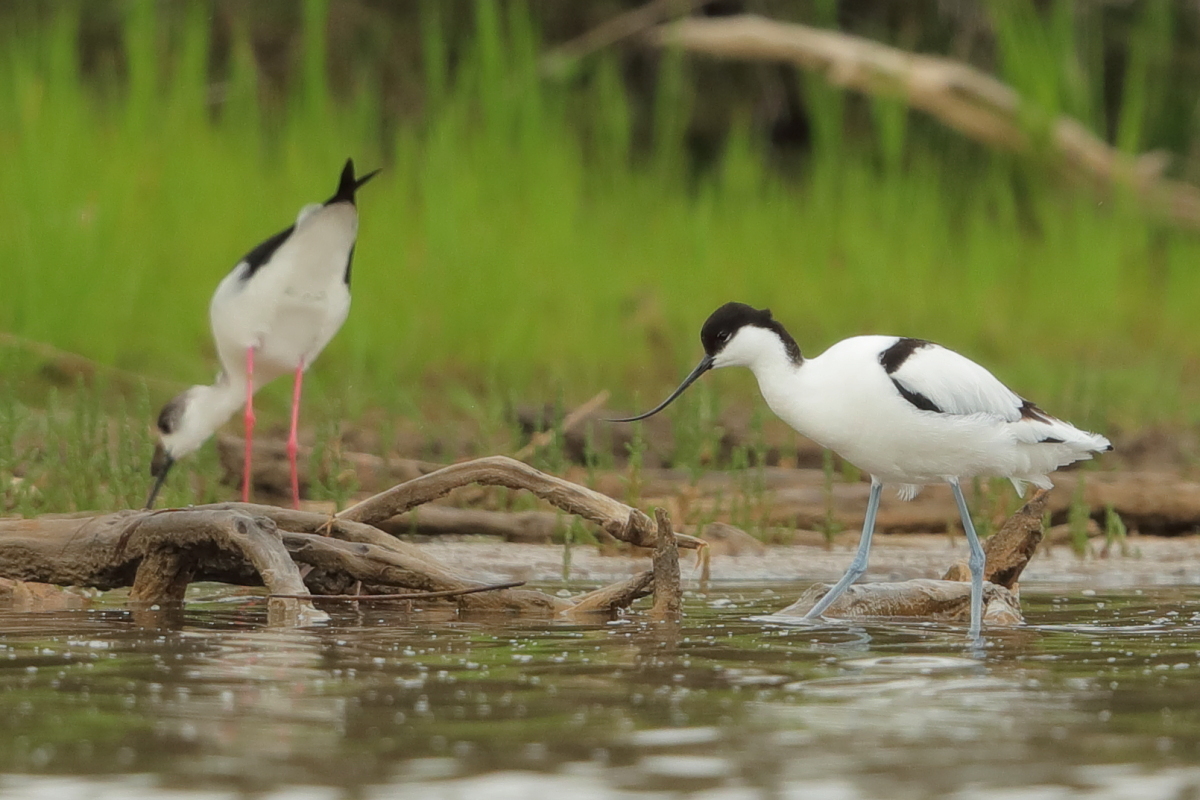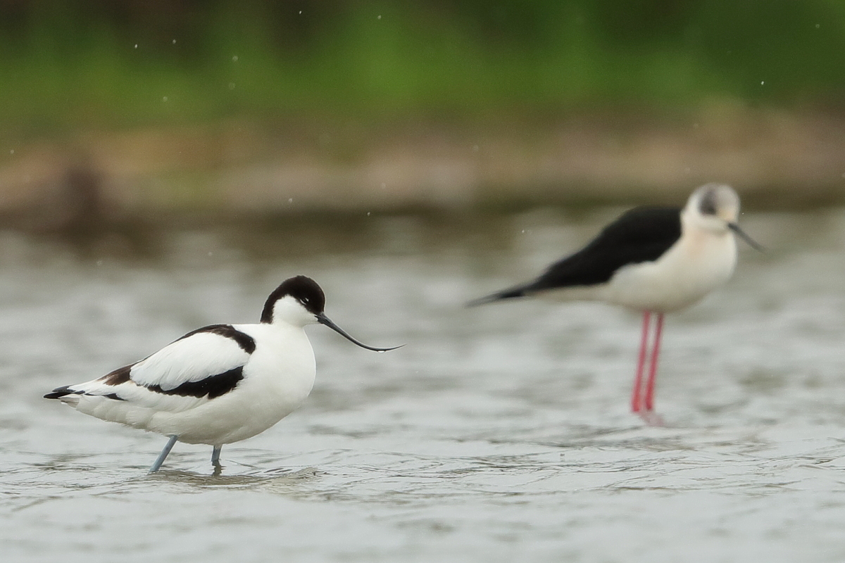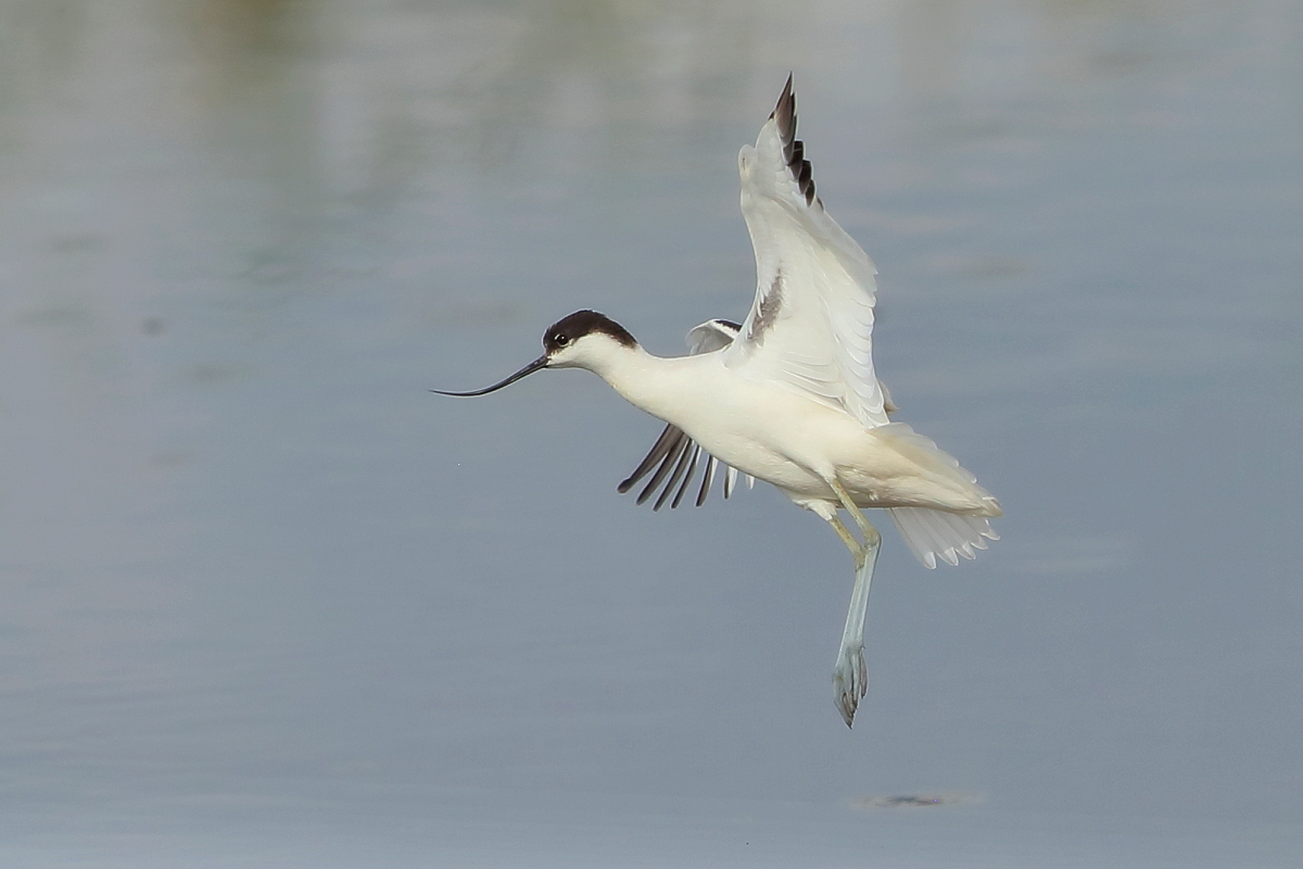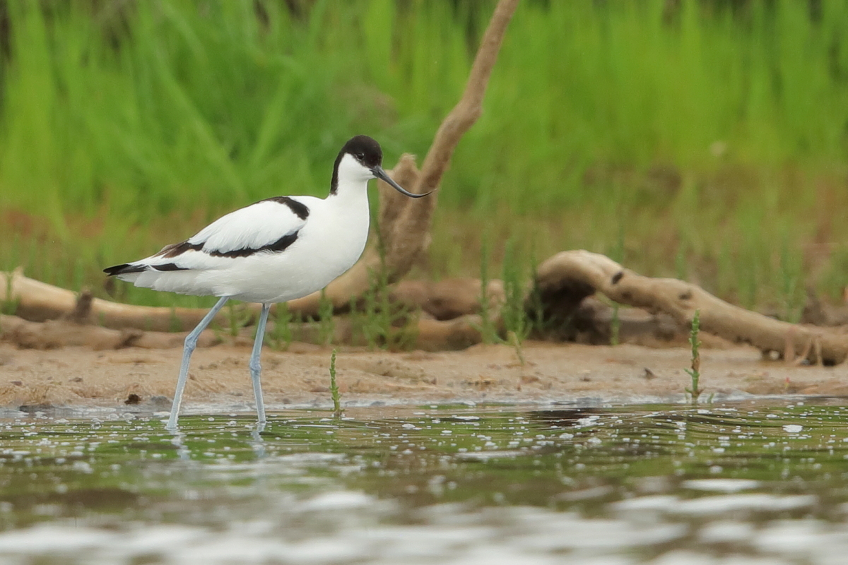 It occurs on the coasts of Europe and Asia most frequently. In Poland, an extremely rare visitor, though more and more often their hatching is said to be seen in our country. The pictures were taken in the Netherlands within the midday break in shooting the baillon’s crake. After a short conversation with the Dutch bird-watchers it was clear that pied avocets can be easily shot not so far away on the coast. They were not many there, probably less than 10 individuals living beside the colony of black-headed gulls and sandwich terns. They were not afraid of us and allowed to take pictures without camouflaging. Light was the biggest problem as it was a sunny cloudless day. We waited a few hours for better light conditions in the afternoon. Also the audio recording was a big trouble. Pied avocets could be heard occasionally, but colony of gulls and terns were active and noisy all the time, and they were in number of hundreds of individuals. To make matters worse we could hear the noise of civilization, and finally paramotor put an end to the audio recording. I hope to have one more opportunity to exchange this imperfect, short audio recording for a better one in the future, but for now it is like that . Pied avocets reach a weight of 0.4 kilogram, and their wingspan is less than 80 centimeters. In the case of these birds their height is also worth pointing, as it is about 0.5 meters. Avocet in fact belongs to the stilt family, Recurvirostridae, and their legs so long are specific of the family of those birds. Despite quite low weight their figure is rather tall.