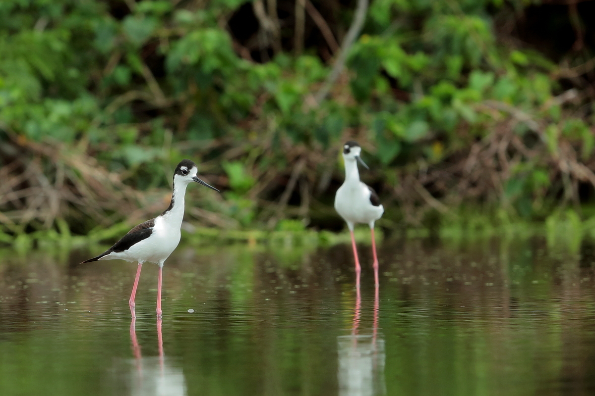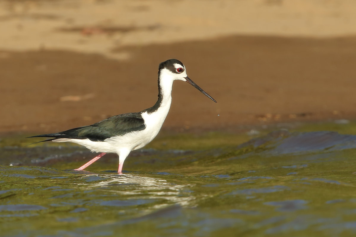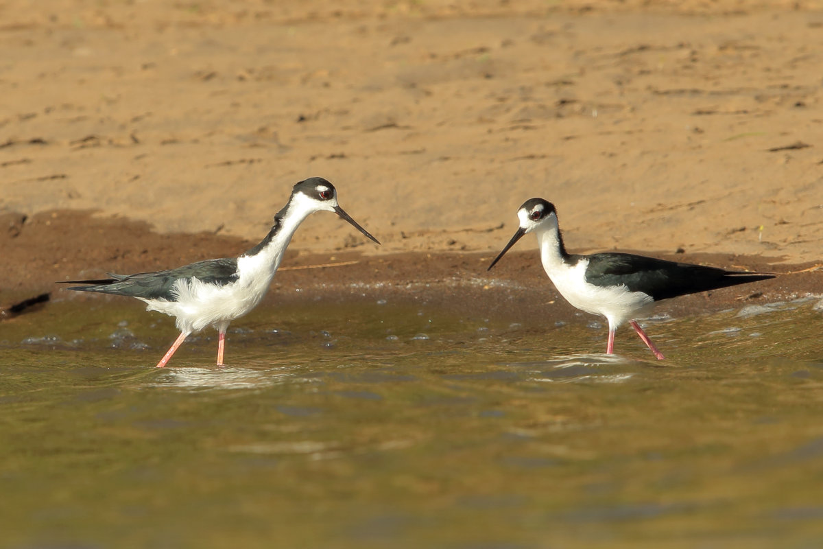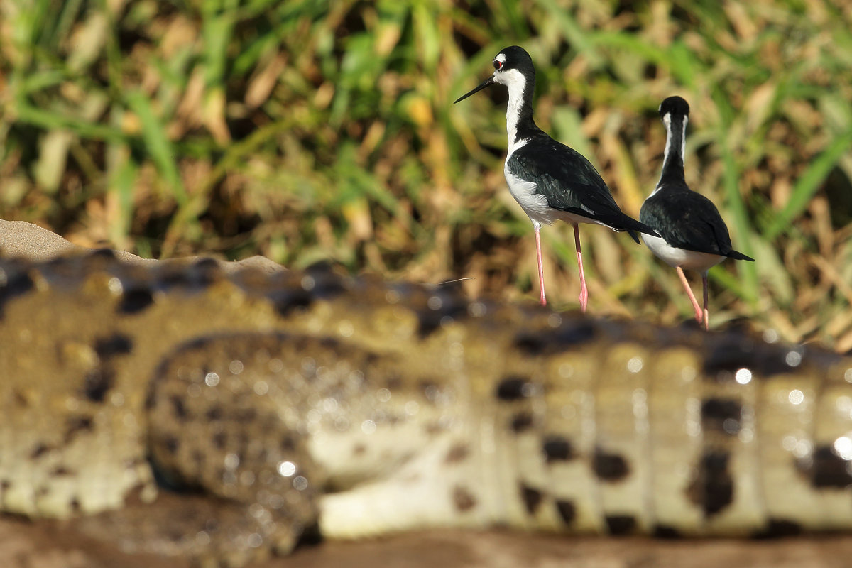 It appears mostly north of Costa Rica, but for winter time it migrates from North America to Costa Rica, and further to the south. The birds appeared in small flocks, sometimes one could see pairs of birds peacefully seeking for food at the river bank. “Peacefully” is quite an unusual term, if we take the surrounding environment into consideration. The birds walked in the vicinity of crocodiles resting in the sunshine. Apparently, they were too small a meal and thus not worth attention of a crocodile, so that they didn’t have to fear. I uploaded one picture in my gallery which depicts this co-existence of crocodiles and black-necked stilts.