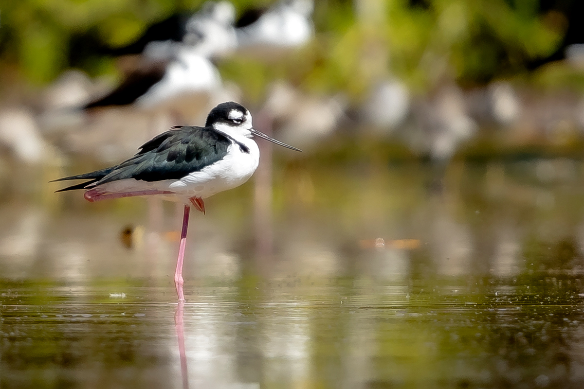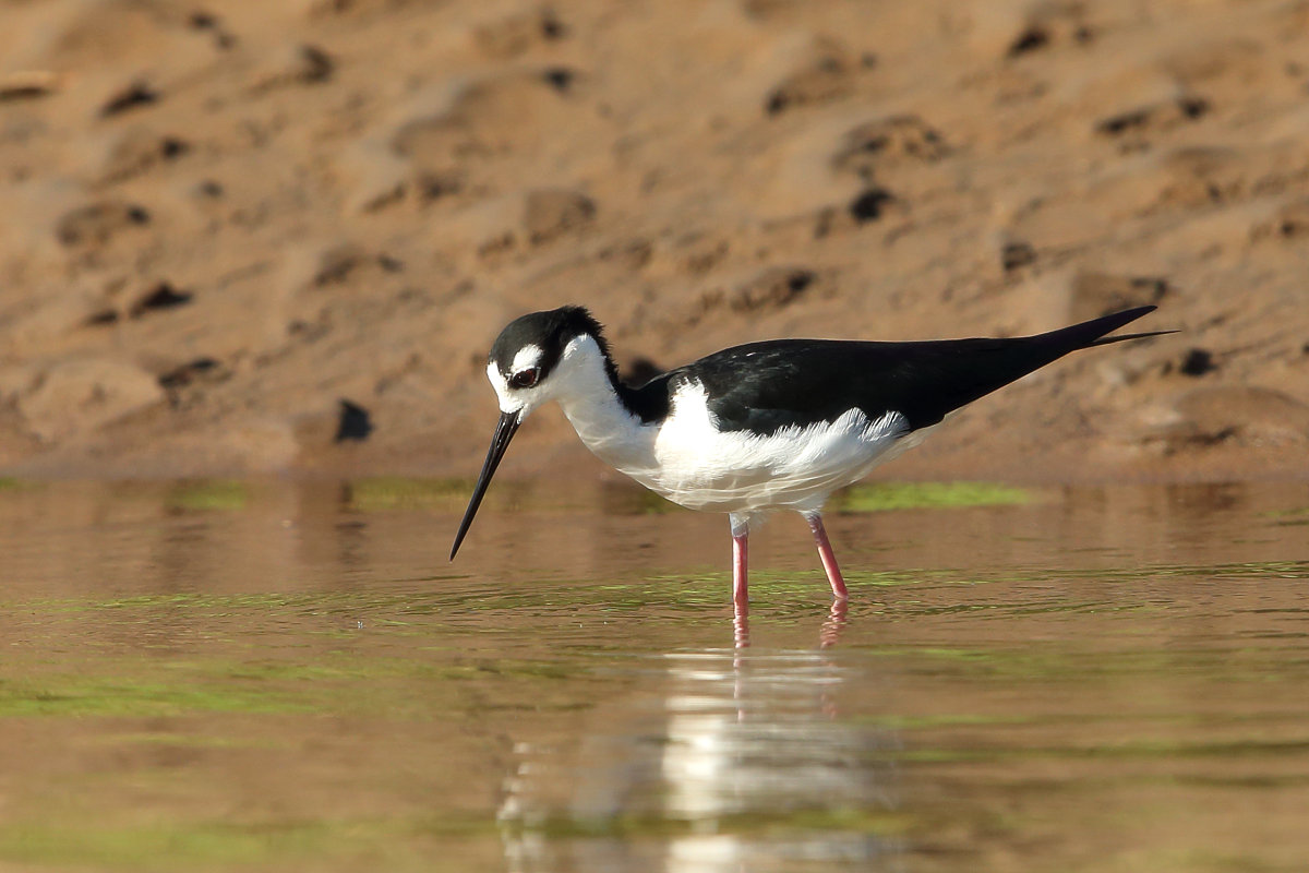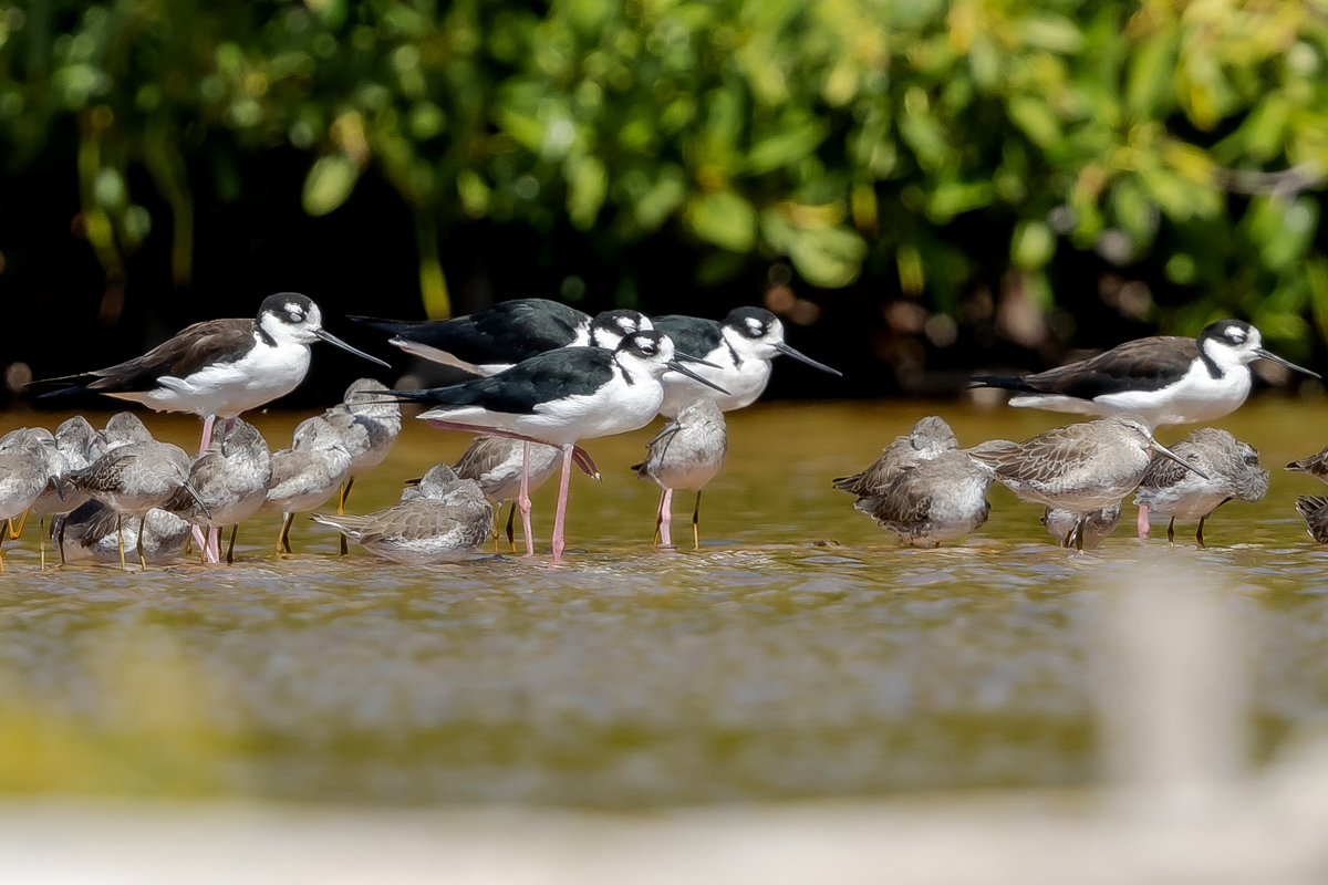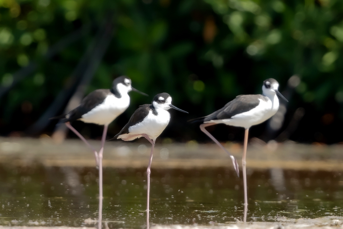It appears mostly north of Costa Rica, but for winter time it migrates from North America to Costa Rica, and further to the south. The birds appeared in small flocks, sometimes one could see pairs of birds peacefully seeking for food at the river bank. “Peacefully” is quite an unusual term, if we take the surrounding environment into consideration. The birds walked in the vicinity of crocodiles resting in the sunshine. Apparently, they were too small a meal and thus not worth attention of a crocodile, so that they didn’t have to fear. I uploaded one picture in my gallery which depicts this co-existence of crocodiles and black-necked stilts.