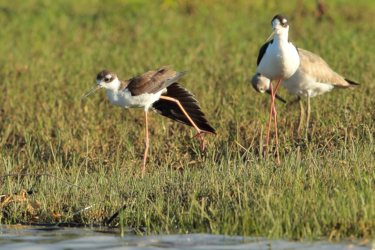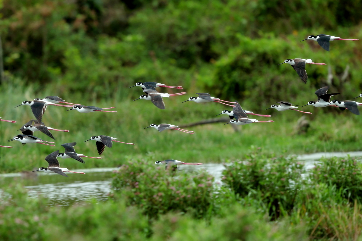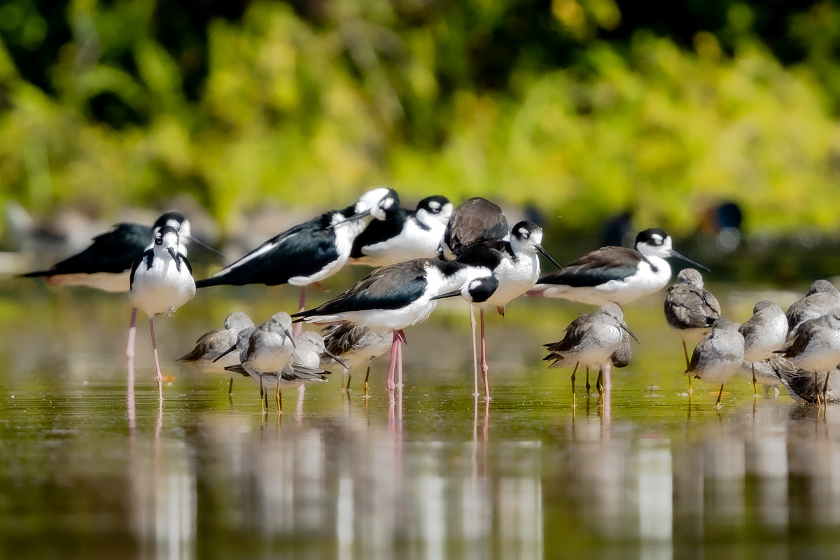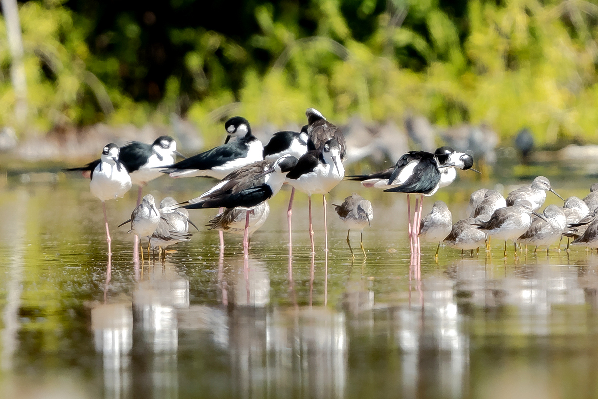 1. Pied-billed Grebe(T). 2.Turkey Vulture(T). 3.Yellow-faced Grassquit. 4.Smooth-billed Ani. 5.Ruddy Turnstone. 6. Eastern Meadowlark. 7. Tricolored Heron. 8. Green Heron. 9. Osprey(T). 10.Purple Gallinule. 11.Black-necked Stilt(V). 12.White-winged Doves(V). 13.Mourning Dove. 14.Northern Waterthrush. 15.White Ibis. 16.Northern Shoveler.17.Sanderling. 18.Willet.19.Grey plover.