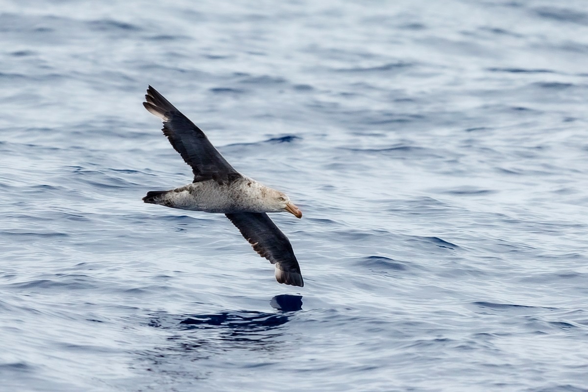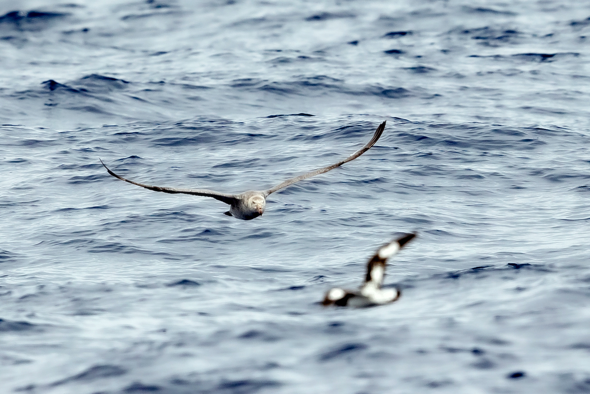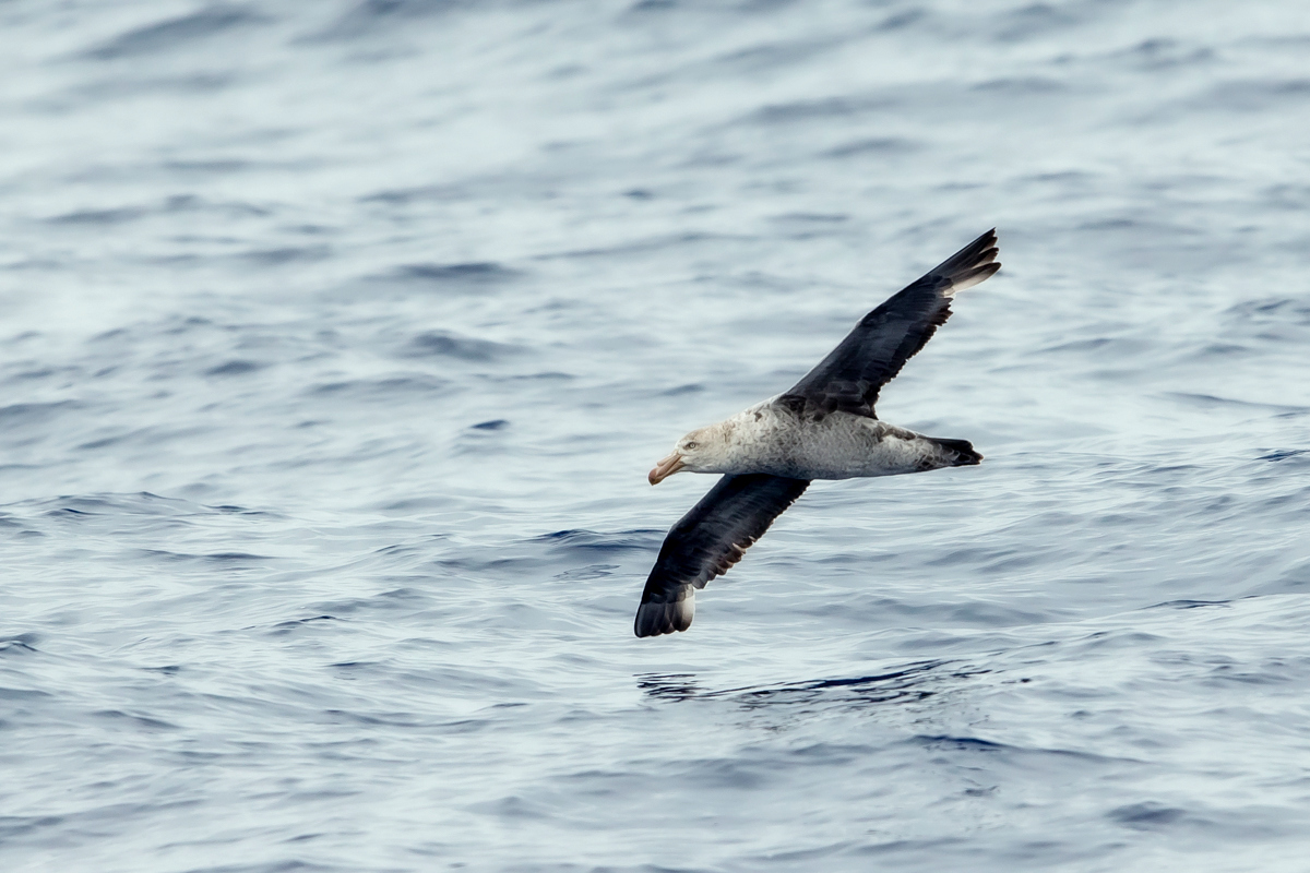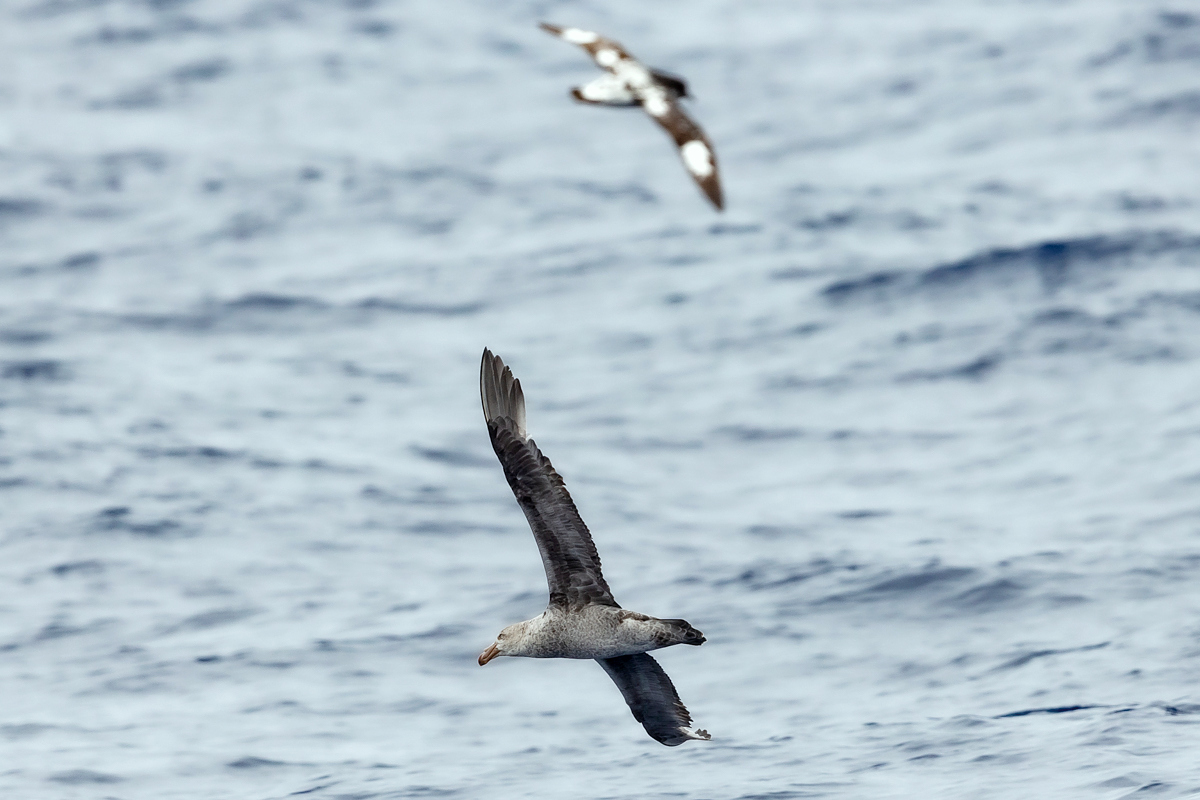 During the trip to Antarctica I was able to photograph several species of albatrosses and other birds. While shooting these beautiful, majestic birds I encountered some difficulties. The first was the Drake Passage. When crossing the strait from Ushuaia in Patagonia to Antarctica, even though we could tell that the waters were calm, it did not mean that the ship was upright and was not leaning on one side. Even when the weather was good walking on the deck was a problem. It was not easy, especially with photographic equipment, to move to the stern – the most stable place on the ship, sheltered from the wind. Additionally, working with the camera on a tripod, with the birds moving so quickly and in a small number, it was another trouble to tackle with. Albatrosses, petrels, fulmars were coming into sight every half an hour and I could make several attempts to take pictures. It was a question what lens would be the best in this situation. Once the birds were a few hundred meters away from the ship and after a while they were so close that it was impossible to capture their larger than three-meter wings. Northern giant-petrels and cape petrels happened to approach too close for me to focus well and take pictures, it was a distance of about 4 - 5 meters. It was an amazing impression made by so close contact with wild birds, hundreds of kilometers from the mainland. However, in spite of all obstacles, my patience and tenacity in trying for hours produced the desired results, at least in my opinion. I have finally taken not only the images of albatrosses but also northern giant-petrels, fulmars, cape petrels, white-chinned petrels and storm petrels. It was several hundred kilometers from the coast, and it seemed that the windier there was, the more numerous and the closer the birds were getting. It looked like that especially with albatrosses and petrels, as cape petrels were present almost always. Unfortunately, the likelihood of taking good pictures was inversely proportional to the weather conditions. The worse it was in terms of weather and more difficult to obtain focused photos, and to keep standing on board, the more birds and opportunities to take pictures. When the sea calmed down a bit and it was technically easier to take a good picture, the birds appeared extremely rare. On the way back the weather conditions got worse to the point that going out was forbidden because it was simply dangerous (winds reaching force 7-8 on the Beaufort scale, waves of 4-5 meter). Such a prohibition lasted for more than a day and then we could admire albatrosses through windows, with no chance to take satisfying images. After all, it was technically impossible to take pictures because of the water overflowing the deck and significant ship heeling. Moreover, the temperature a little above or below zero, with a very strong wind, in these weather conditions it was physically impossible for me to wait for the birds soaring beautifully. Of course admiring them behind the glass of the ship it is not the same as from the deck. Antarctic cold air noise and the birds emerging from time to time, all this has its own unique and memorable climate. When we can watch the precision and ease the birds are soaring with, the speed of their flight and given the conditions in which they do, we appreciate it and feel respect and admiration for them. The birds can soar with high speed a few centimeters above the waves of the ocean, taking account of the uneven and dynamic surface, disappearing now and then out of the sight of the camera, "covered" or in fact for a moment hidden behind waves. Although I wore multi-layered clothes, after an hour or two I needed to take a half-hour break and warm up.