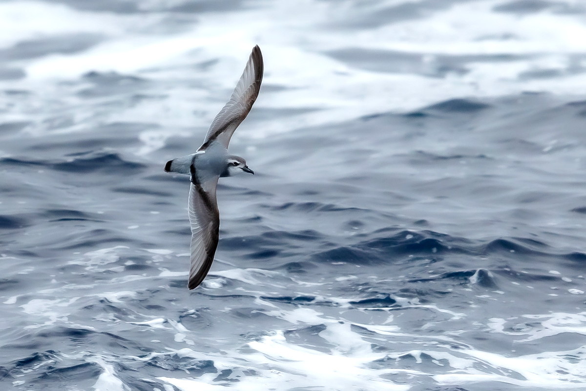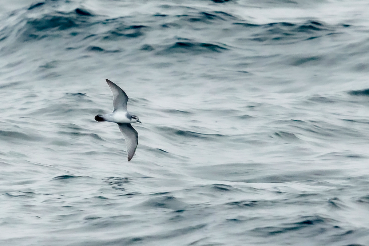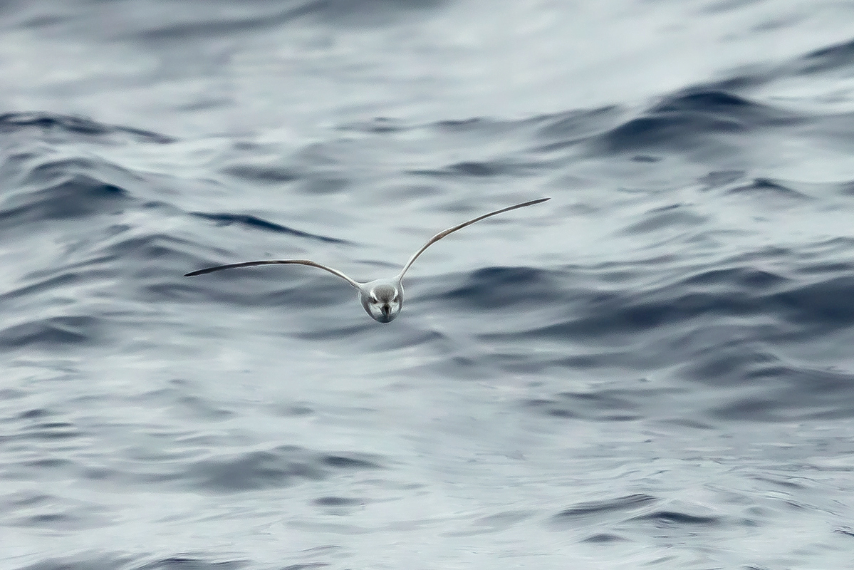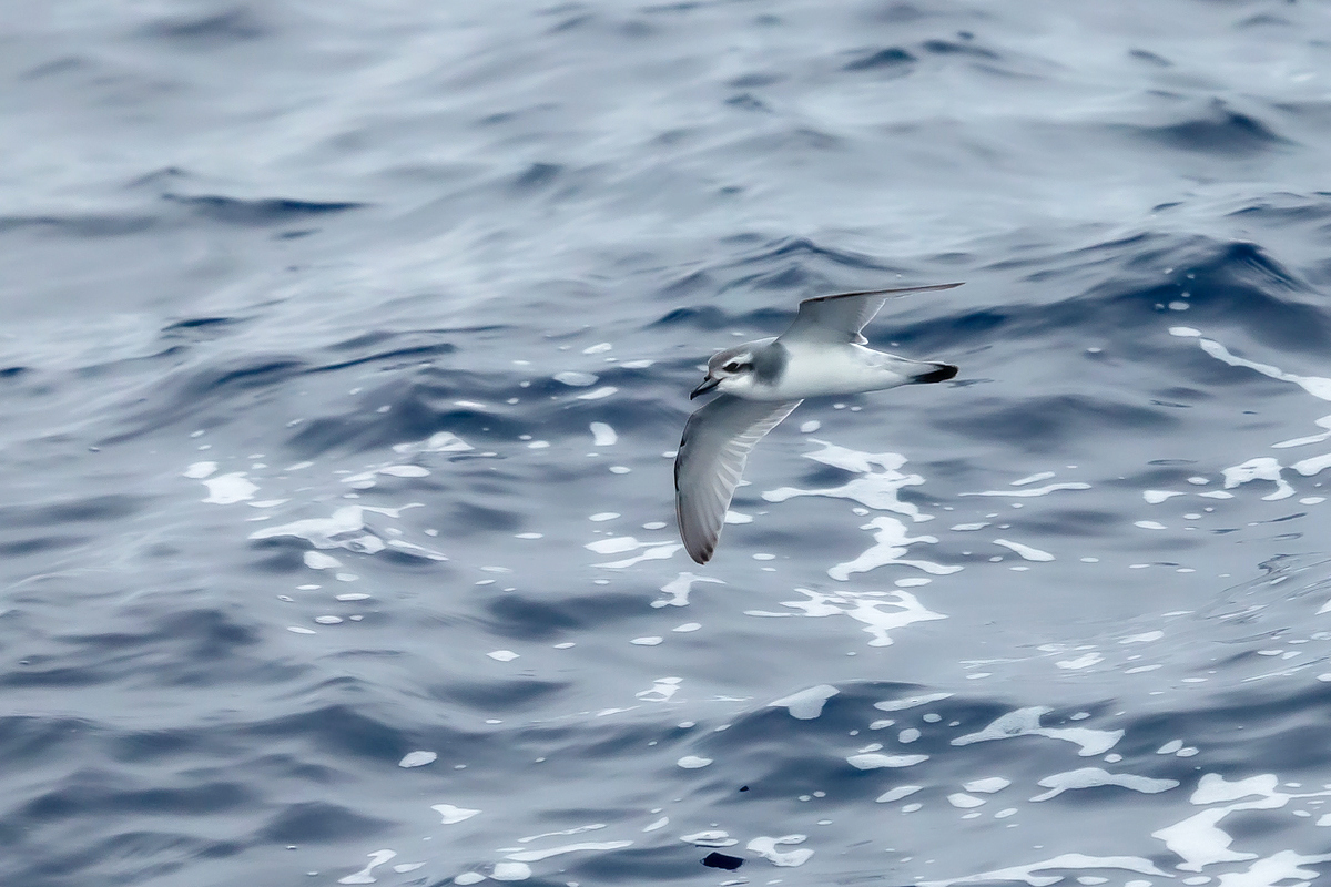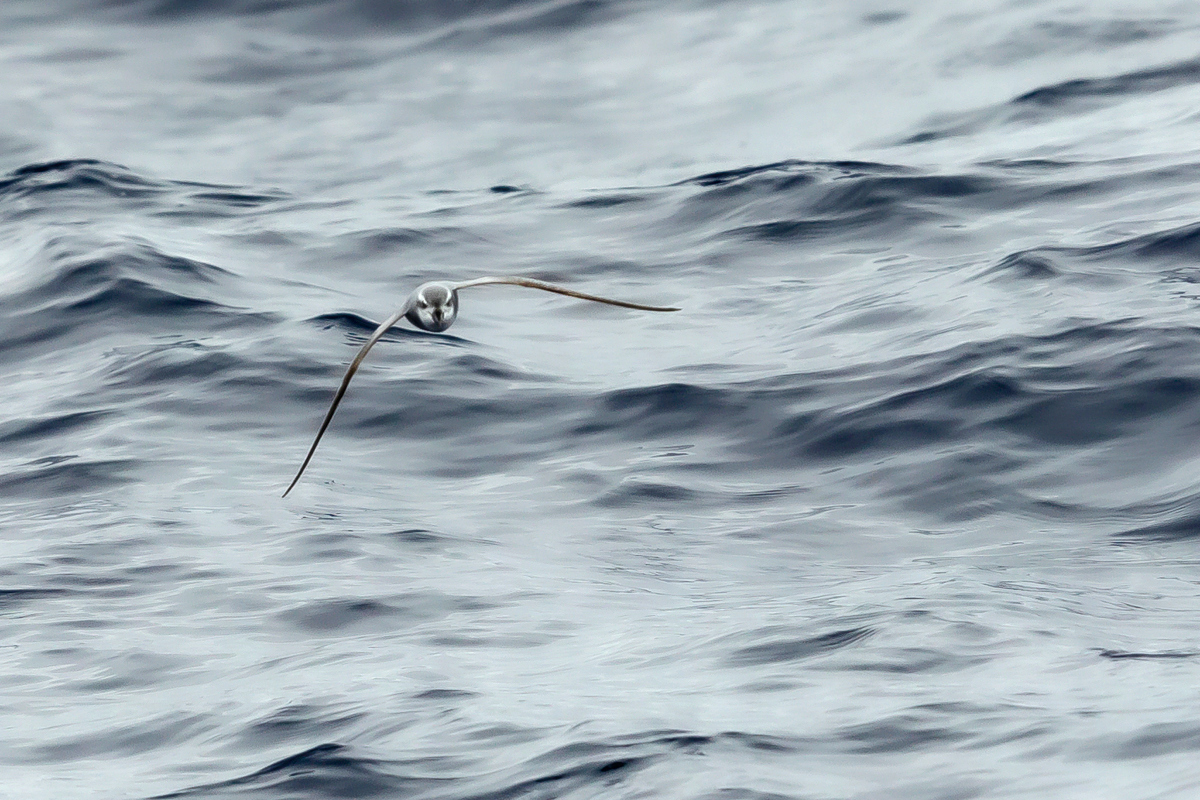 It could be seen occasionally, but too seldom to take more satisfactory pictures. As it turned out later when the photos were selected and the species identified, these not numerous photos had to be divided into two different species, because they were recognized as Antarctic prion and slender-billed prion, as it happened to take both at the same time. During the voyage it was impossible for me to find out the differences, especially because earlier I did not know this bird, or birds. This description is common for these two species, which are so alike. They are similar in terms of their size and plumage and for that specialist knowledge of ornithologist was necessary to distinguish them. Prions weigh about 200 grams, with the wingspan of about 60 centimeters.