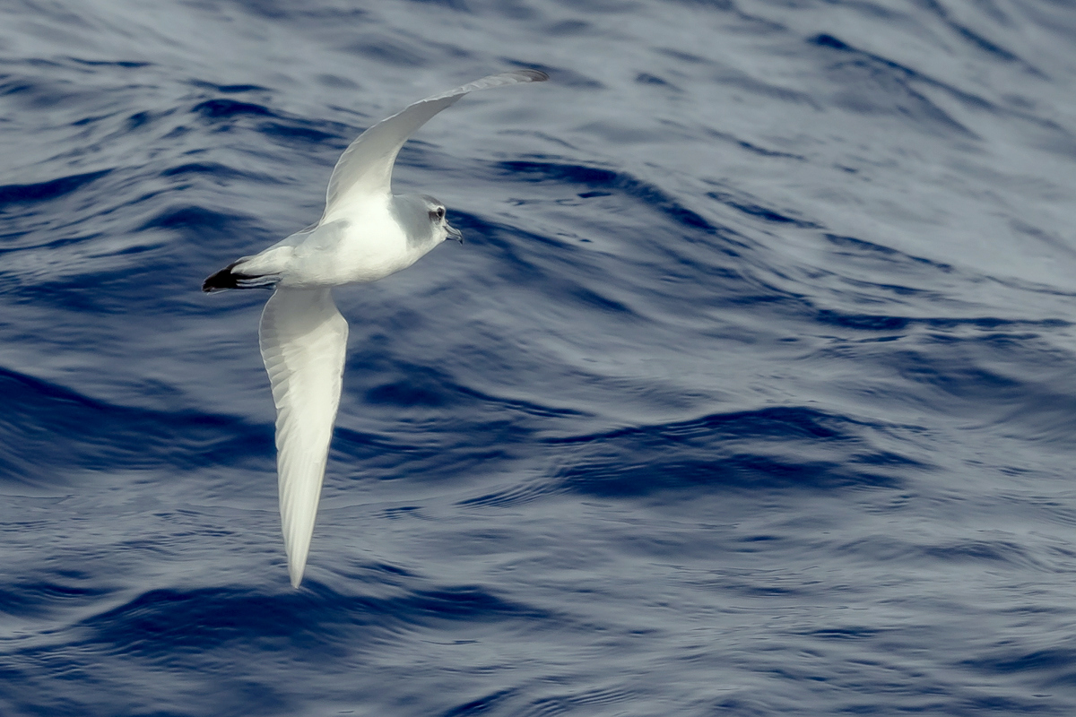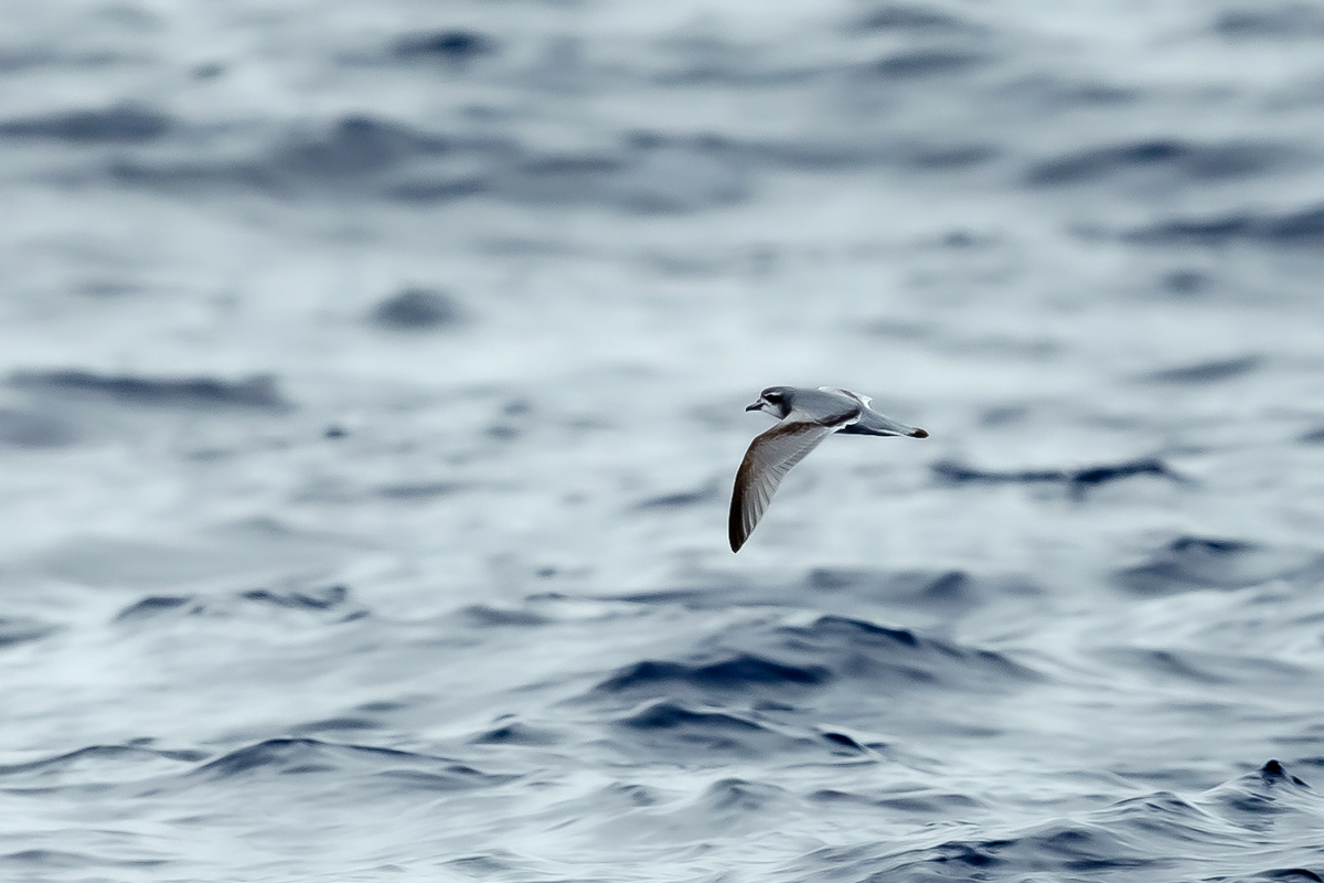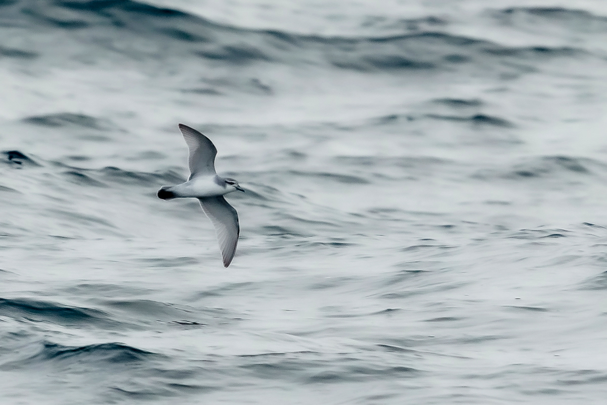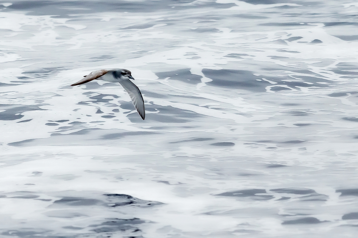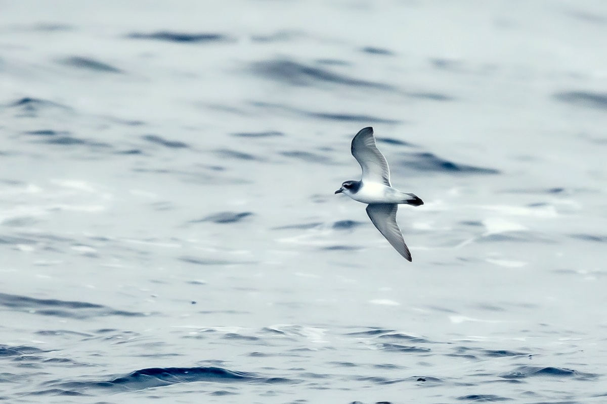 It could be seen occasionally, but too seldom to take more satisfactory pictures. As it turned out later when the photos were selected and the species identified, these not numerous photos had to be divided into two different species, because they were recognized as Antarctic prion and slender-billed prion, as it happened to take both at the same time. During the voyage it was impossible for me to find out the differences, especially because earlier I did not know this bird, or birds. This description is common for these two species, which are so alike. They are similar in terms of their size and plumage and for that specialist knowledge of ornithologist was necessary to distinguish them. Prions weigh about 200 grams, with the wingspan of about 60 centimeters.