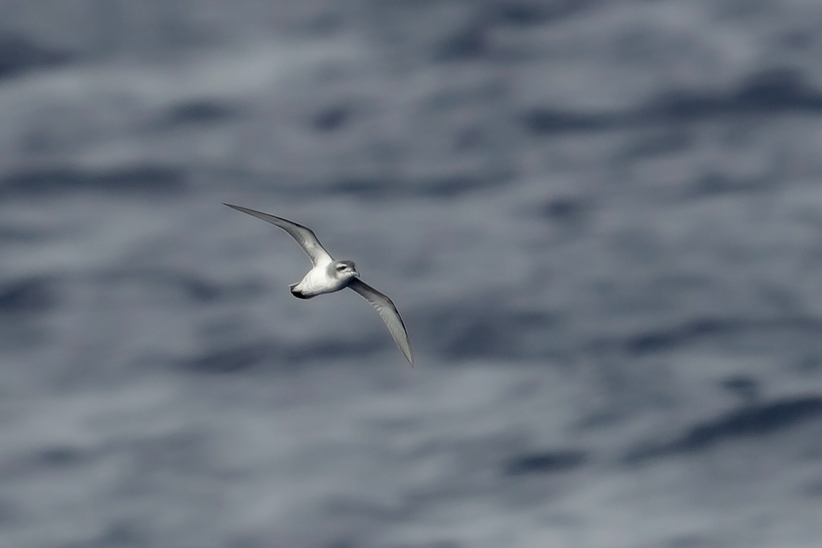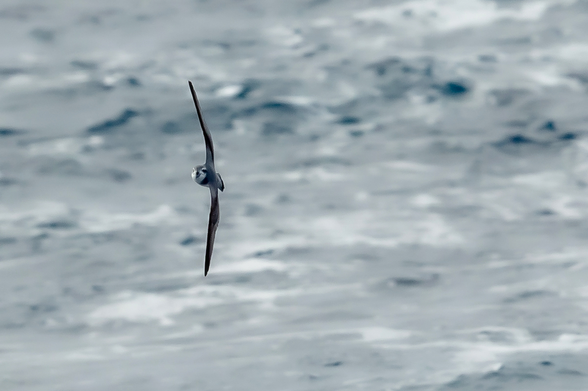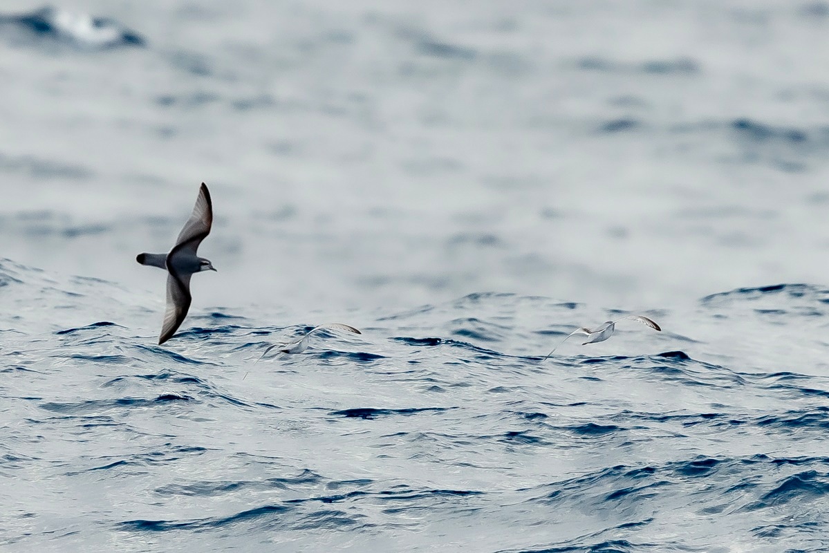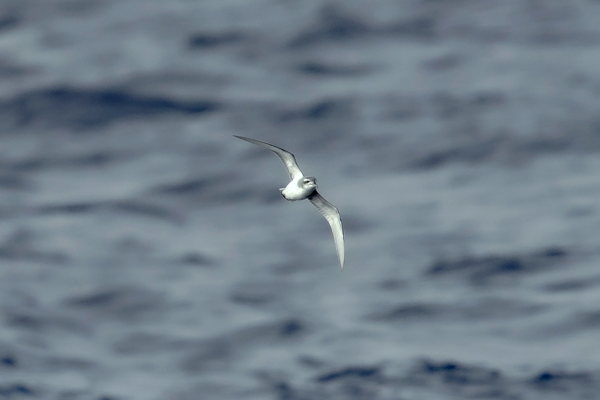 It could be seen occasionally, but too seldom to take more satisfactory pictures. As it turned out later when the photos were selected and the species identified, these not numerous photos had to be divided into two different species, because they were recognized as Antarctic prion and slender-billed prion, as it happened to take both at the same time. During the voyage it was impossible for me to find out the differences, especially because earlier I did not know this bird, or birds. This description is common for these two species, which are so alike. They are similar in terms of their size and plumage and for that specialist knowledge of ornithologist was necessary to distinguish them. Prions weigh about 200 grams, with the wingspan of about 60 centimeters.