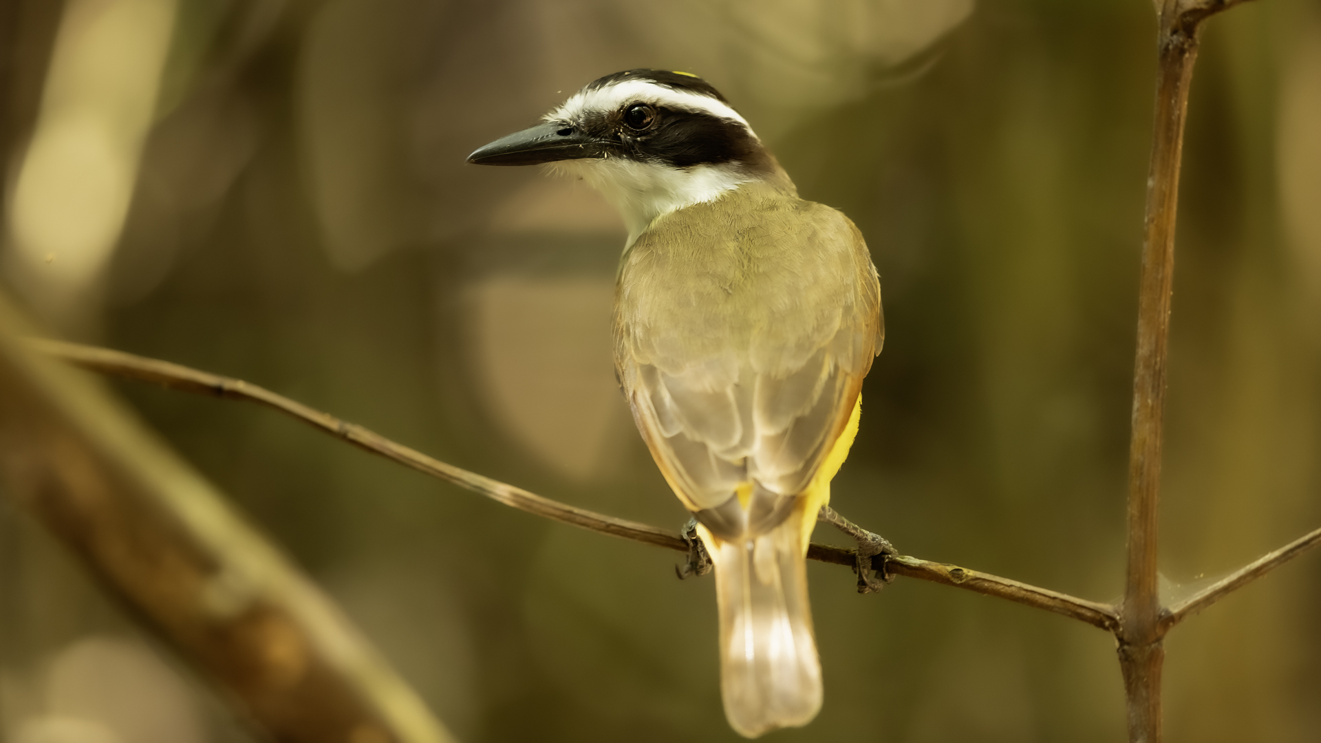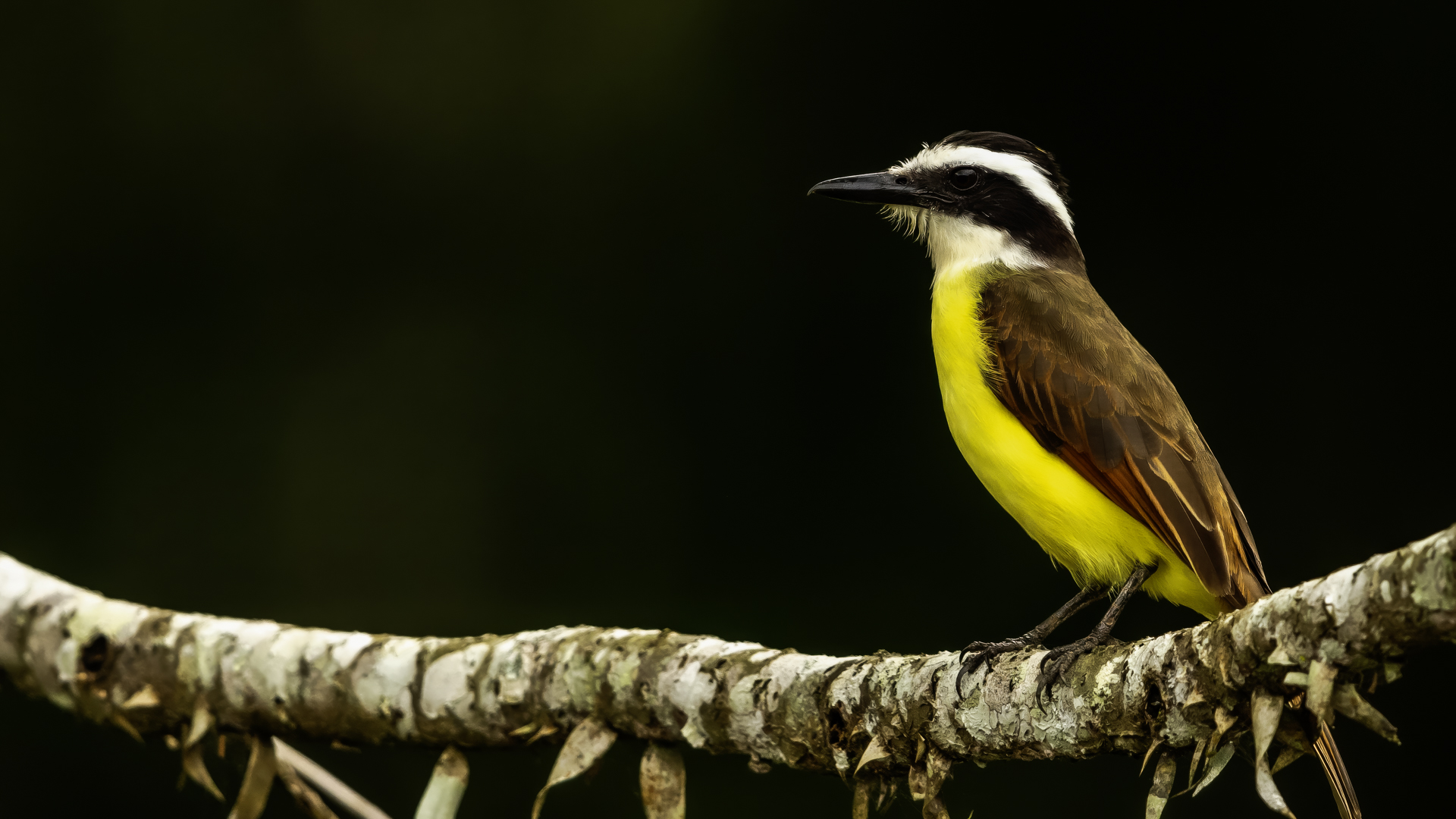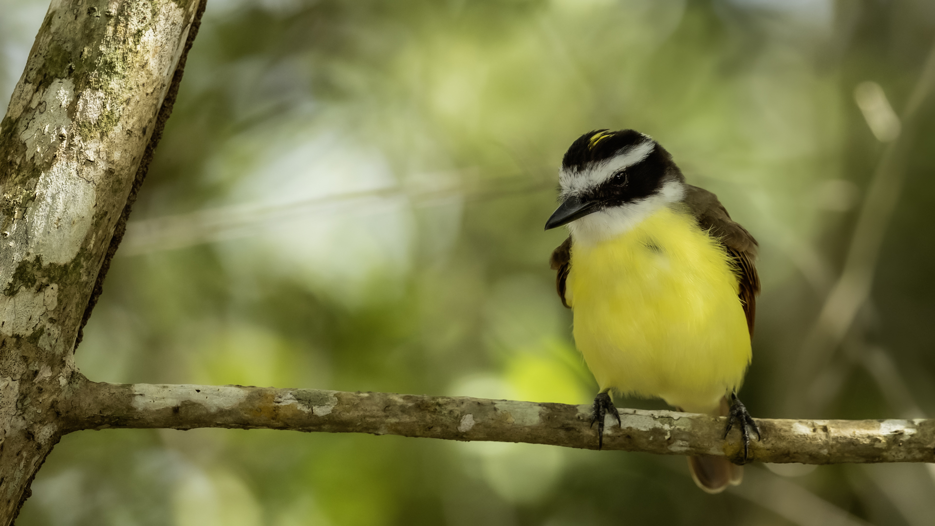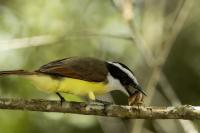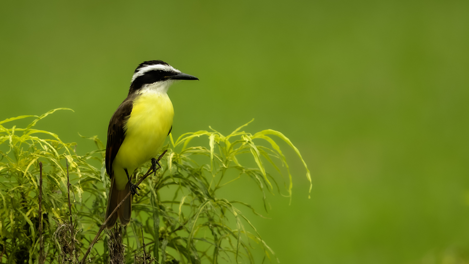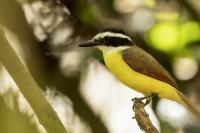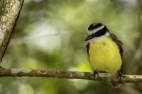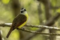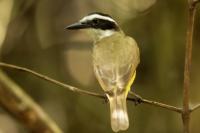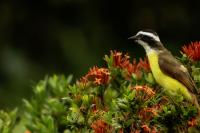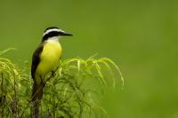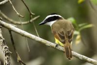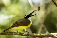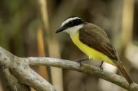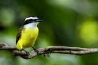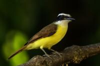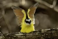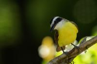 In the vicinity of Iguazu the great kiskadee occured quite commonly, but I always could see them a long way off, keeping a distance. Once, while I was walking on the lawns of the hotel at sunrise, a great kiskadee came really close. I was alone and behaving calmly so the bird was more curious than scared. It was early in the morning so while waiting for the light I hung the camera on my arm and tried to record sounds. I managed to record a few sounds of the great kikkadee’s voice, and this time the only obstacle was the sound of a white-throated sparrow, whose voice was prevailing in this part of the park this morning. The great kiskadee weight is about 60 grams. It occurs in Mexico and South America.