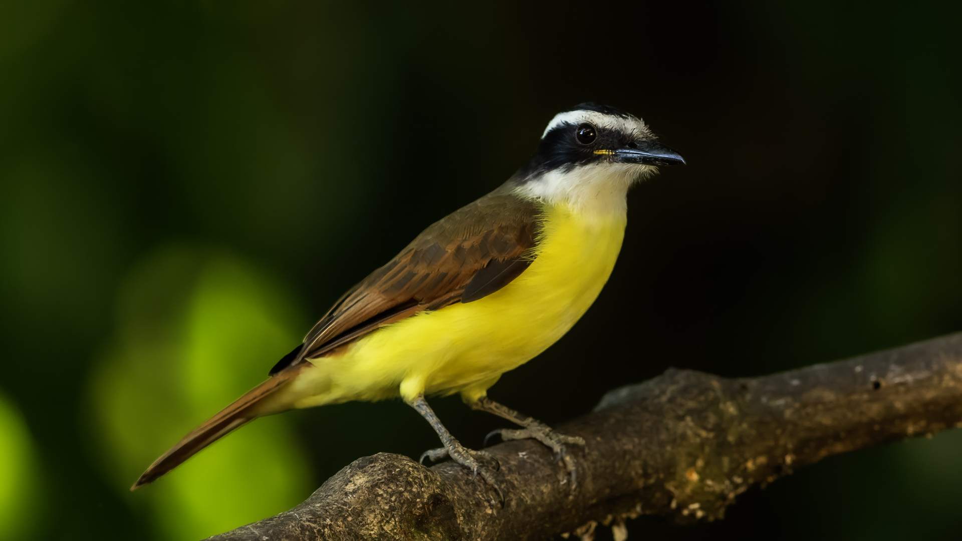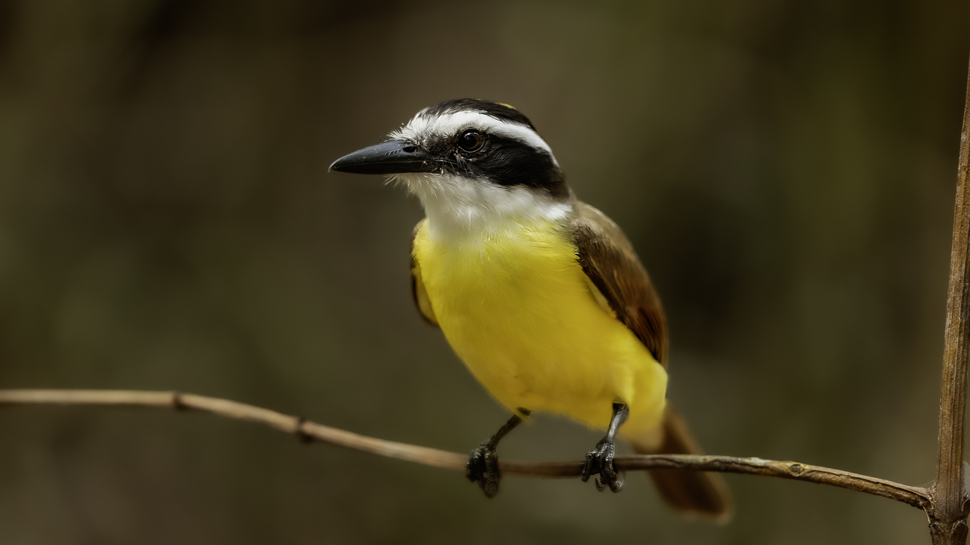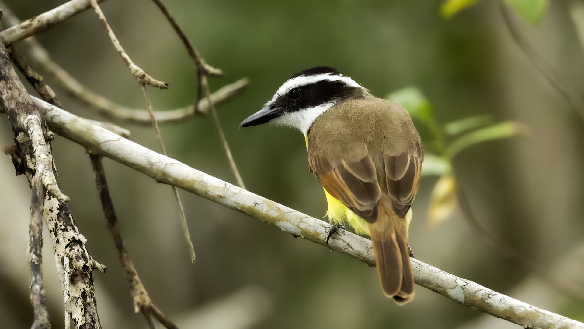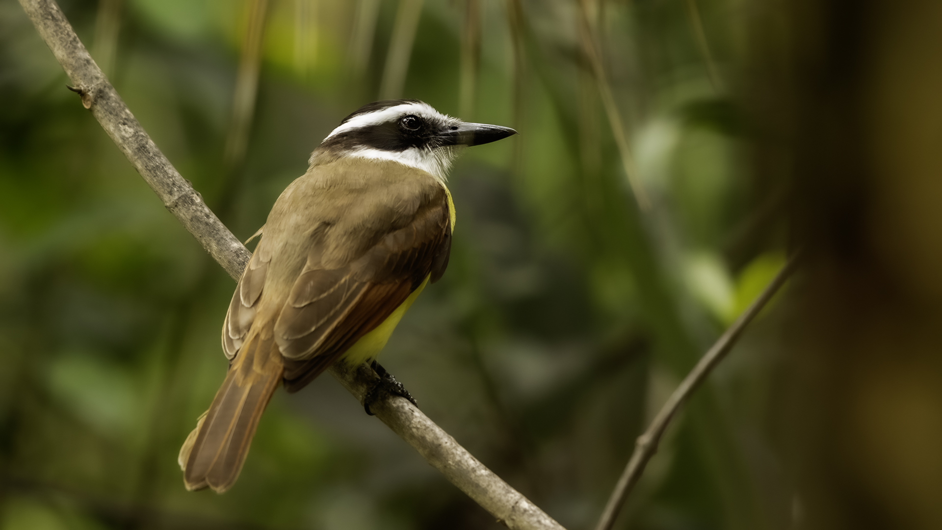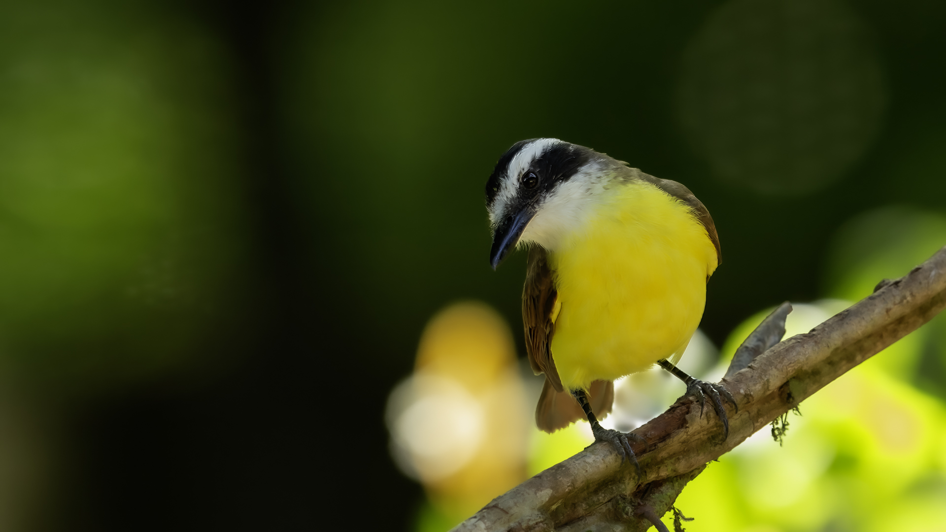 In the vicinity of Iguazu the great kiskadee occured quite commonly, but I always could see them a long way off, keeping a distance. Once, while I was walking on the lawns of the hotel at sunrise, a great kiskadee came really close. I was alone and behaving calmly so the bird was more curious than scared. It was early in the morning so while waiting for the light I hung the camera on my arm and tried to record sounds. I managed to record a few sounds of the great kikkadee’s voice, and this time the only obstacle was the sound of a white-throated sparrow, whose voice was prevailing in this part of the park this morning. The great kiskadee weight is about 60 grams. It occurs in Mexico and South America.